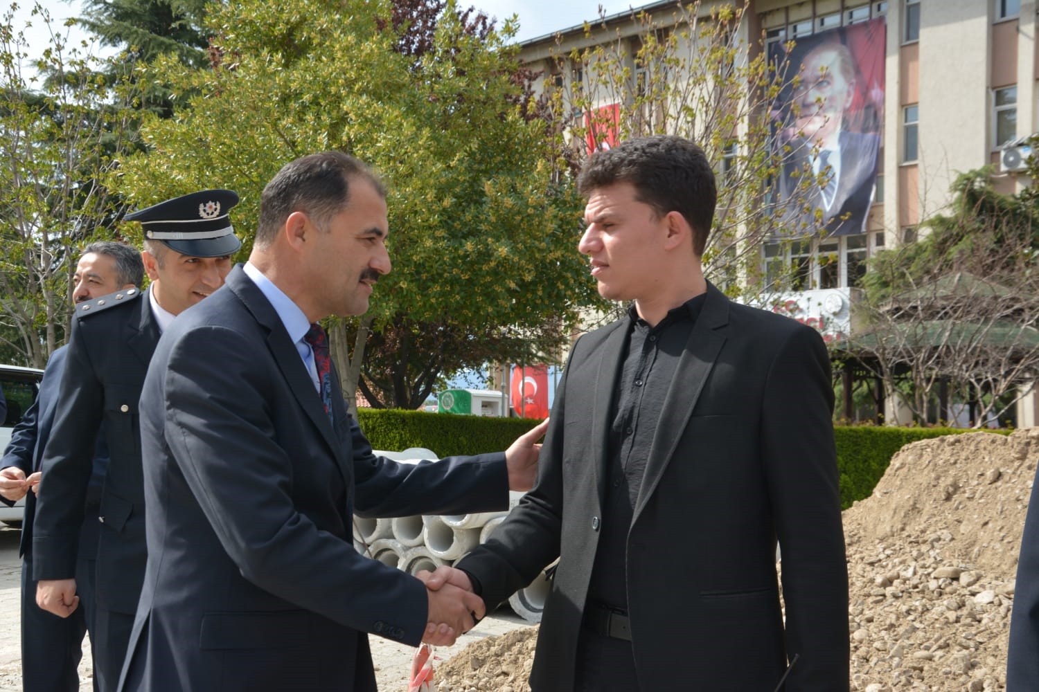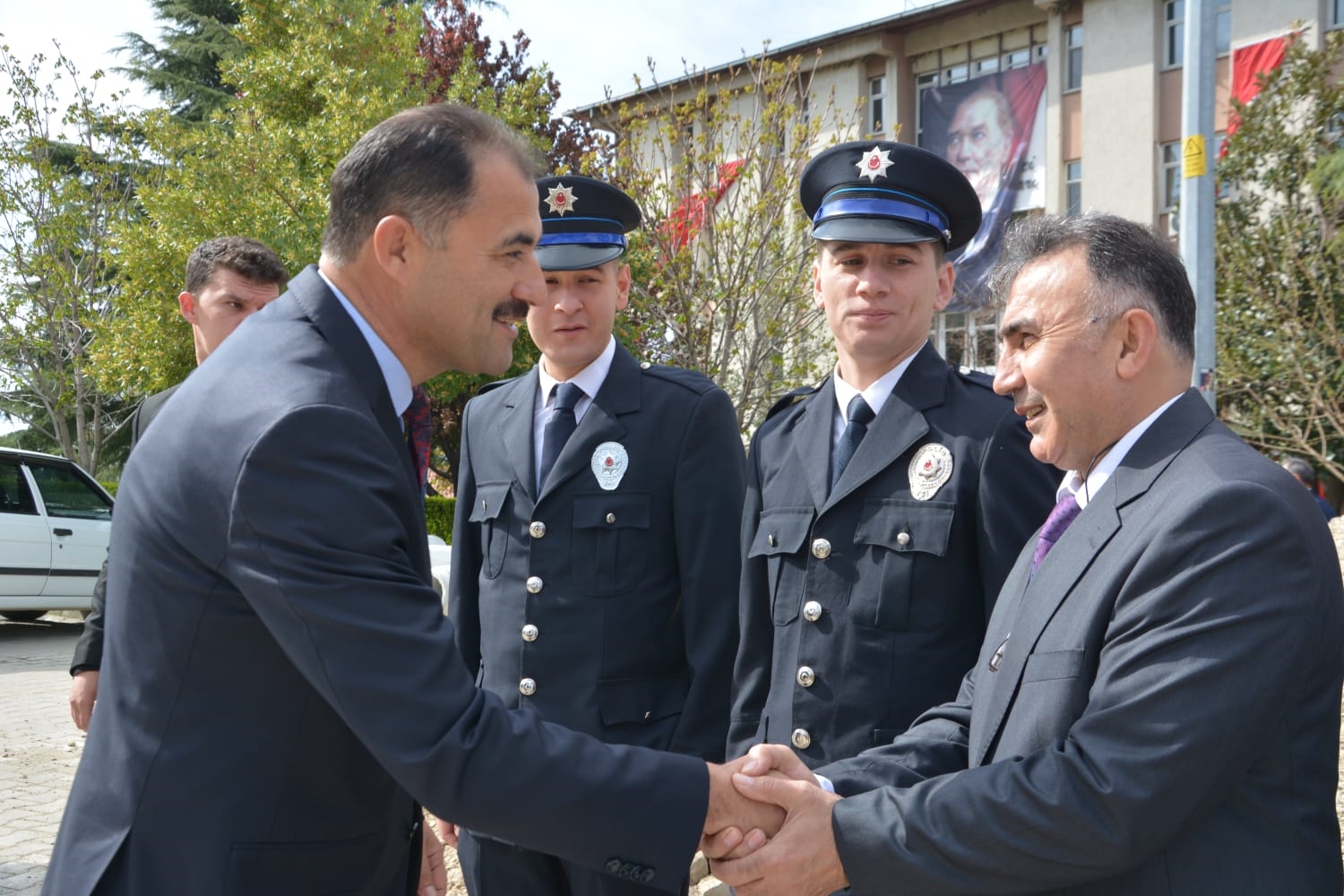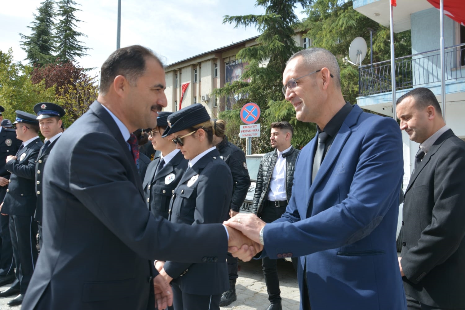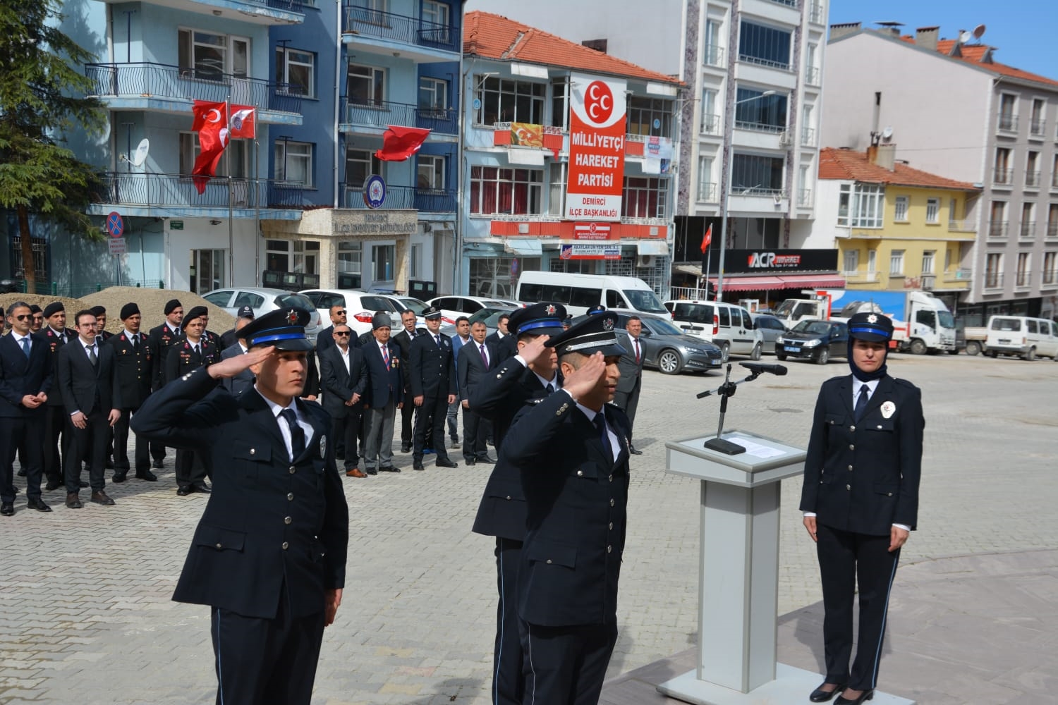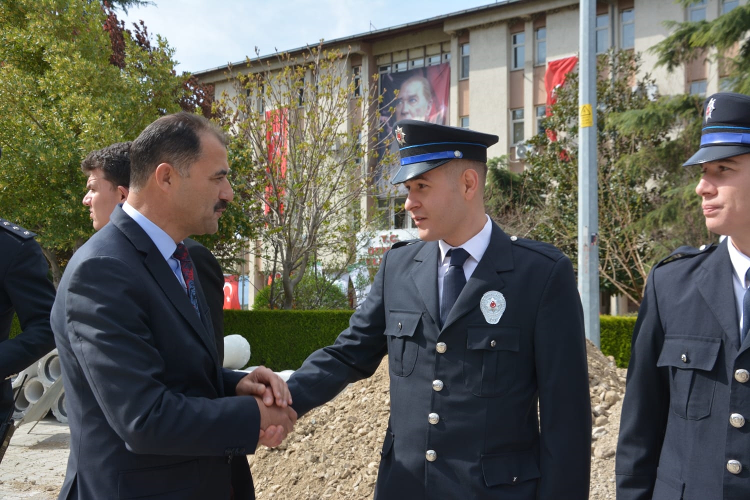 Törenin ardından Demirci Kaymakamı Adem Kaya, Belediye Başkanı Erkan Kara ve Cumhuriyet Savcısı Emre Aytaç ile birlikte İlçe Emniyet Müdürü Barış Kayar ve Emniyet Müdürlüğü personelini ziyaret ederek, günlerini kutladılar.