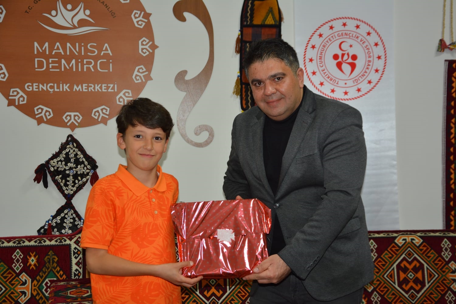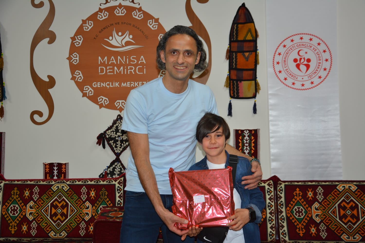 22 Nisan 2024 / Pazartesi günü Mehmet Akif Ersoy Gençlik Merkezi konferans salonu has odada yapılan ödül törenine Demirci Kaymakamı Adem Kaya, Belediye Başkanı Erkan Kara, Gençlik ve Spor İlçe Müdürü Bilal Yılmaz, Milli Eğitim Müdürü Bilal Çetinkaya ve Halk Eğitimi Merkezi Mehmet Taştekin katıldı.