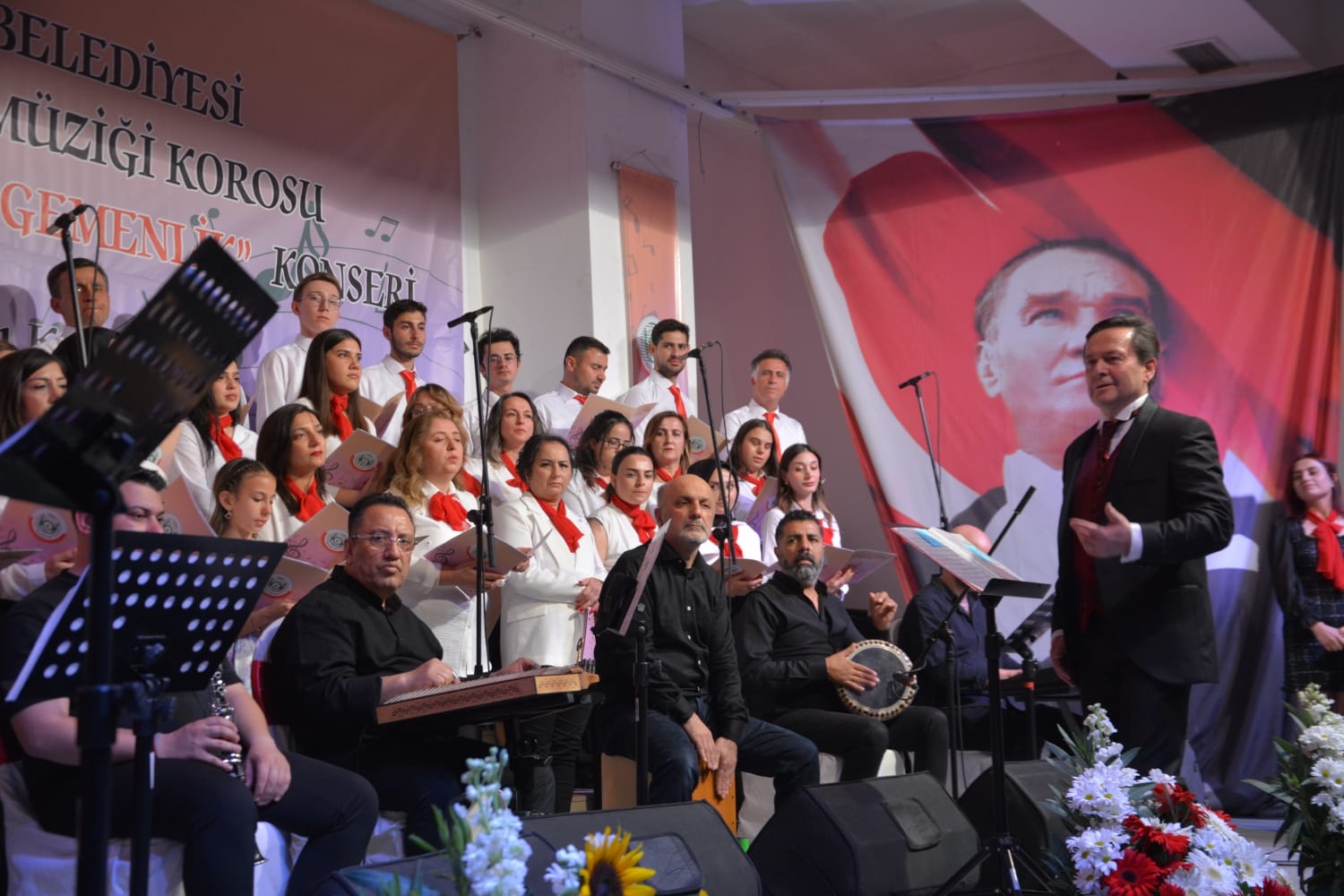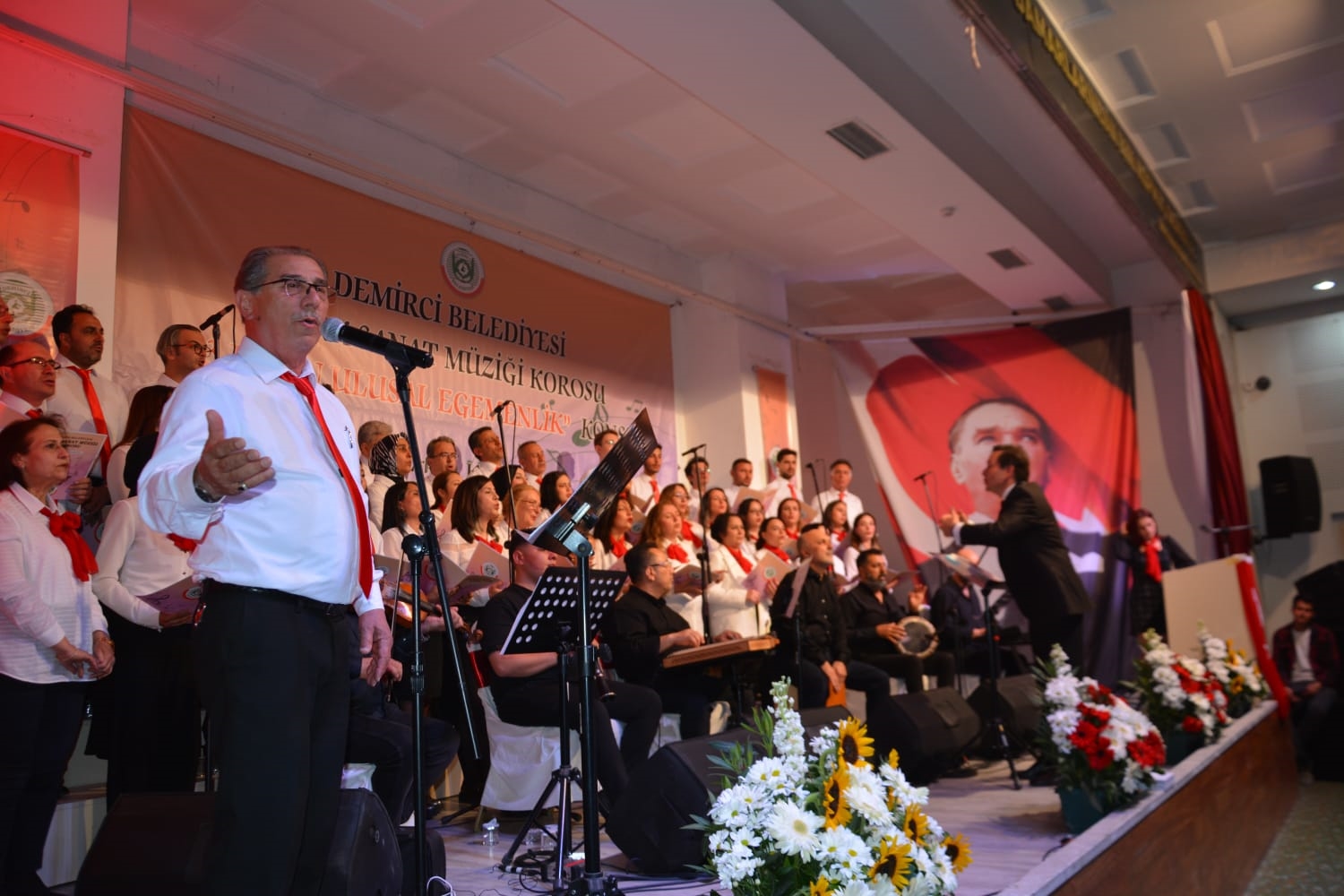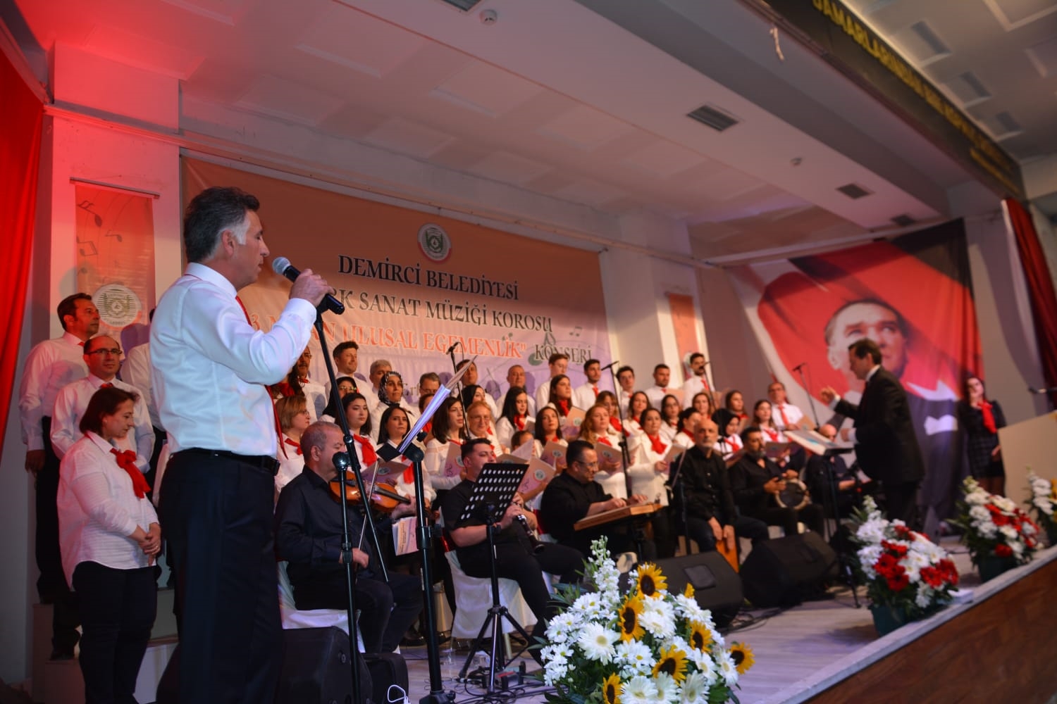 Konserin son bölümünde Demirci Kaymakamı Adem Kaya, Belediye Başkanı Erkan Kara, eşi Nermin Kara, kurum müdürleri koro ile birlikte Atatürk'ün sevdiği şarkılardan olan Vardar Ovasını seslendirdiler.