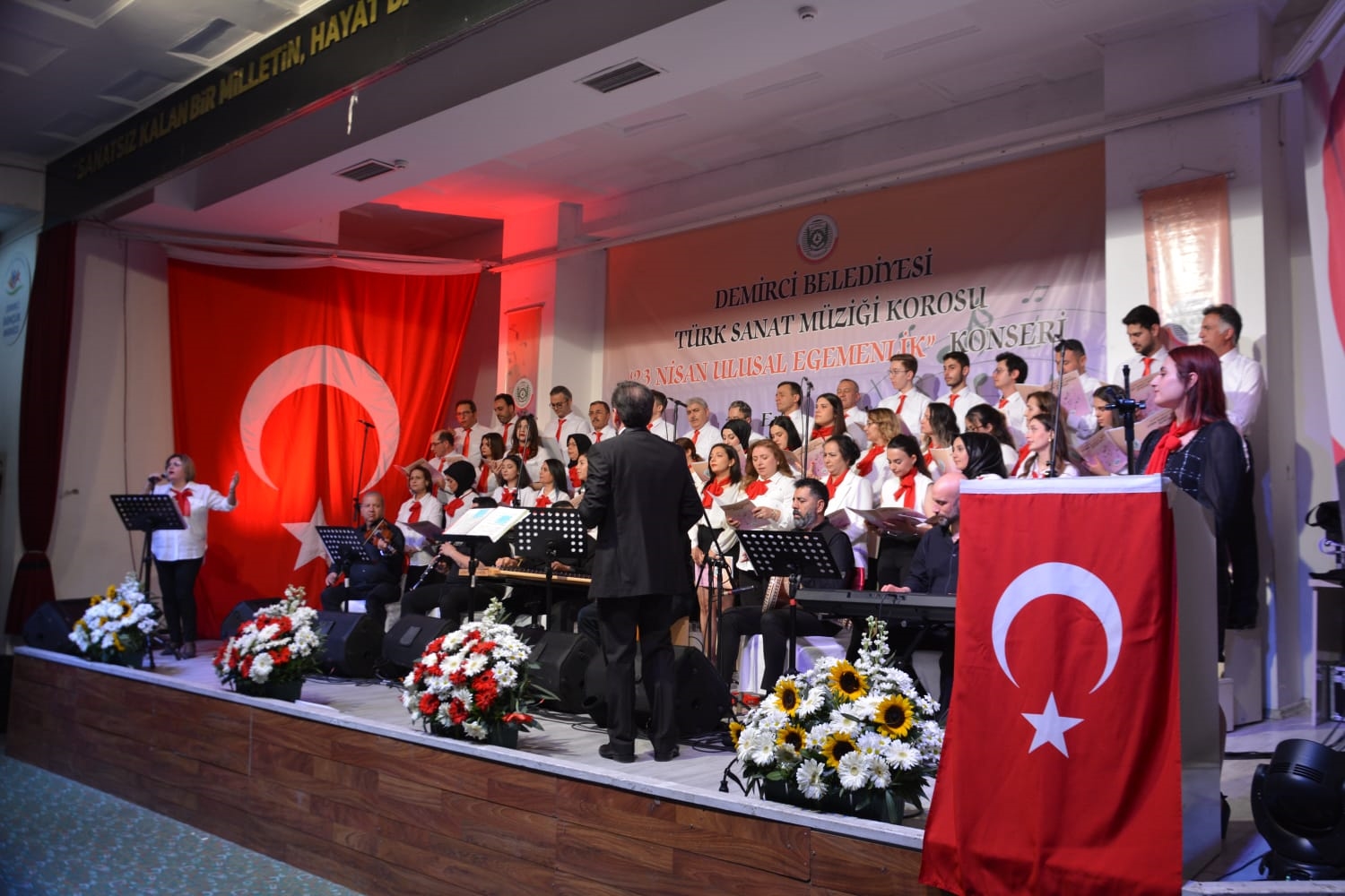 23 Nisan 2024 / Salı akşamı Demirci Belediyesi sosyal ve kültürel faaliyetleri kapsamında Mehmet Akif Ersoy Gençlik Merkezi Konferans salonunda düzenlenen 23 Nisan Ulusal Egemenlik konserine Demirci Kaymakamı Adem Kaya, Belediye Başkanı Erkan Kara, eşi Nermin Kara, Cumhuriyet Başsavcısı Mehmet Ali Çilkız, kurum müdürleri, öğretmenler, öğrenciler ve ilçe halkı katıldı.