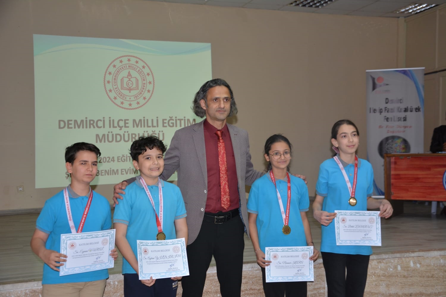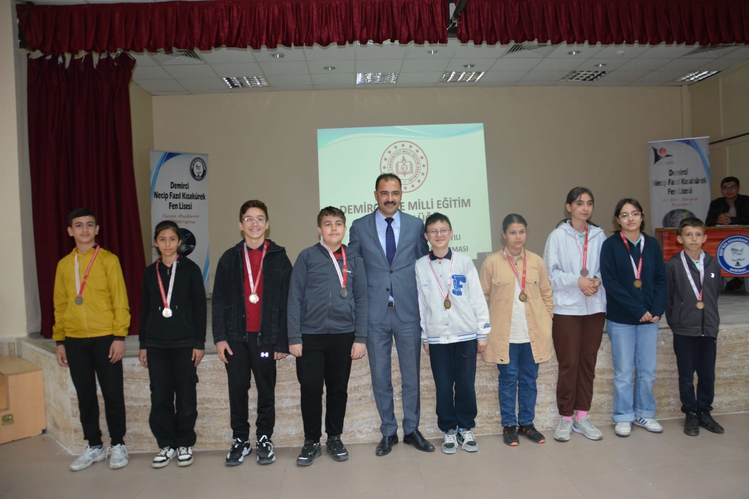 Yarışma sonunda yarışmacılara madalyalarını Demirci Kaymakamı Adem Kaya ve Belediye Başkanı Erkan Kara katılım belgelerini ise İlçe Milli Eğitim Müdürü Bilal Çetinkaya takdim etti.