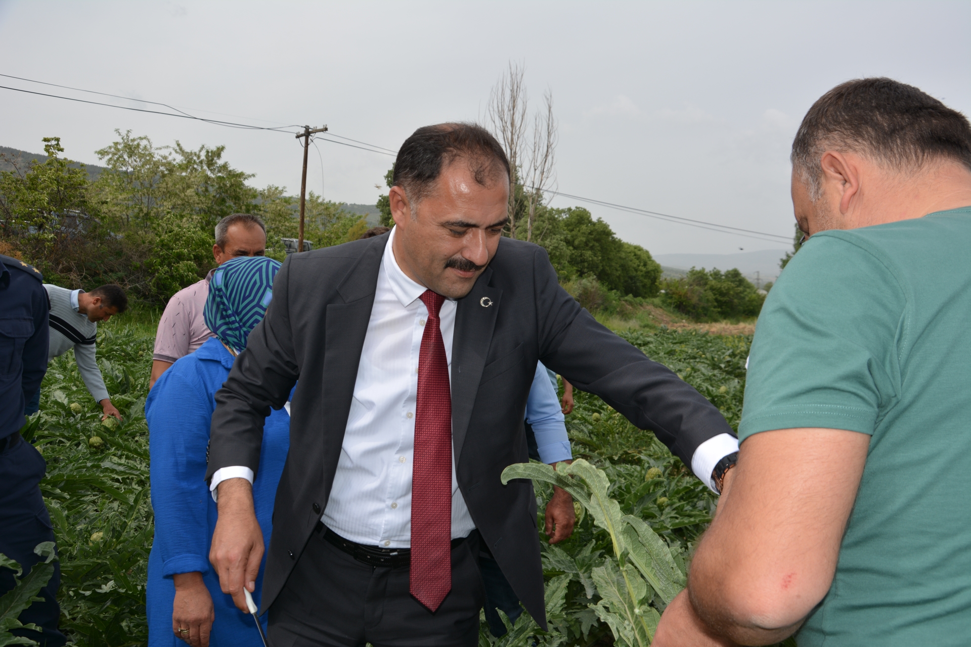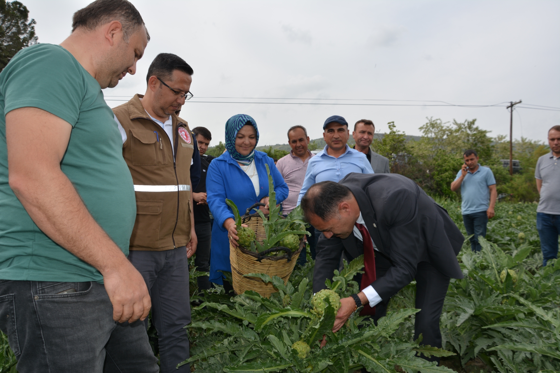 Demirci Kaymakamı Adem Kaya, Belediye Başkanı Erkan Kara, İlçe Tarım ve Orman Müdürü Faruk Şenyurt’ta çiftçi Mustafa Kula’nın arazisine giderek enginar hasadını birlikte gerçekleştirdiler.