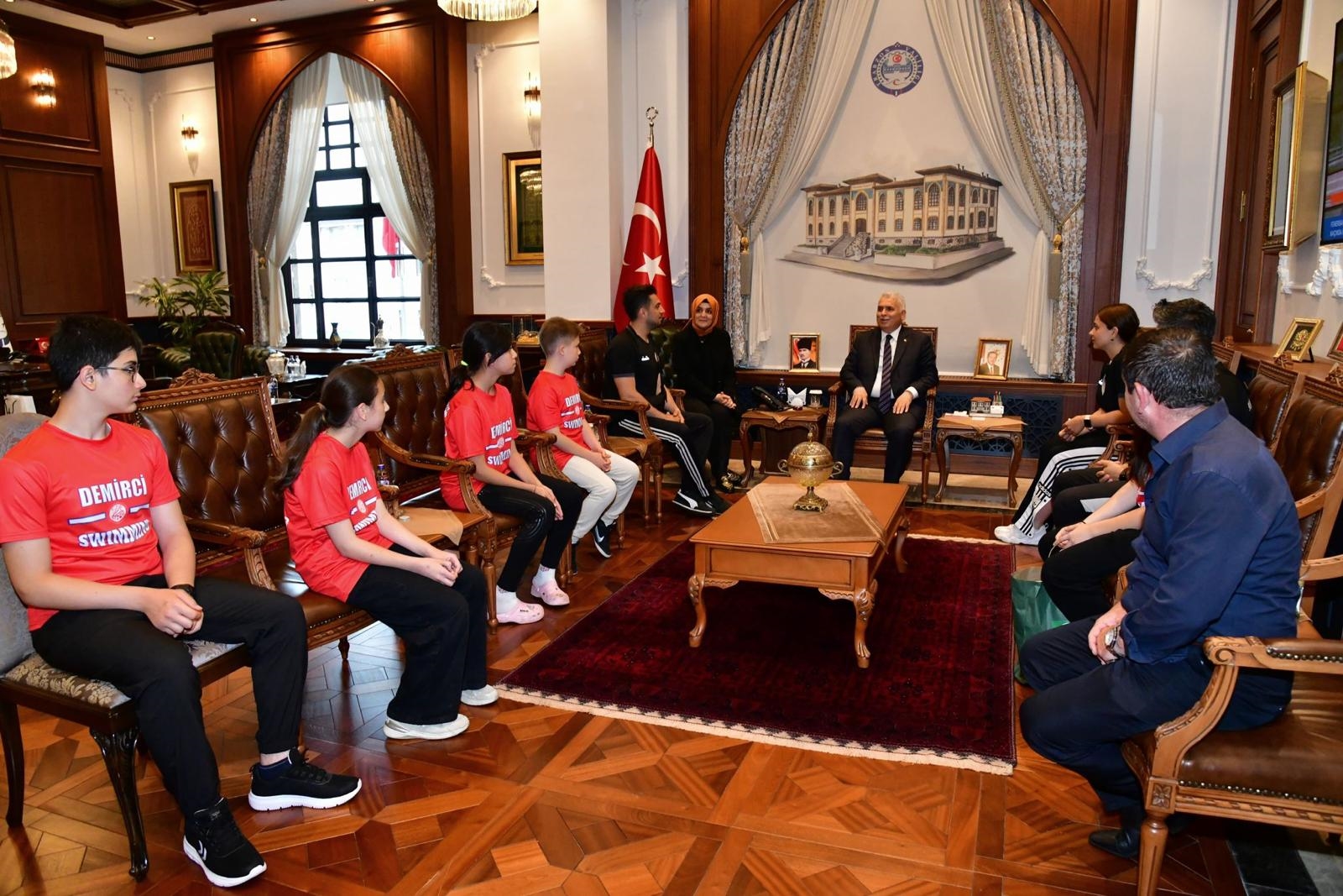 Belediye Başkanı Erkan Kara'da, Trabzon Valisi Aziz Yıldırım'a Demircili sporcuları makamında misafir ettiği için teşekkür ederek, sporcularımıza başarılar diledi.