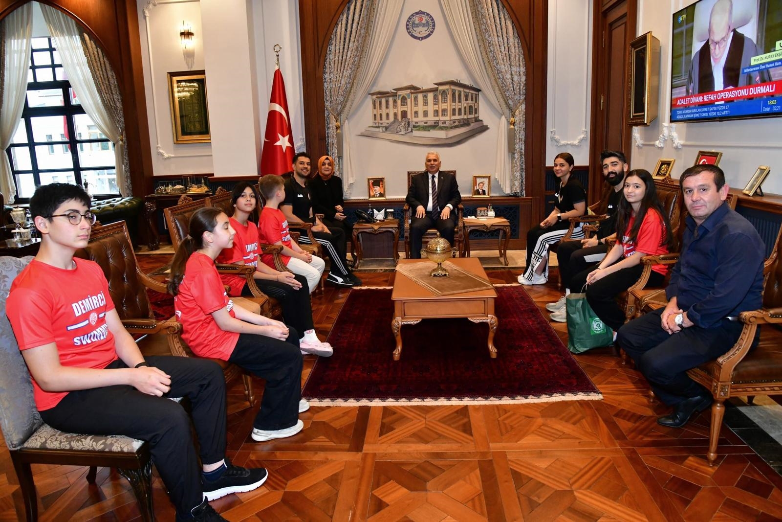 25 ve 26 Mayıs 2024 tarihlerinde Trabzon'da Okul Sporları kapsamında yapılacak olan paletli yüzme yarışları Türkiye şampiyonasına katılacak olan sporcularımızı Trabzon Valisi Aziz Yıldırım makamında kabul etti.