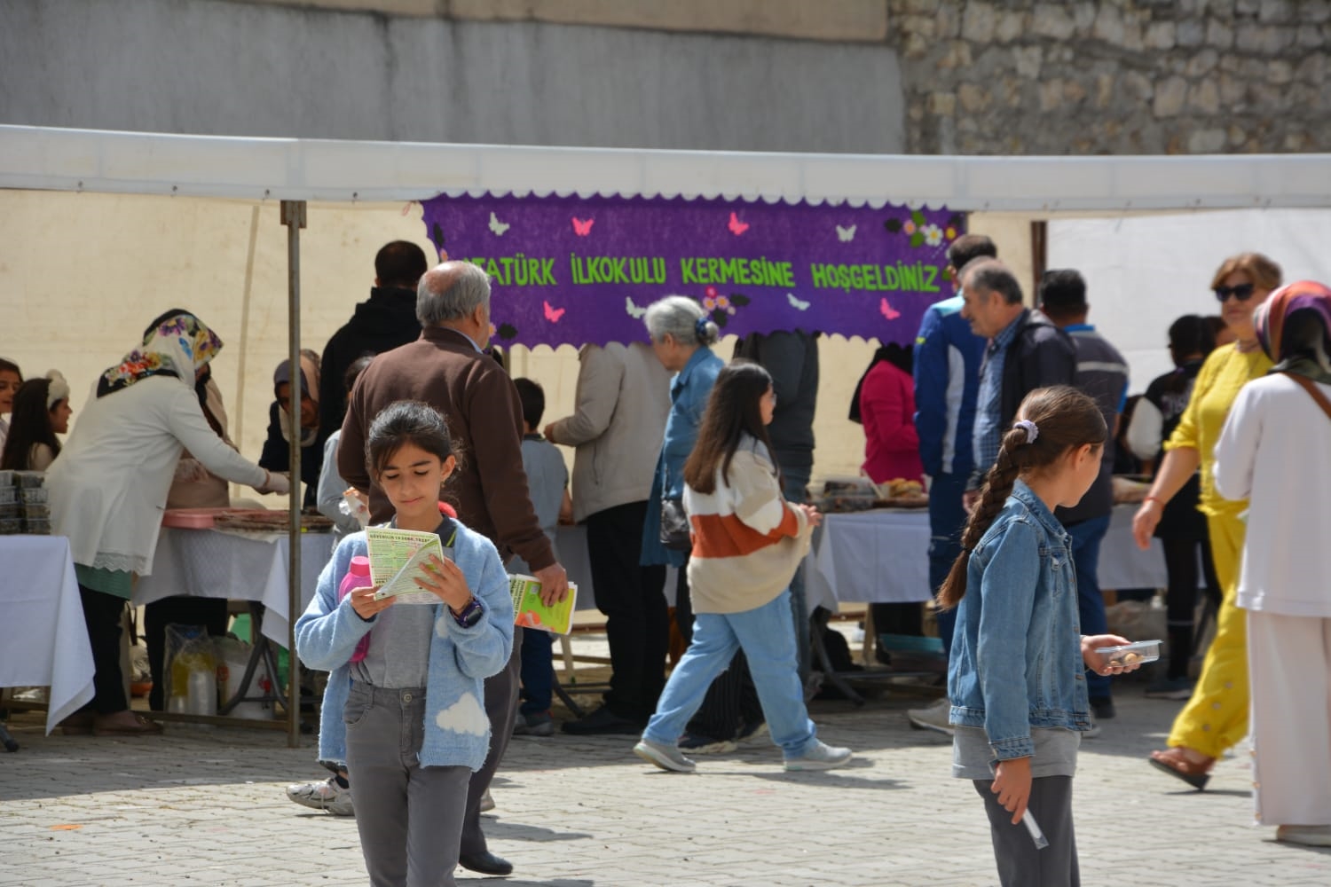 Okul bahçesinde gün boyu devam eden kermesi ziyaret eden Kaymakam Adem Kaya, Belediye Başkanı Erkan Kara ve İlçe Milli Eğitim Müdürü Bilal Çetinkaya'da öğrencilerin ve velilerin çalışmasına destek verdiler.