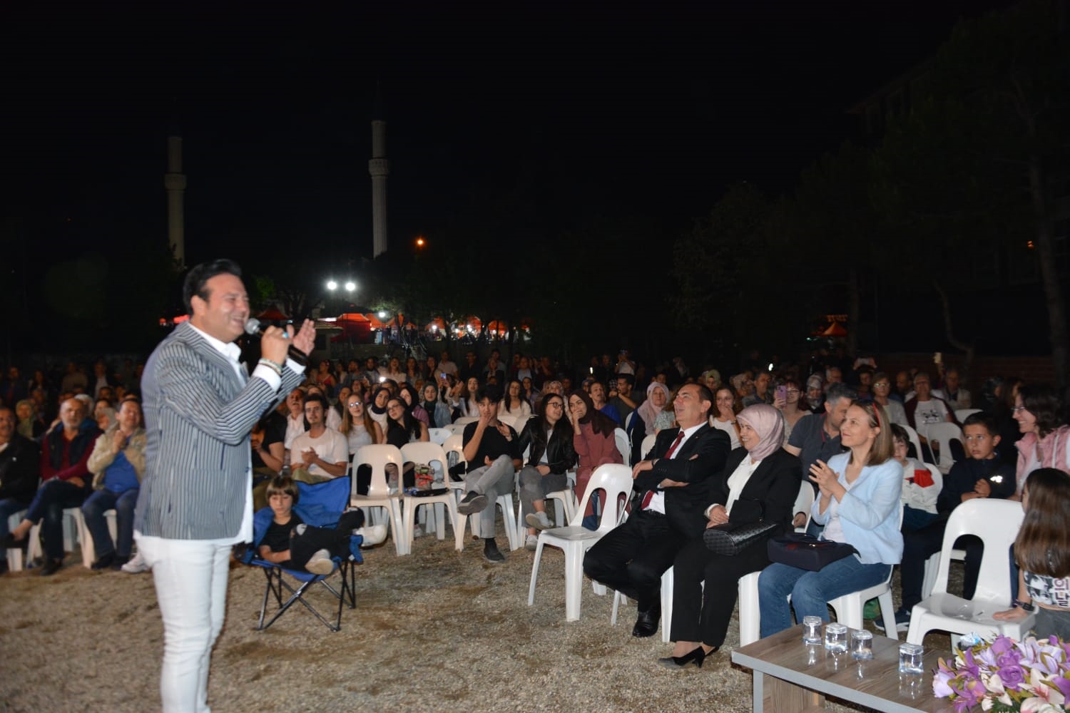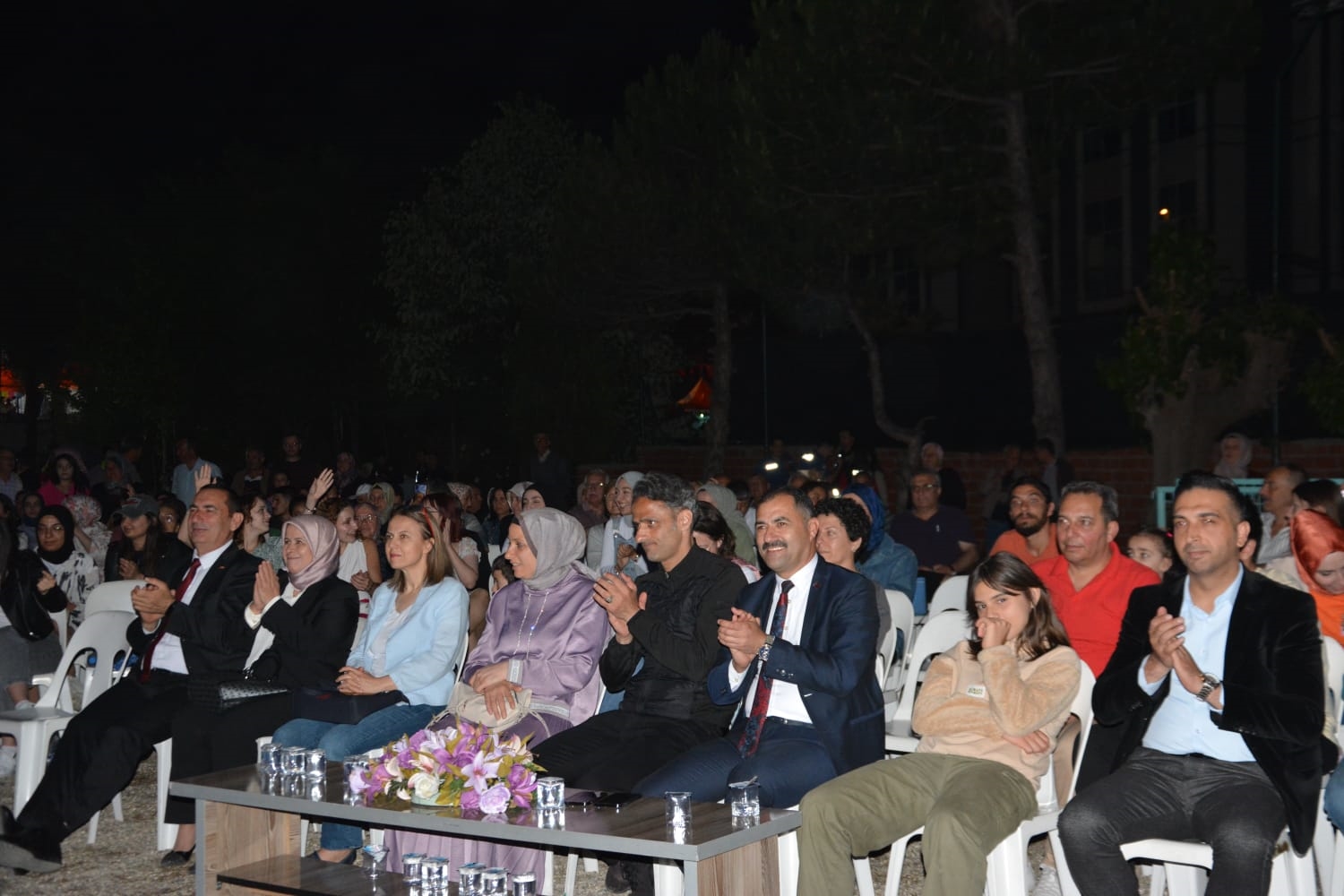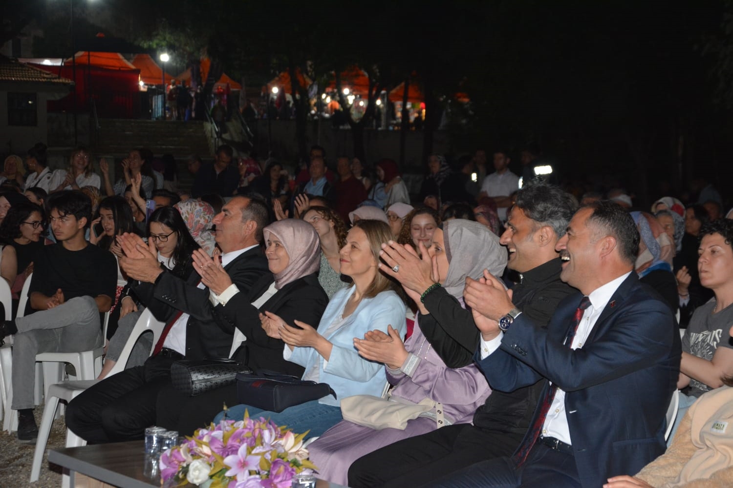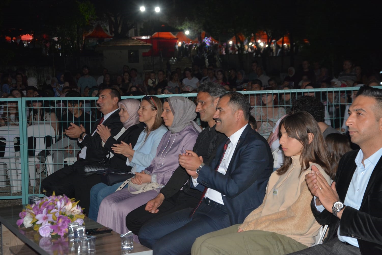 1 Haziran Cumartesi akşamı üniversite caddesi Kaymakamlık yanındaki alanda düzenlenen halk konserine Kaymakam Adem Kaya, eşi Halide Kaya, Belediye Başkanı Erkan Kara, Eğitim Fakültesi Dekanı Prof. Dr. Fatma Şaşmaz Ören, ilçe protokolü, vatandaşlar ve öğrenciler katıldı.
