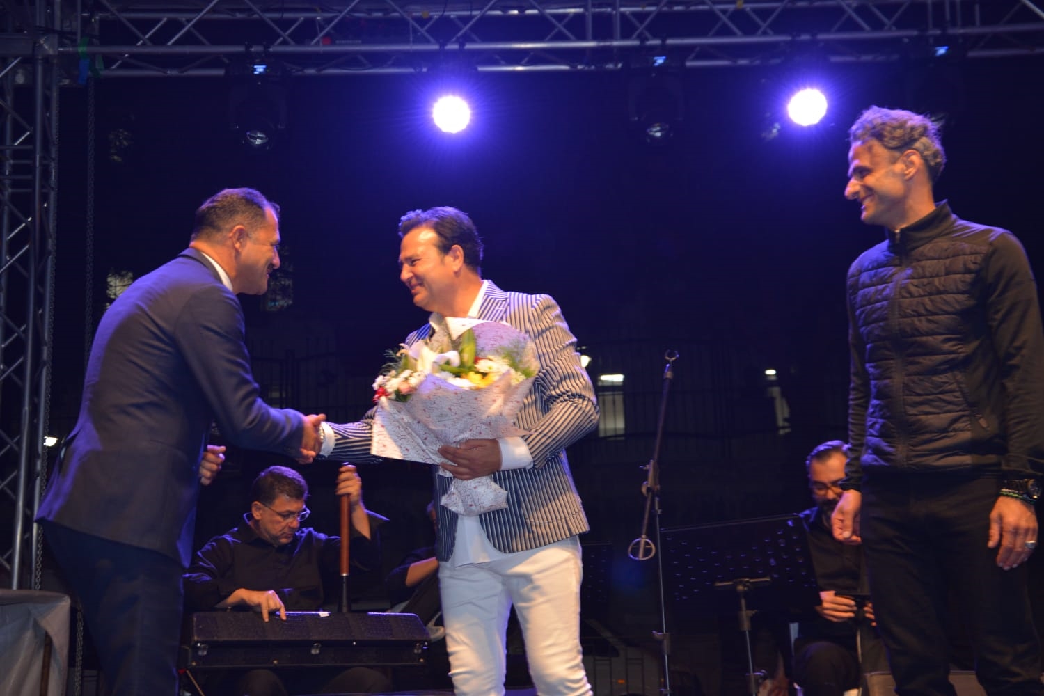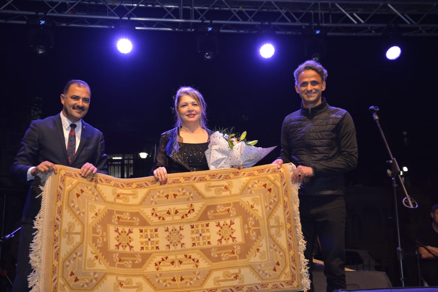 Konserin sonunda Kaymakam Adem Kaya ve Belediye Başkanı Erkan Kara, Sanatçılar Tuğba Ger ve Ali Çakar çiçek ve halı takdim ettiler.