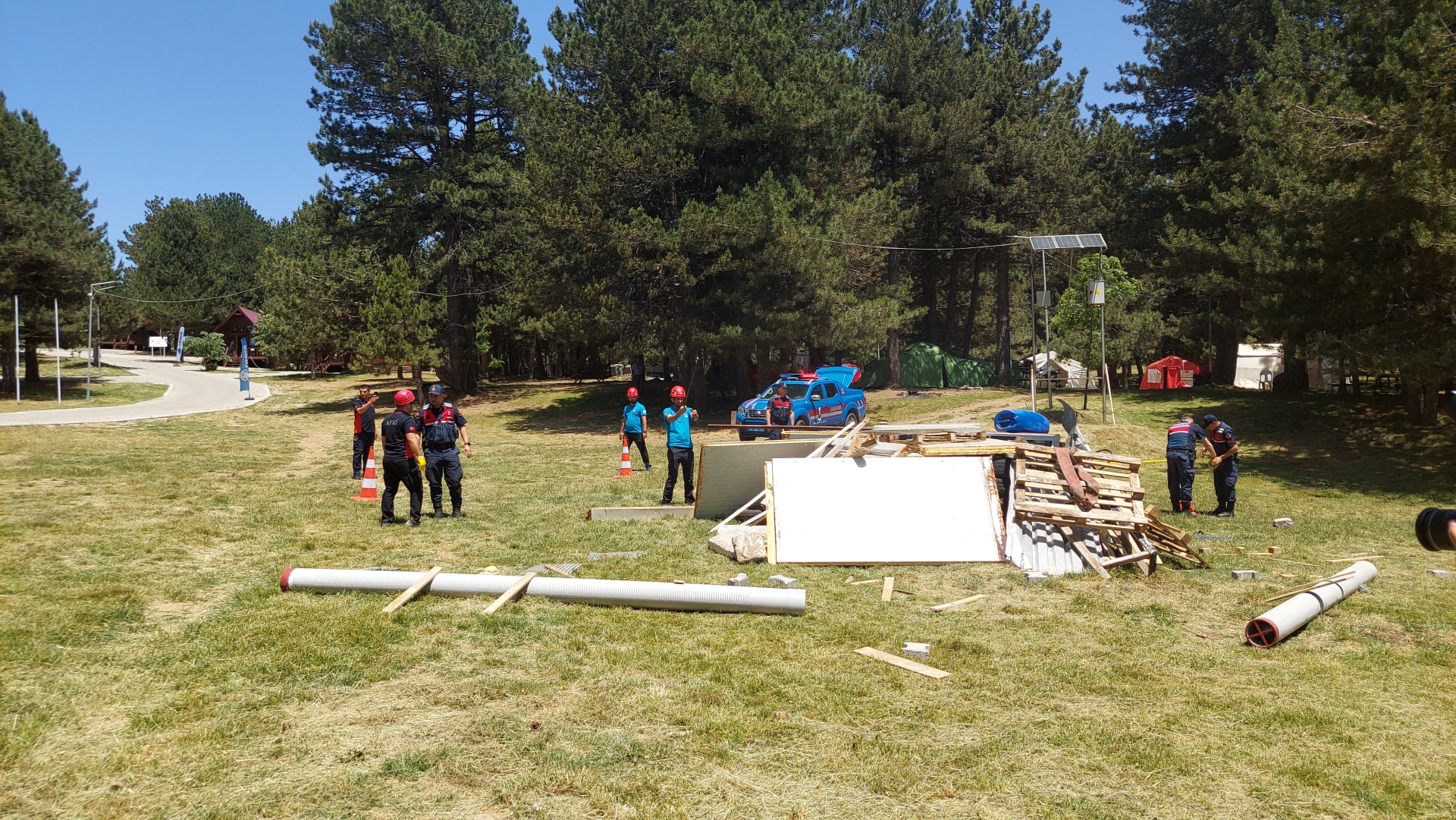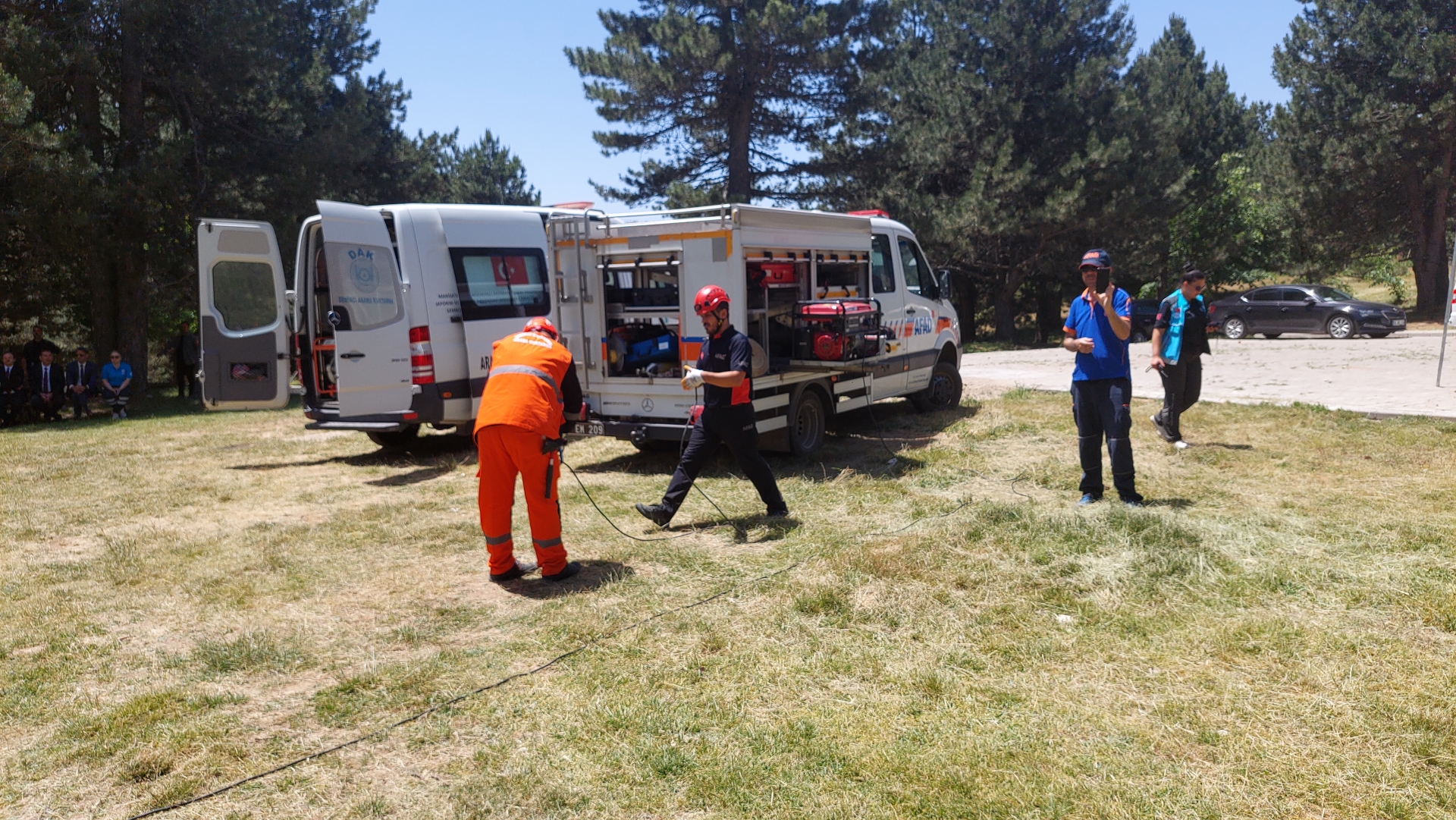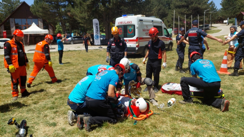 Sarıçayır Doğa Aktiviteleri ve Milli Bilinç kamp merkezi alanında gerçekleşen tatbikat çalışmasına UMKE, AFAD, Demirci Belediyesi Arama Kurtarma, ve 112 Acil servis ekipleri katıldı.