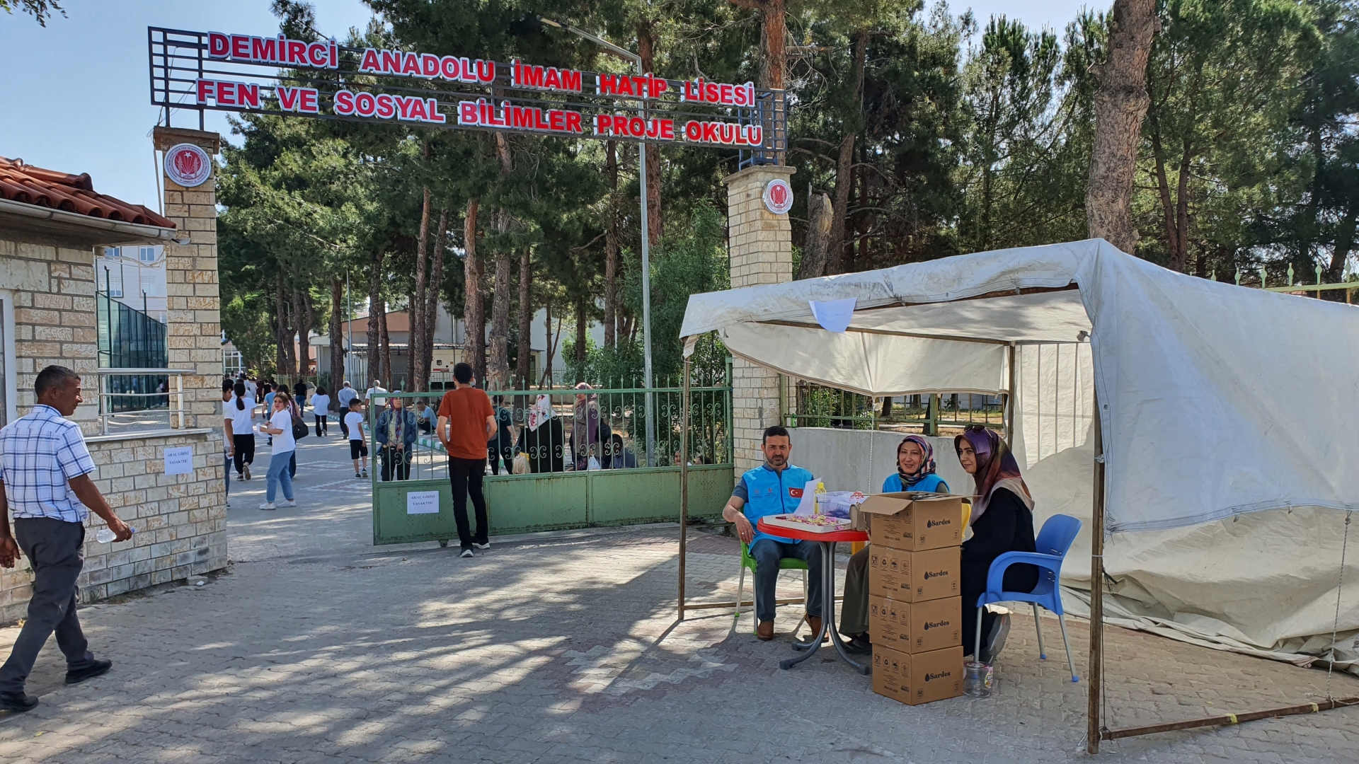 İlçe Müftülüğü ve Diyanet Vakfı Demirci Şubesince öğrencilerin sınava gireceği okulların önlerine standlar kurularak kolonya, şeker ve su ikramı yapılırken, öğrencilerin eşyalarını da ücretsiz bir şekilde emanete aldılar.