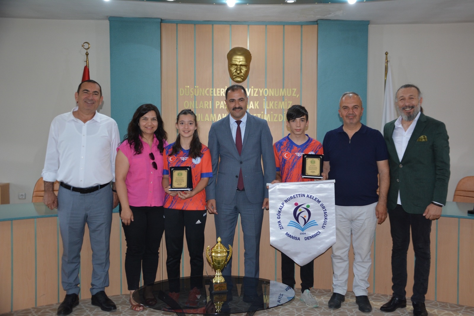 Belediye Başkanı Erkan Kara, Belediye Başkan Yardımcısı İsmail Hakkı Gül ve İlçe Milli Eğitim Müdürü Bilal Çetinkaya tarafından Demirci'yi Türkiye geneli Oryantiring yarışmalarında en iyi şekilde temsil eden sporcuları tek tek tebrik ederek, teşekkür plaketlerini takdim ettiler.