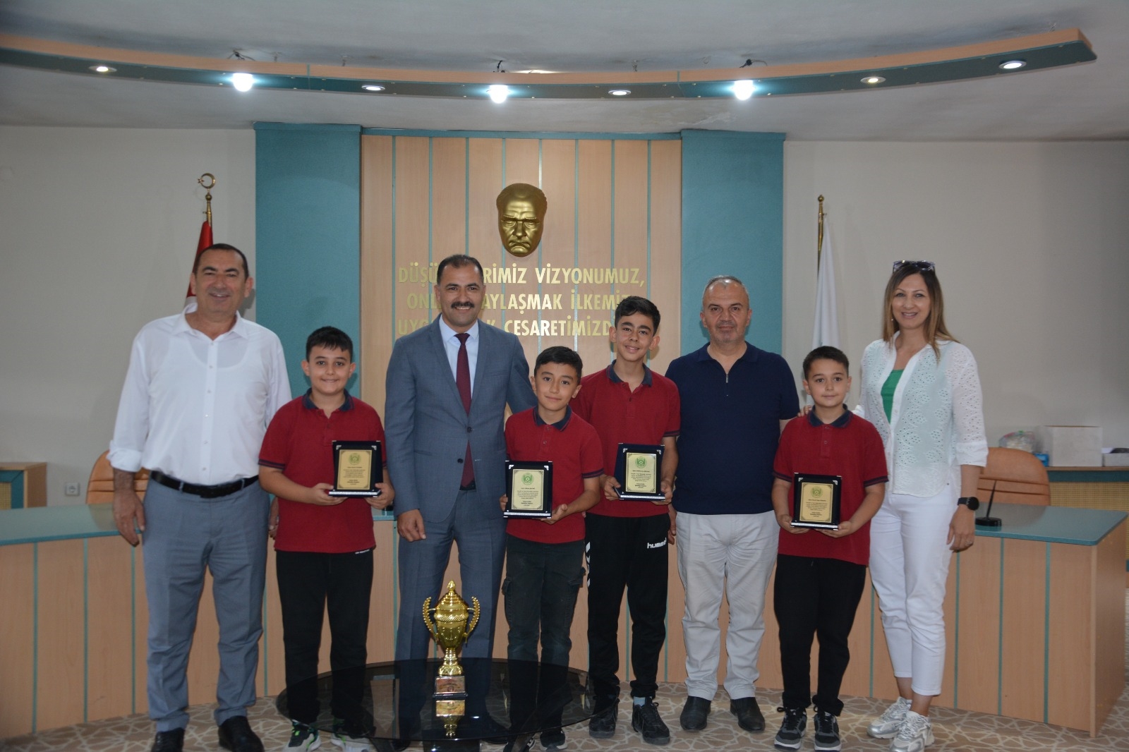 Belediye meclis salonunda düzenlenen ödül törenine Belediye Başkanı Erkan Kara, Belediye Başkan Yardımcısı İsmail Hakkı Gül, İlçe Milli Eğitim Müdürü Bilal Çetinkaya, Okul Müdürleri, sporcular ve aileleri de katıldı.