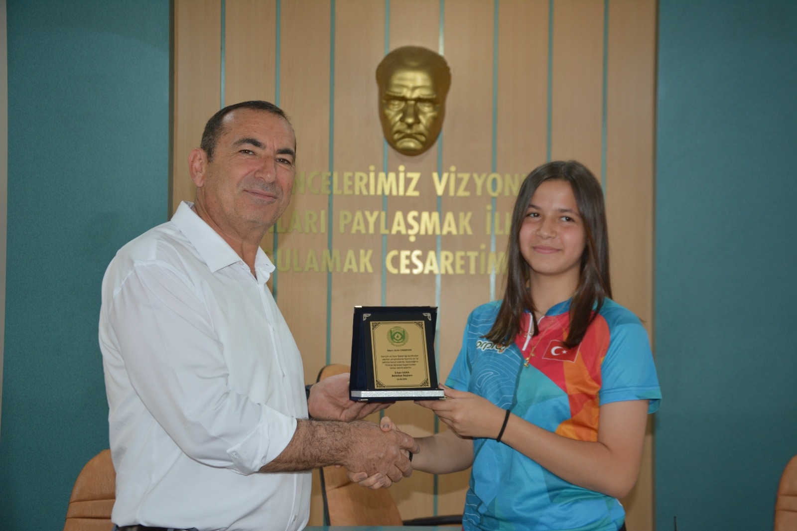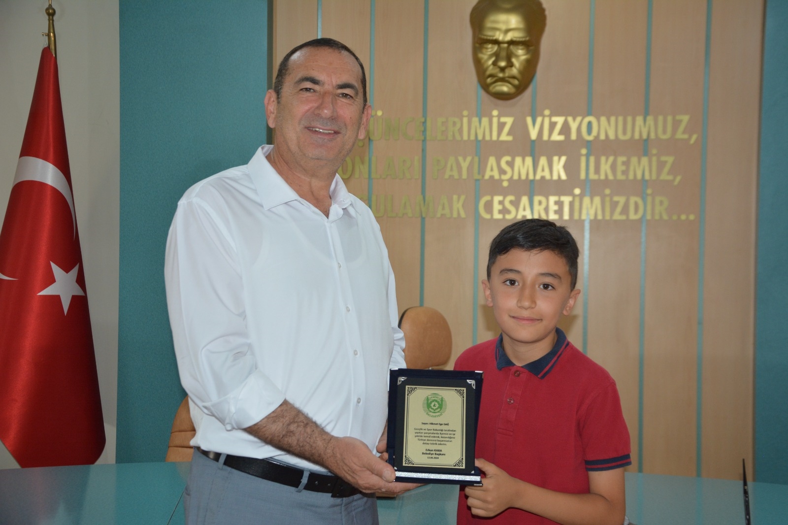 Belediye Başkanı Erkan Kara, spor müsabakalarında Türkiye derecesi alan gençleri ve öğrencileri ödüllendirdi.