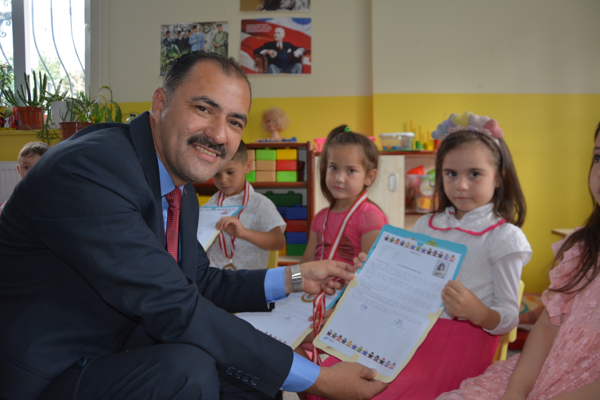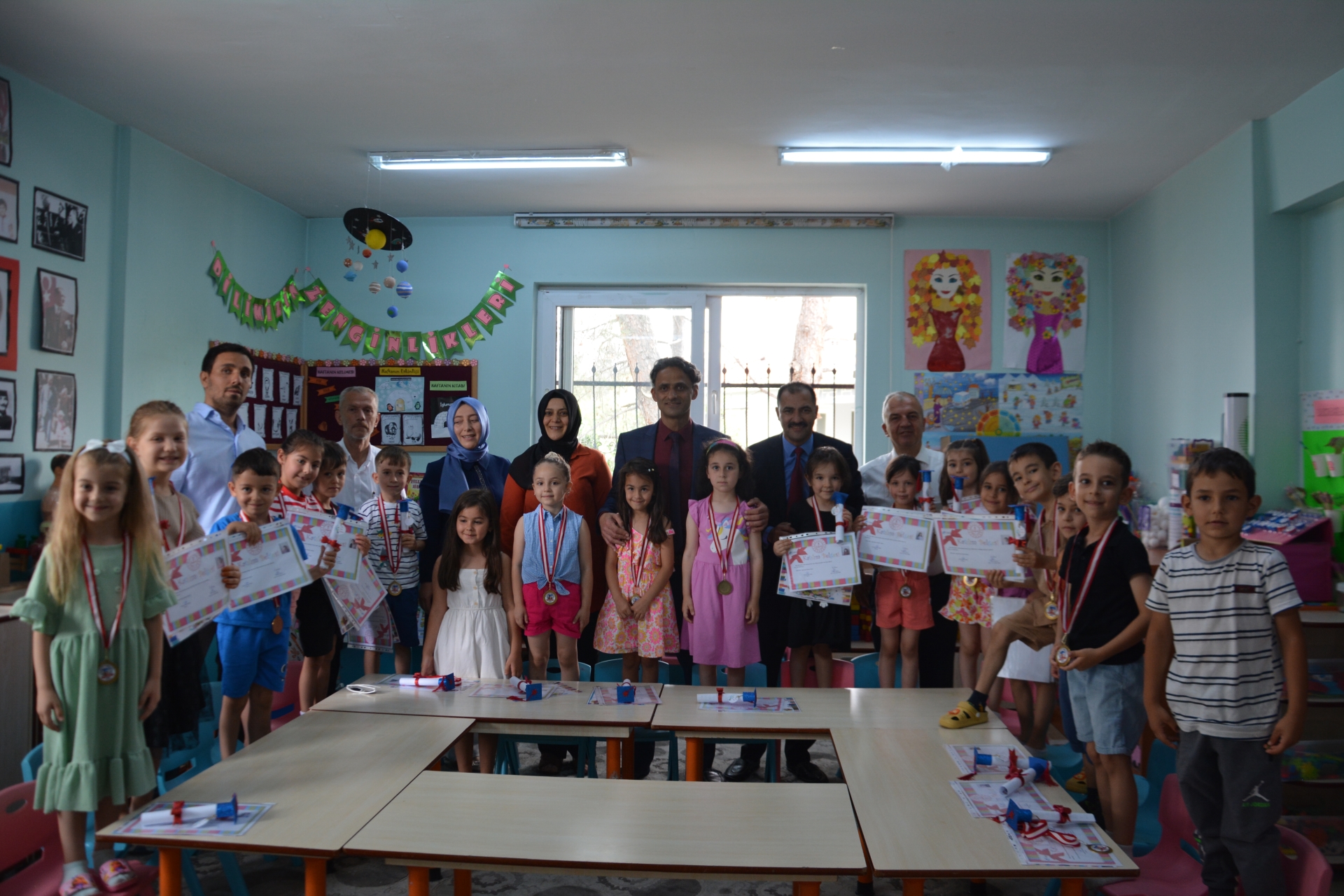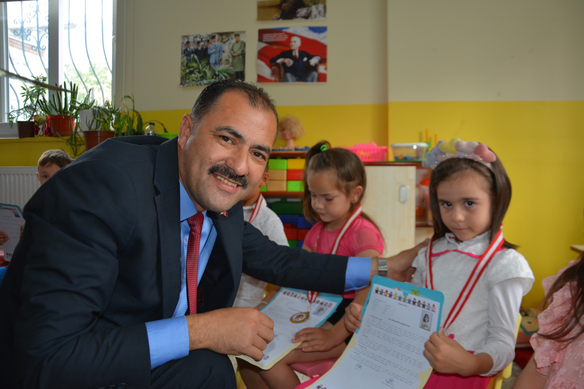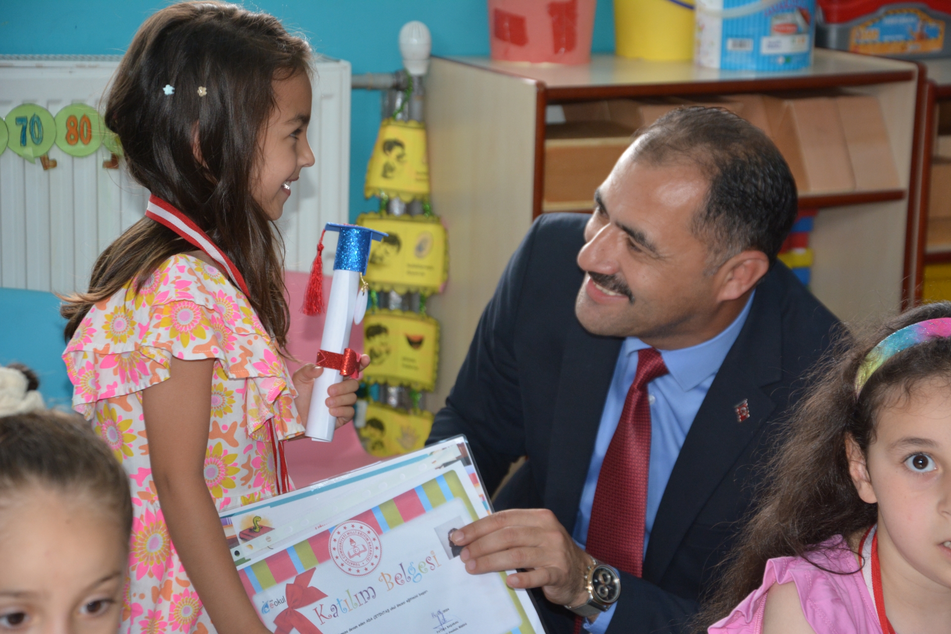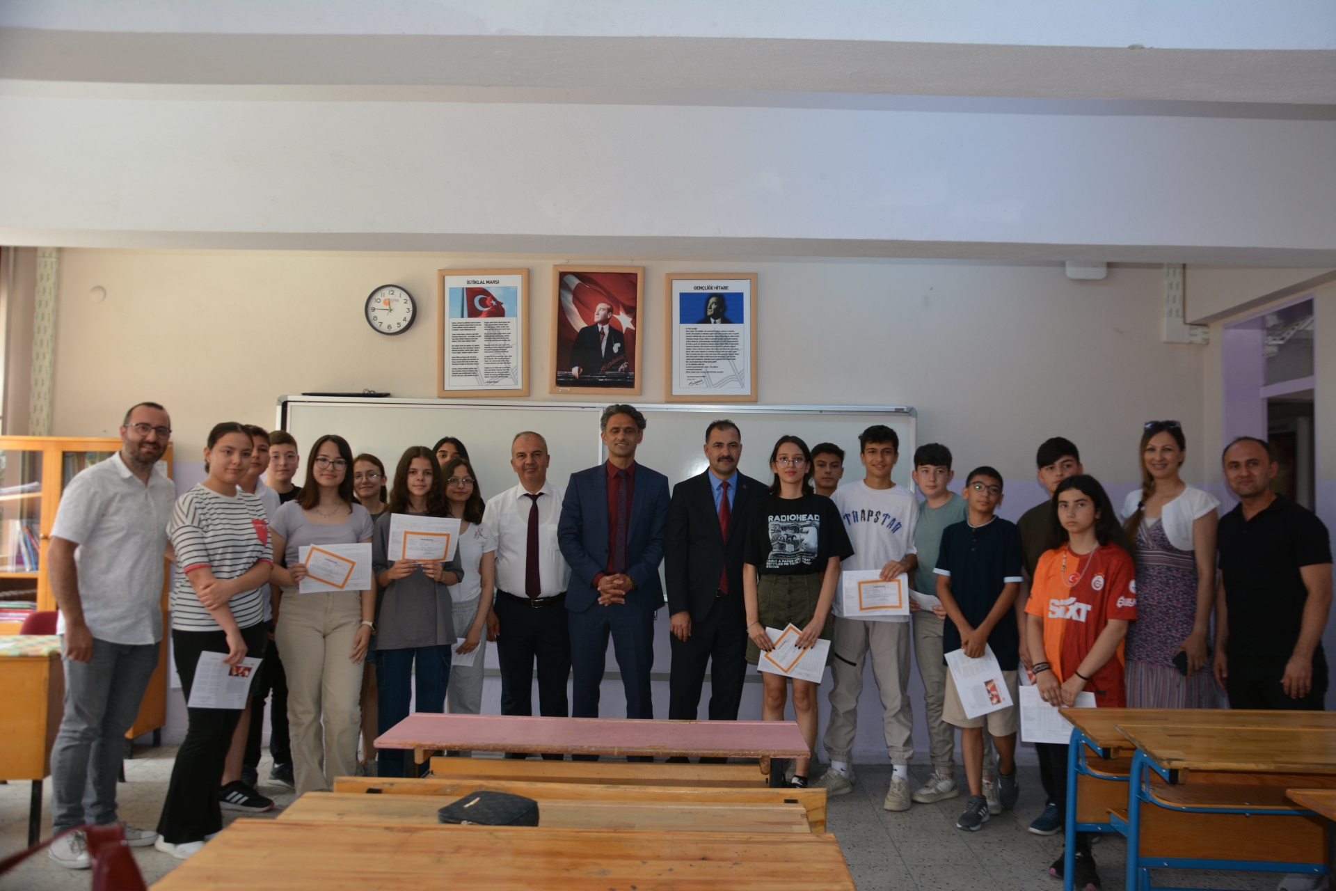 Kaymakam Adem Kaya, Başkan Erkan Kara ve Milli Eğitim Müdürü Bilal Çetinkaya, Hikmet Arsal Anaokulu, Cumhuriyet İlkokulu, Atatürk İlkokulu, Fatih Ortaokulu ve İmam Hatip Ortaokulunda öğrencilere karnelerini takdim ettiler.