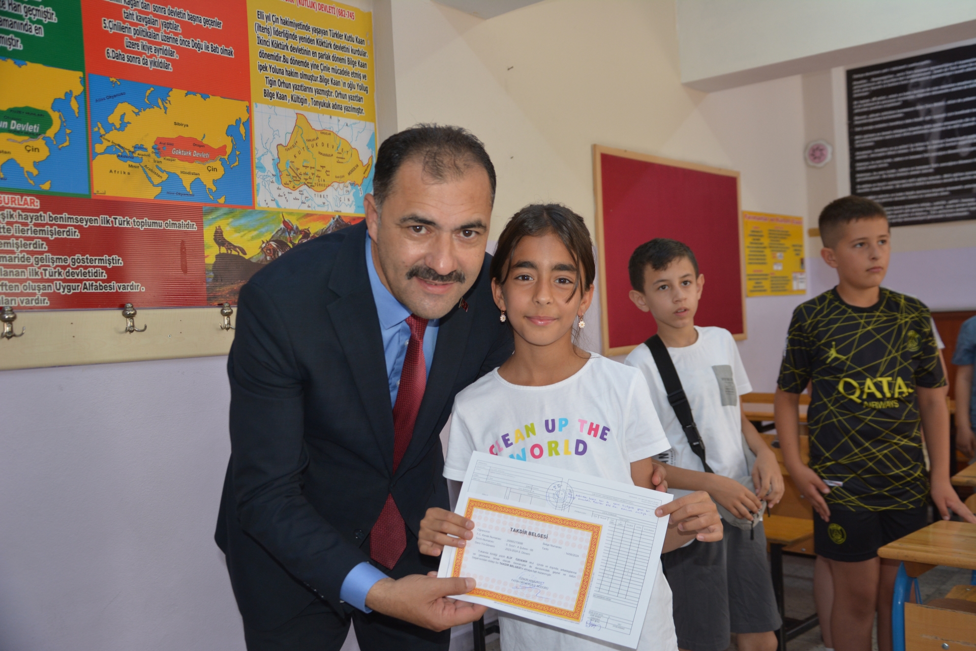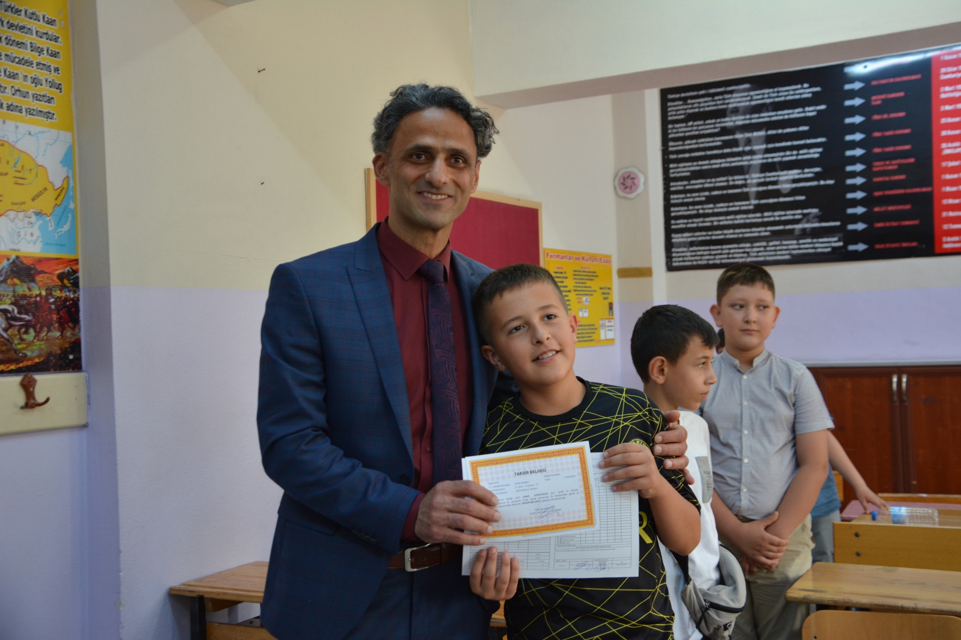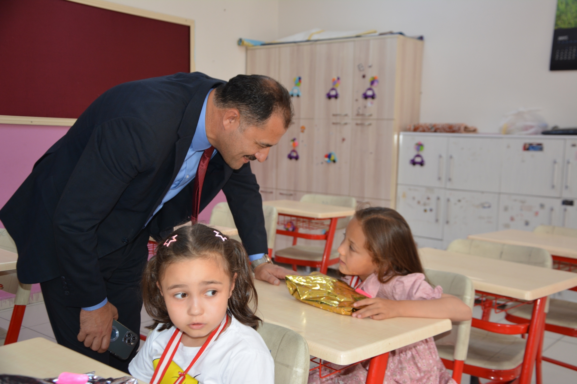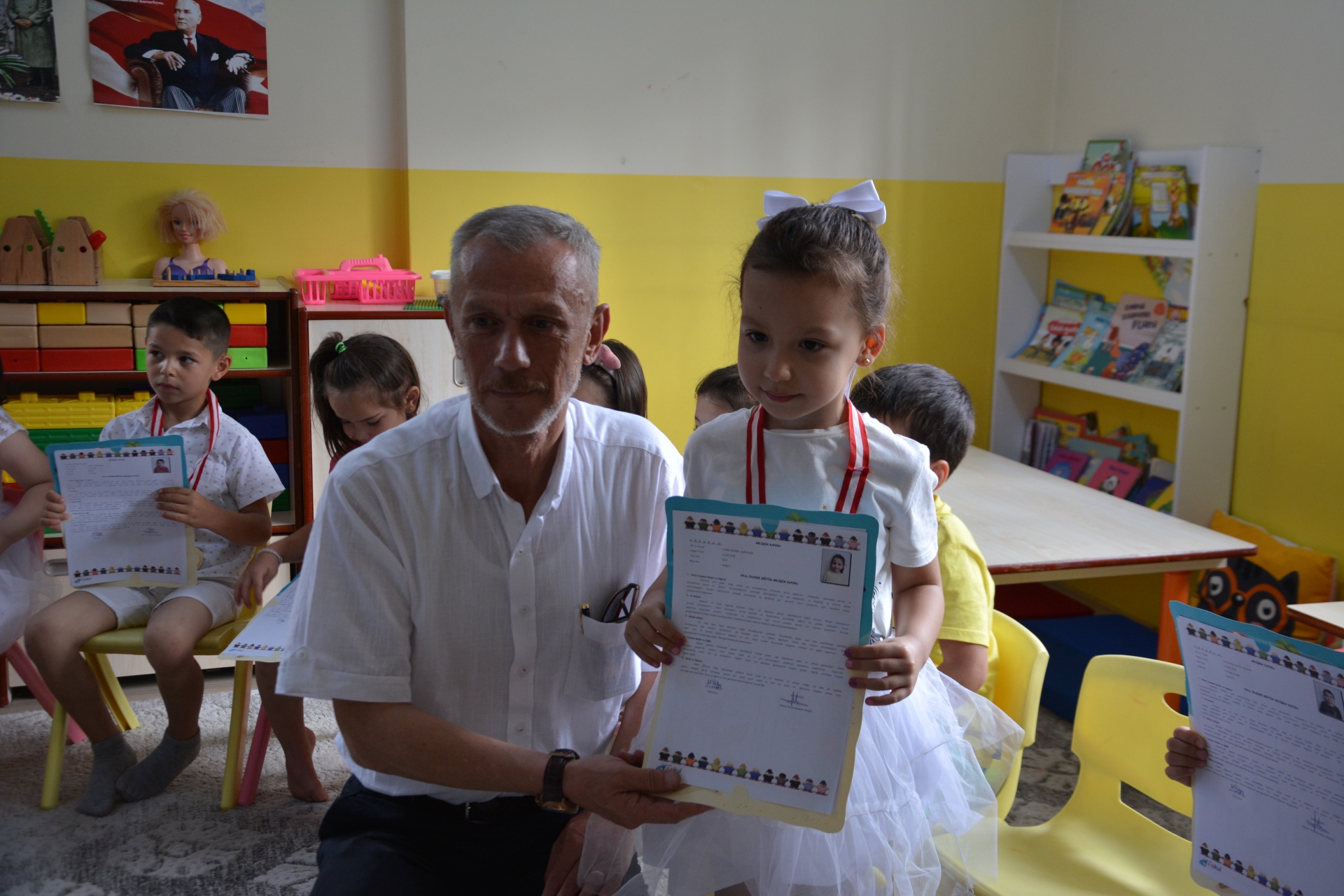 Kaymakam Adem Kaya, Başkan Erkan Kara ve Milli Eğitim Müdürü Bilal Çetinkaya, Hikmet Arsal Anaokulu, Cumhuriyet İlkokulu, Atatürk İlkokulu, Fatih Ortaokulu ve İmam Hatip Ortaokulunda öğrencilere karnelerini takdim ettiler.