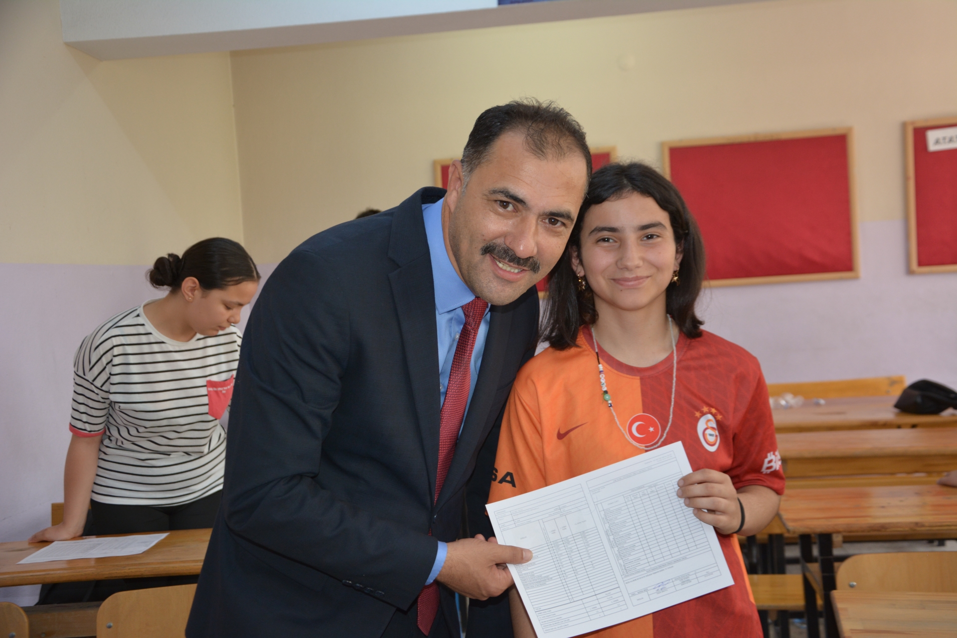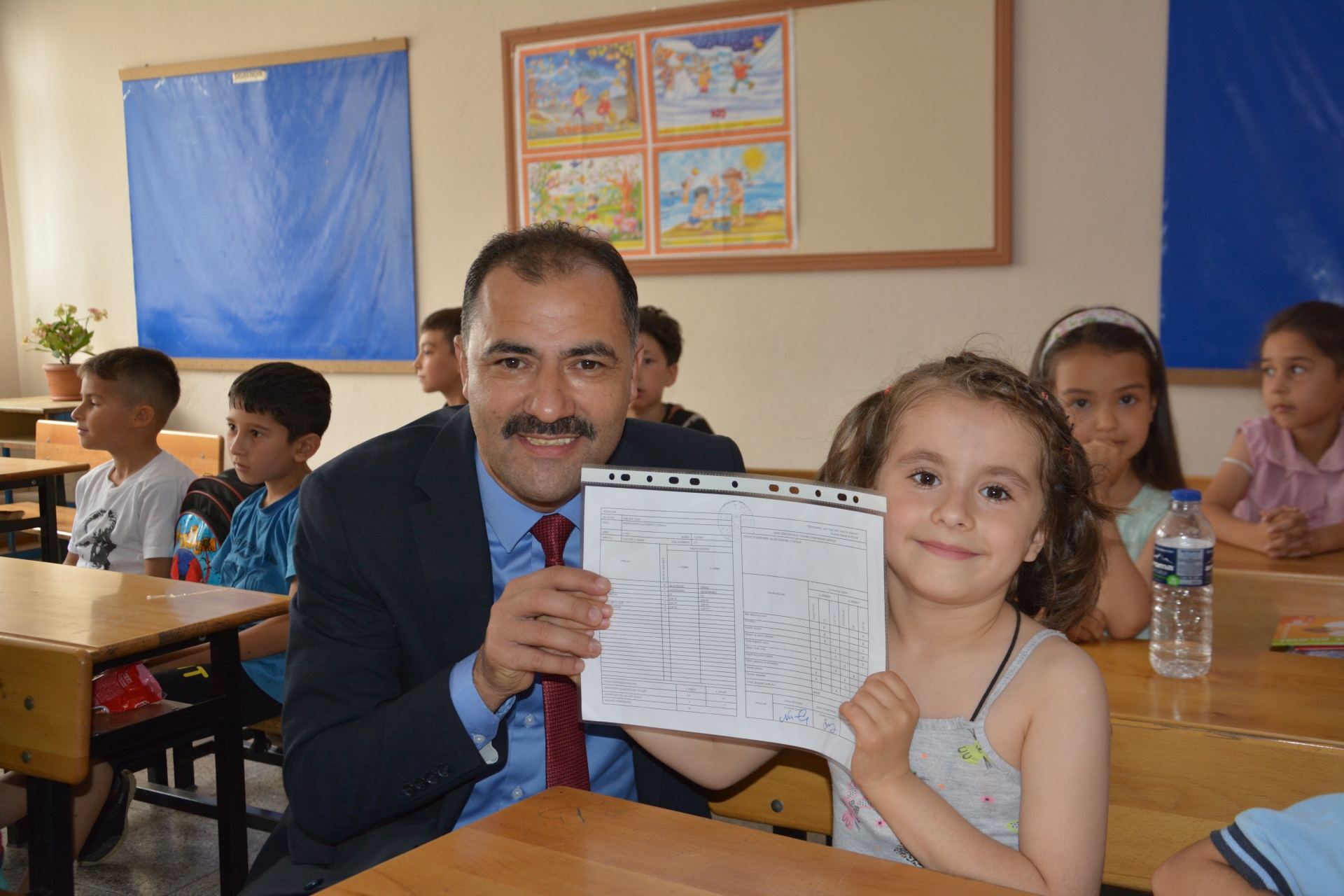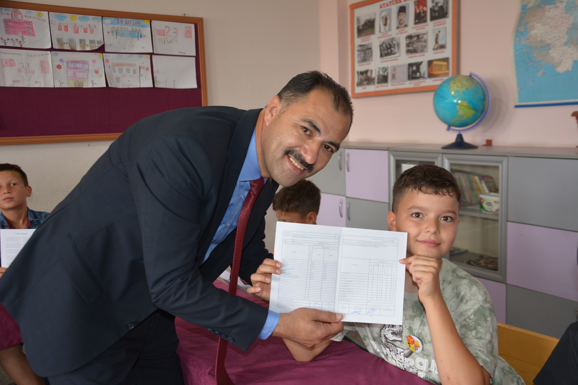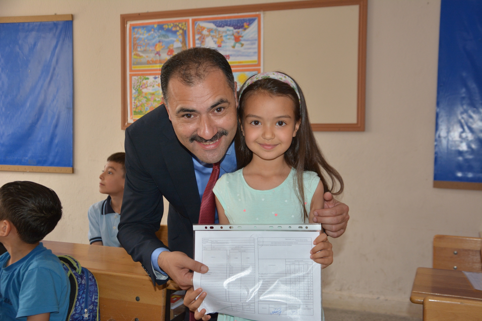 Demirci Kaymakamı Âdem Kaya, Belediye Başkanı Erkan Kara ve İlçe Milli Eğitim Müdürü Bilal Çetinkaya’da öğrencilerin karne sevincine ortak oldular.
