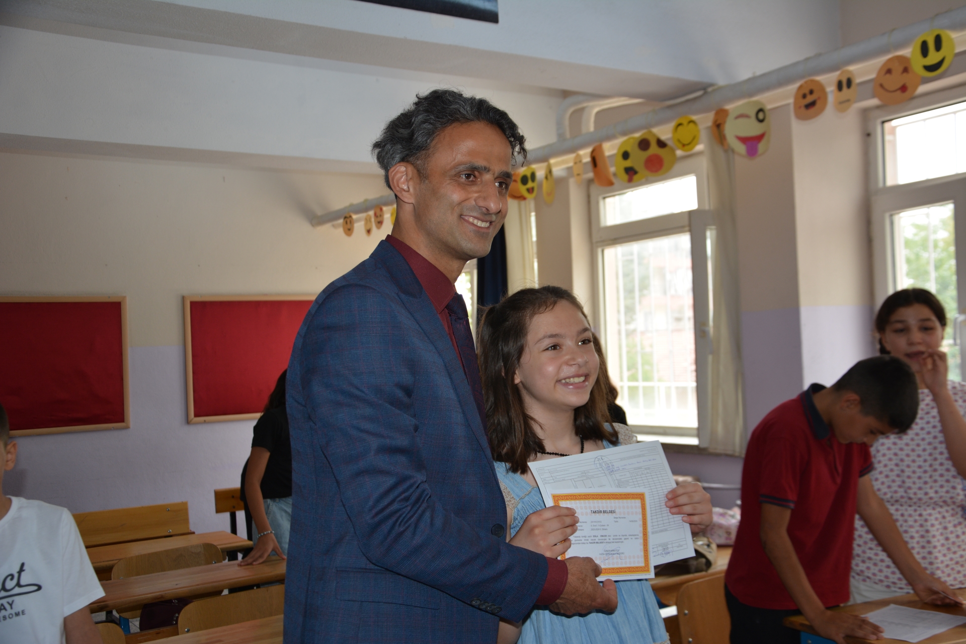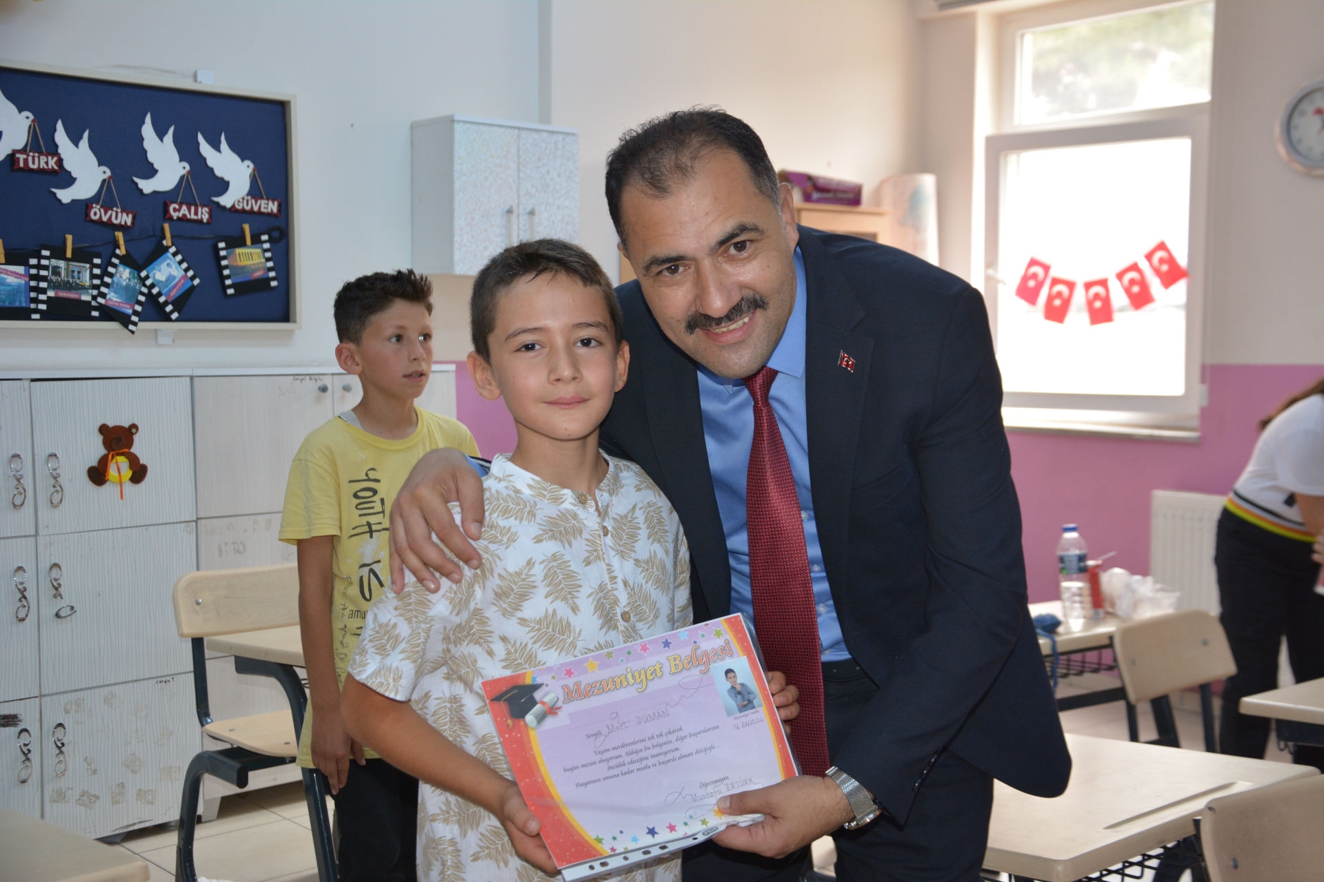 Öğrencilerin yakın ilgisi ile karşılaşan Başkan Erkan Kara, öğrencilere karnelerini verirken, iyi tatiller temennisinde bulundu.