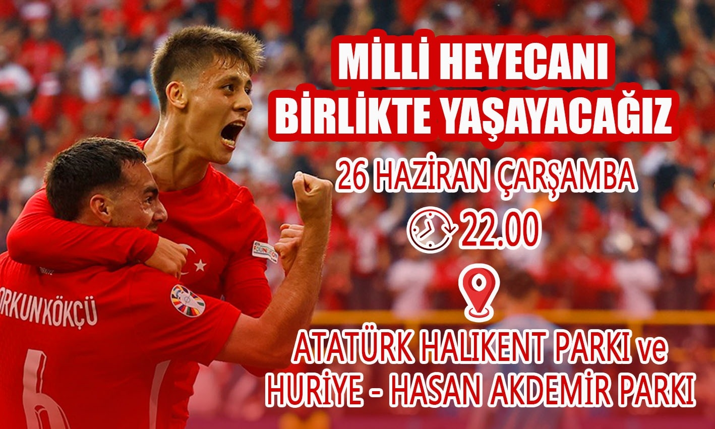 Belediye Başkanımız Erkan Kara yaptığı açıklamada “ Gruptan çıkmak adına son maç oldukça önemli. Milli Takımımızın bu önemli maçını hep birlikte izleyelim. 26 Haziran Çarşamba saat: 22.00’da oynanacak olan Çekya maçını Atatürk Halıkent Parkı ve Huriye – Hasan Akdemir parkında dev ekran izlemek için tüm gençlerimizi ve halkımızı davet ediyorum” dedi.