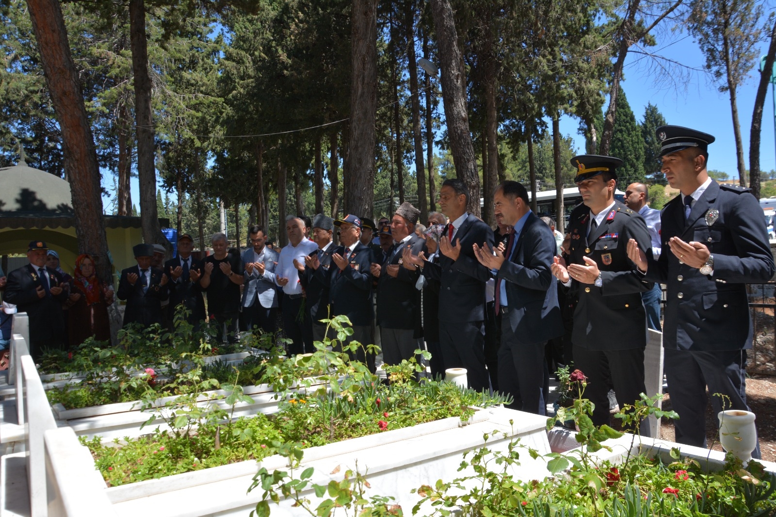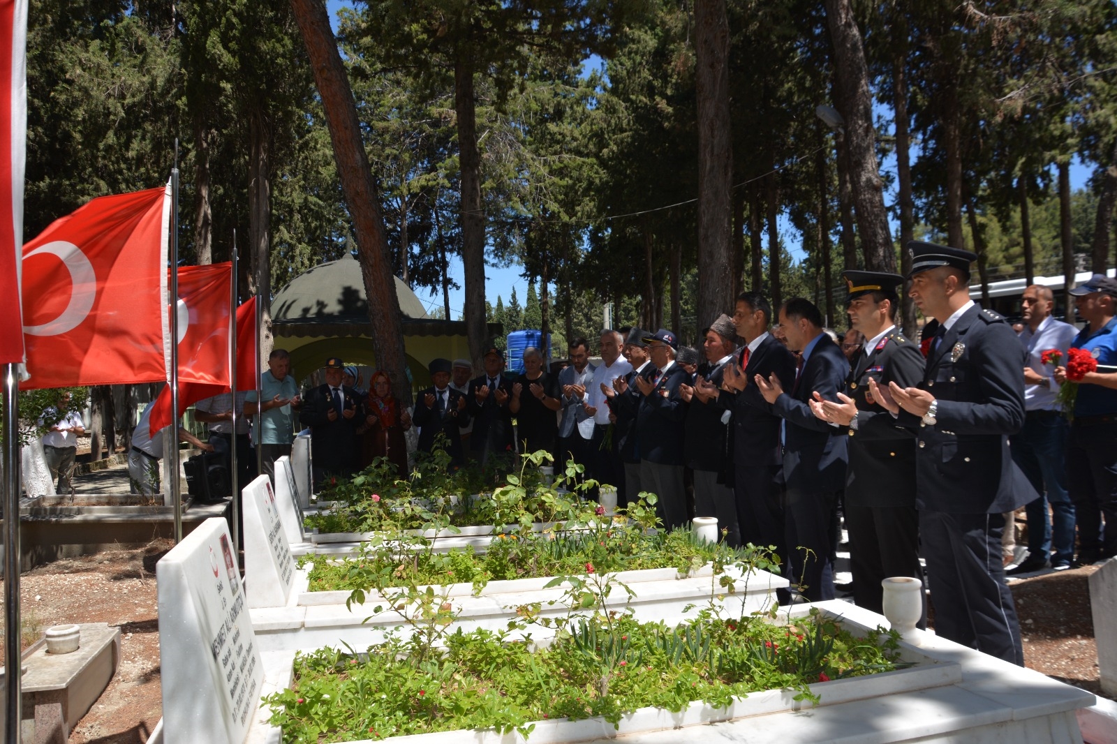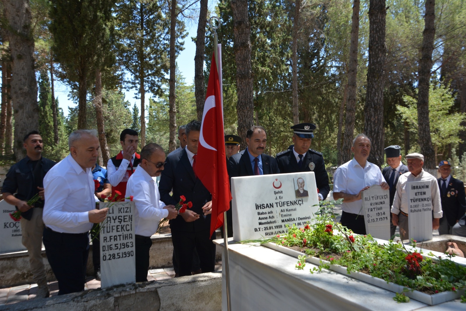 Demirci'de programlar çerçevesinde ilk olarak Kaymakamımız Adem Kaya, Belediye Başkanımız Erkan Kara, İlçe Protokolü, Şehit Yakınları ve Gaziler Şehit kabirlerini ziyaret ettiler.