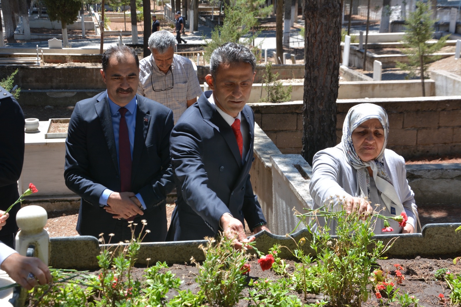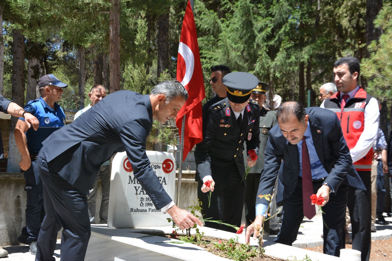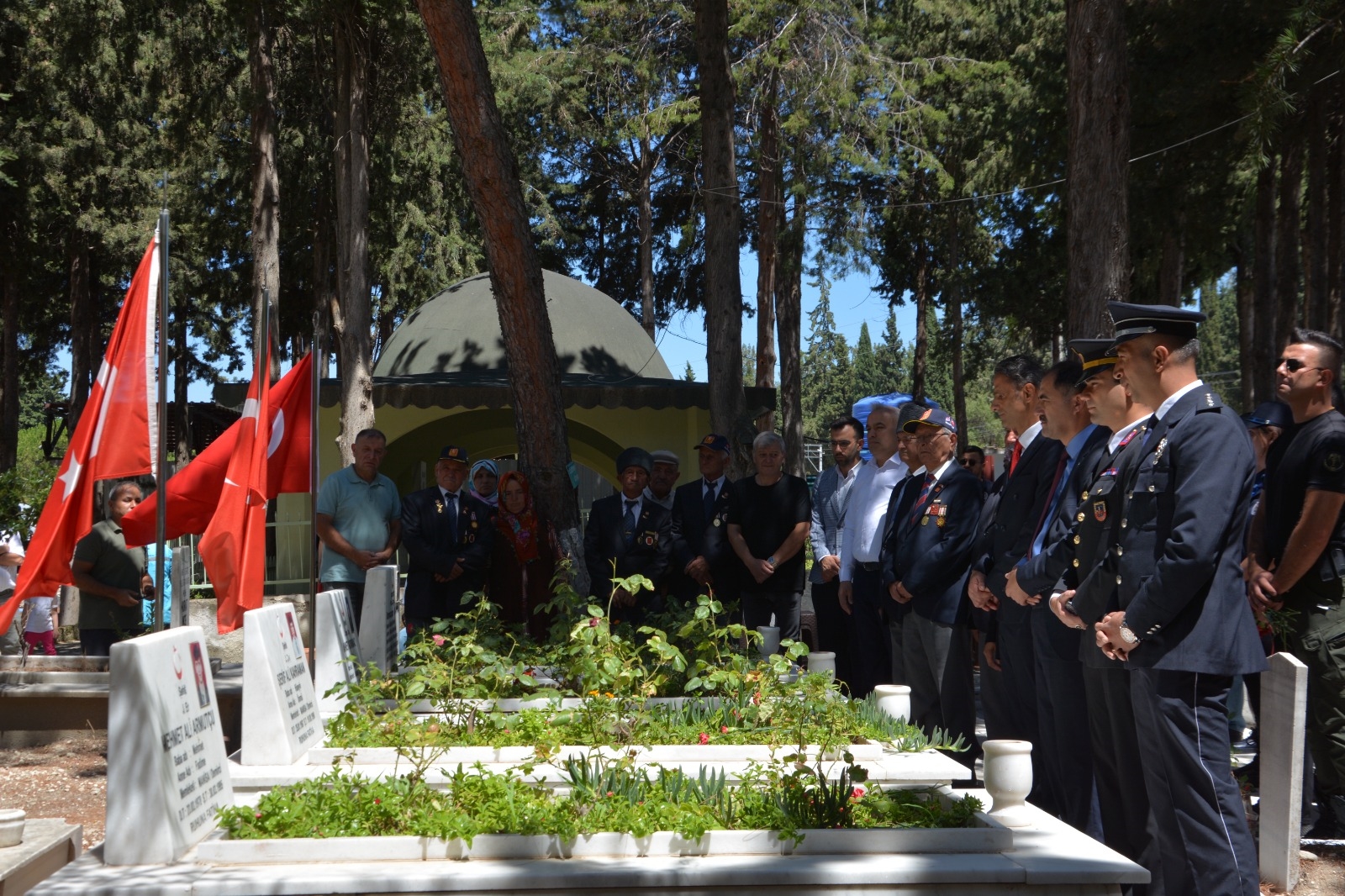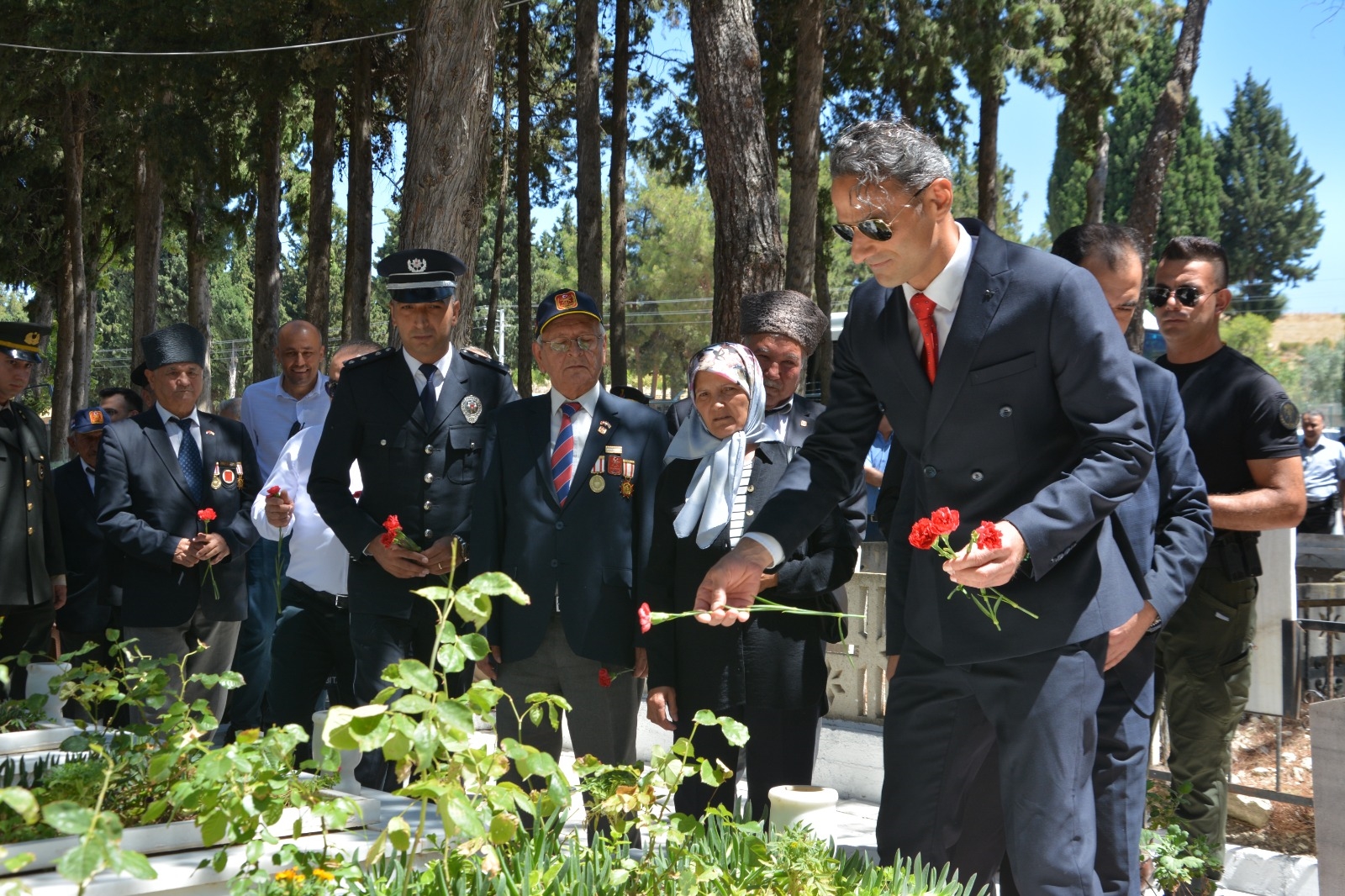 Demirci'de programlar çerçevesinde ilk olarak Kaymakamımız Adem Kaya, Belediye Başkanımız Erkan Kara, İlçe Protokolü, Şehit Yakınları ve Gaziler Şehit kabirlerini ziyaret ettiler.