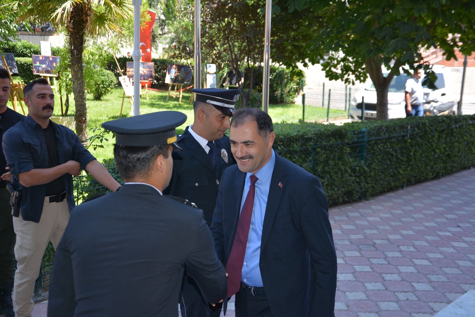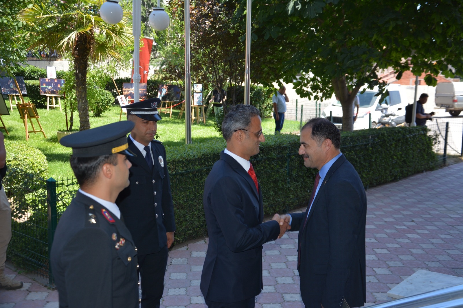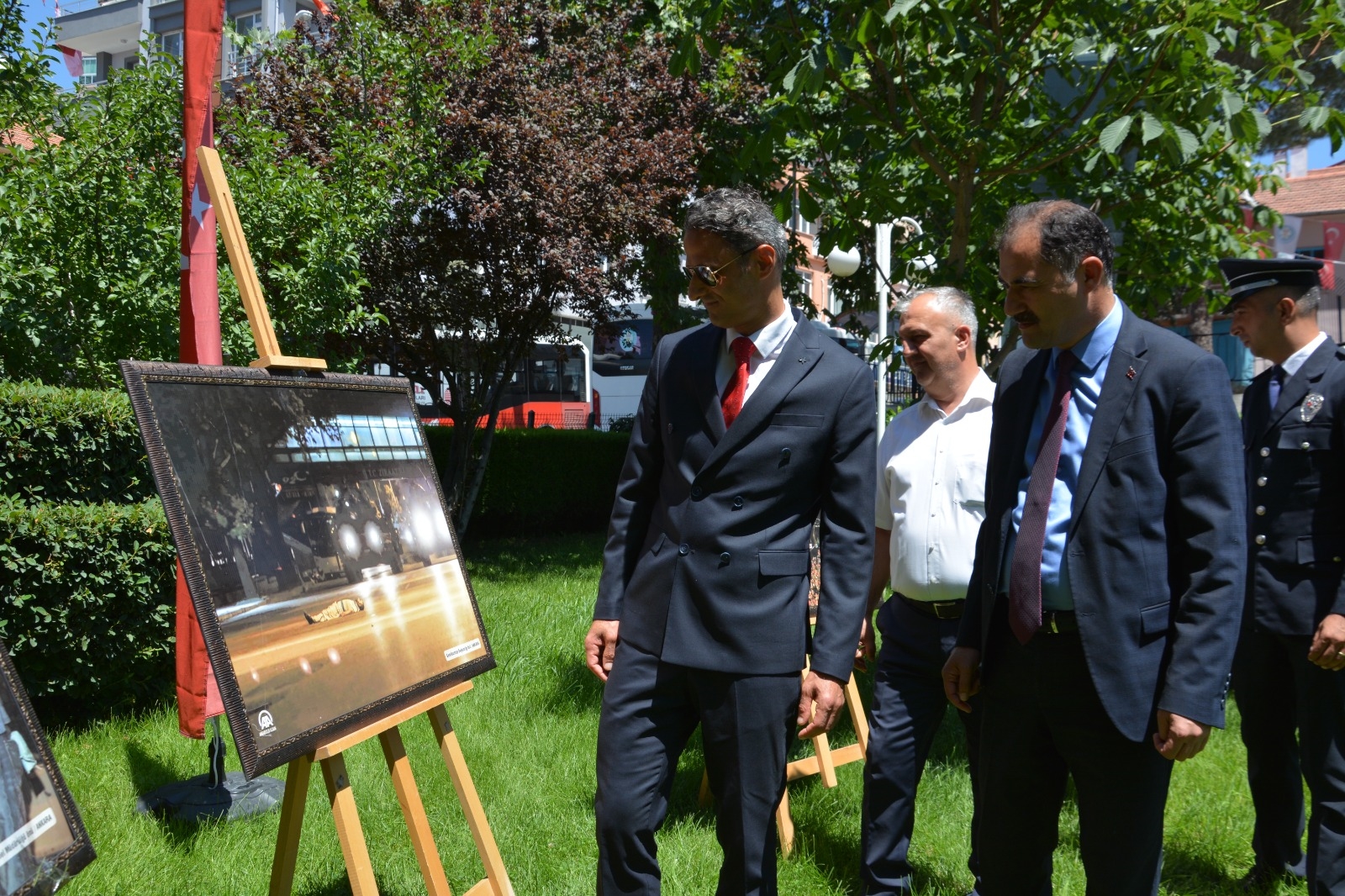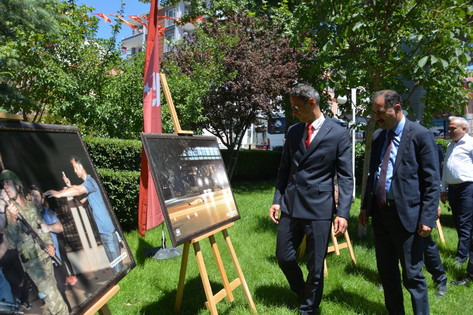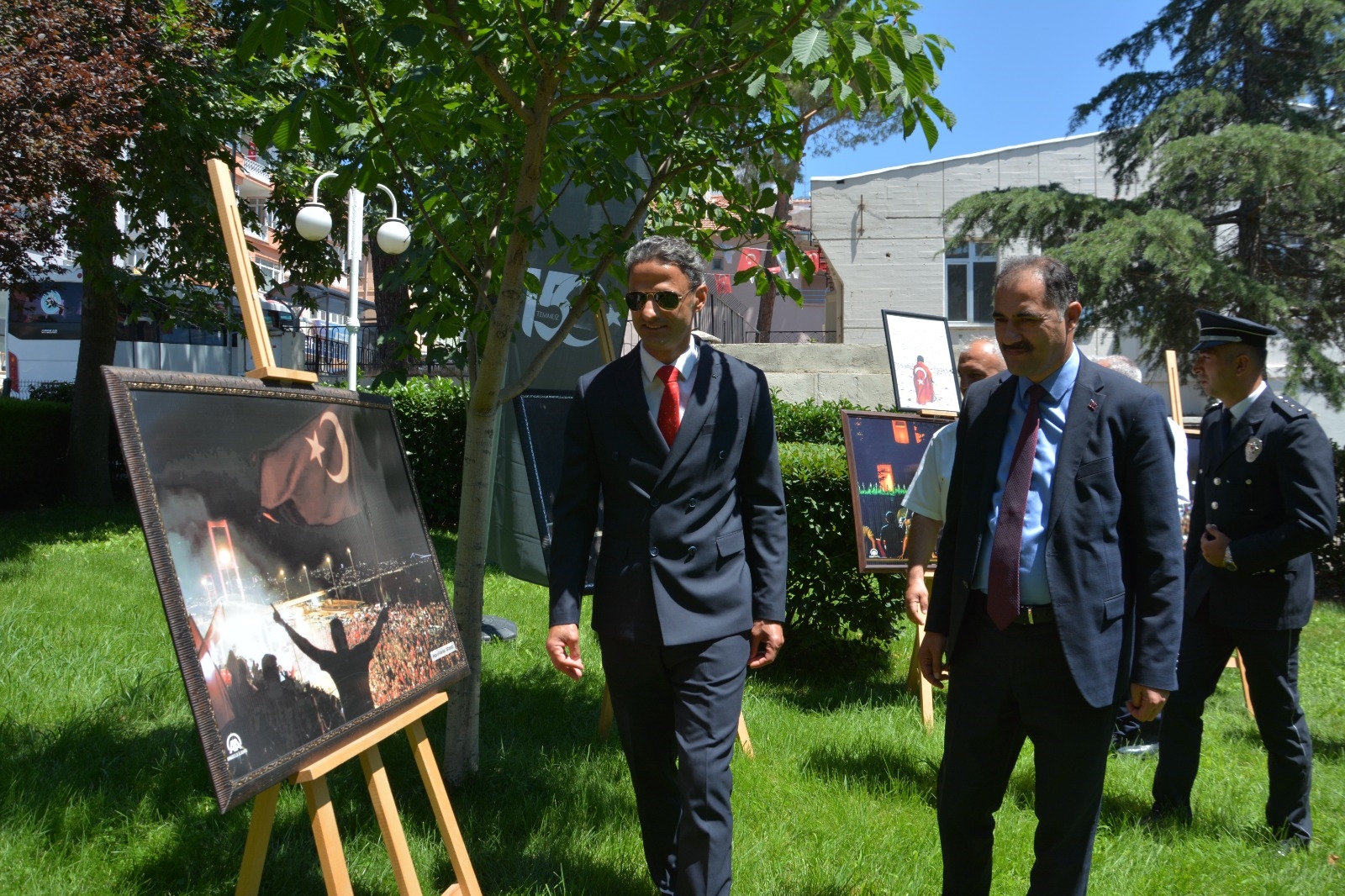 Namazın ardından 15 Temmuz Demokrasi ve Şehitler Meydanı belediye hizmet binası bahçesinde AA Fotoğraflarıyla 15 Temmuz ve Halk Eğitimi Merkezi tarafından hazırlanan resim sergisinin açılışı yapıldı.