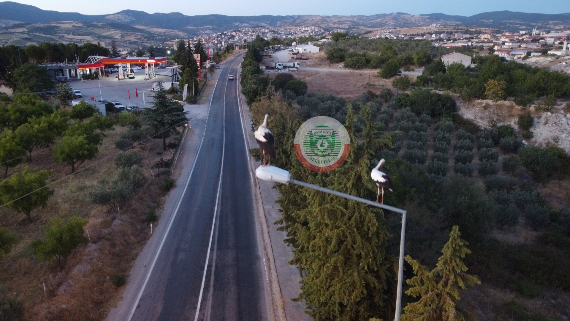 Ege Bölgesi'nde 850 metre rakımıyla çevresindeki yerleşim birimlerine göre yüksek konumda yer alan Demirci'de akşam saatlerinde leylekler sürpriz yaparak, mola verdiler.
