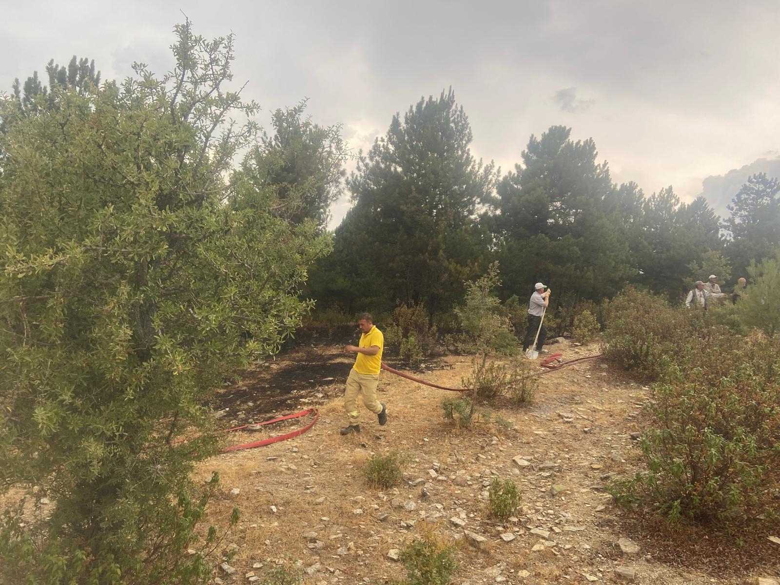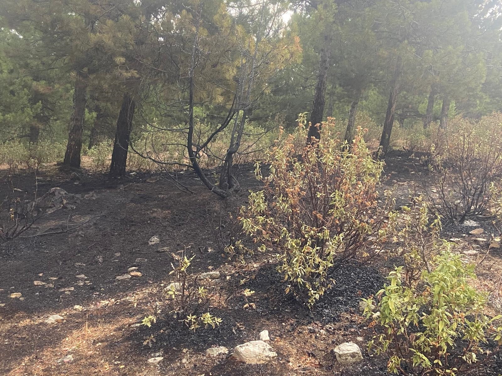 Orman İşletme Müdürlüğü yangın söndürme ekiplerince yaklaşık 1 saat süren müdahale ile söndürüldü.