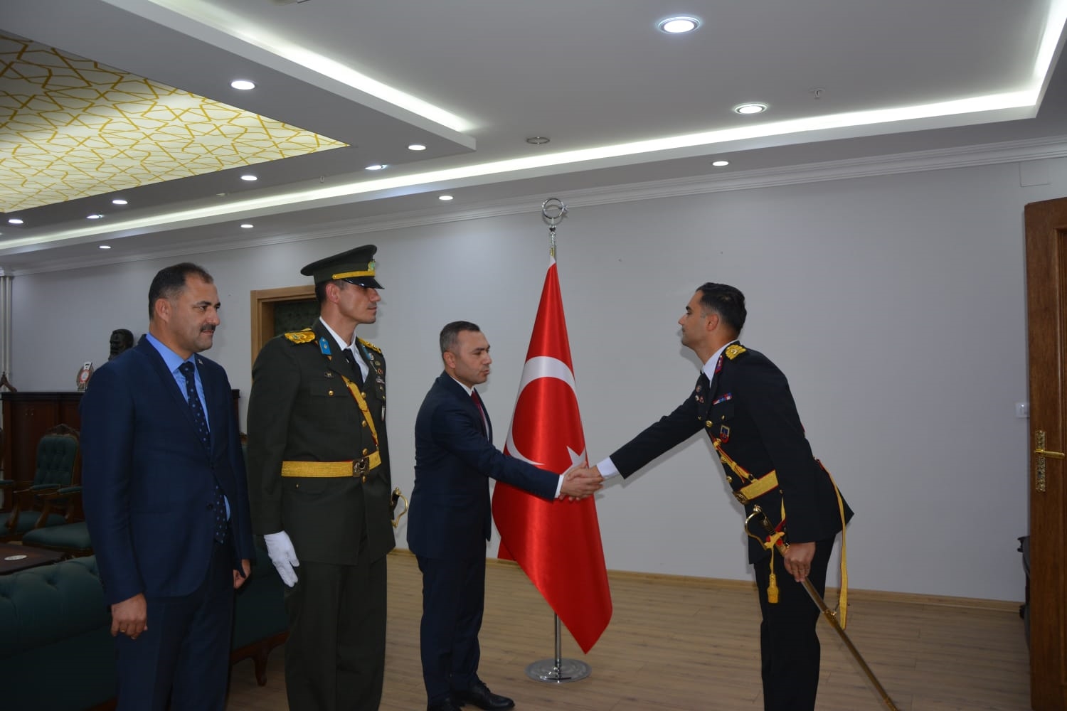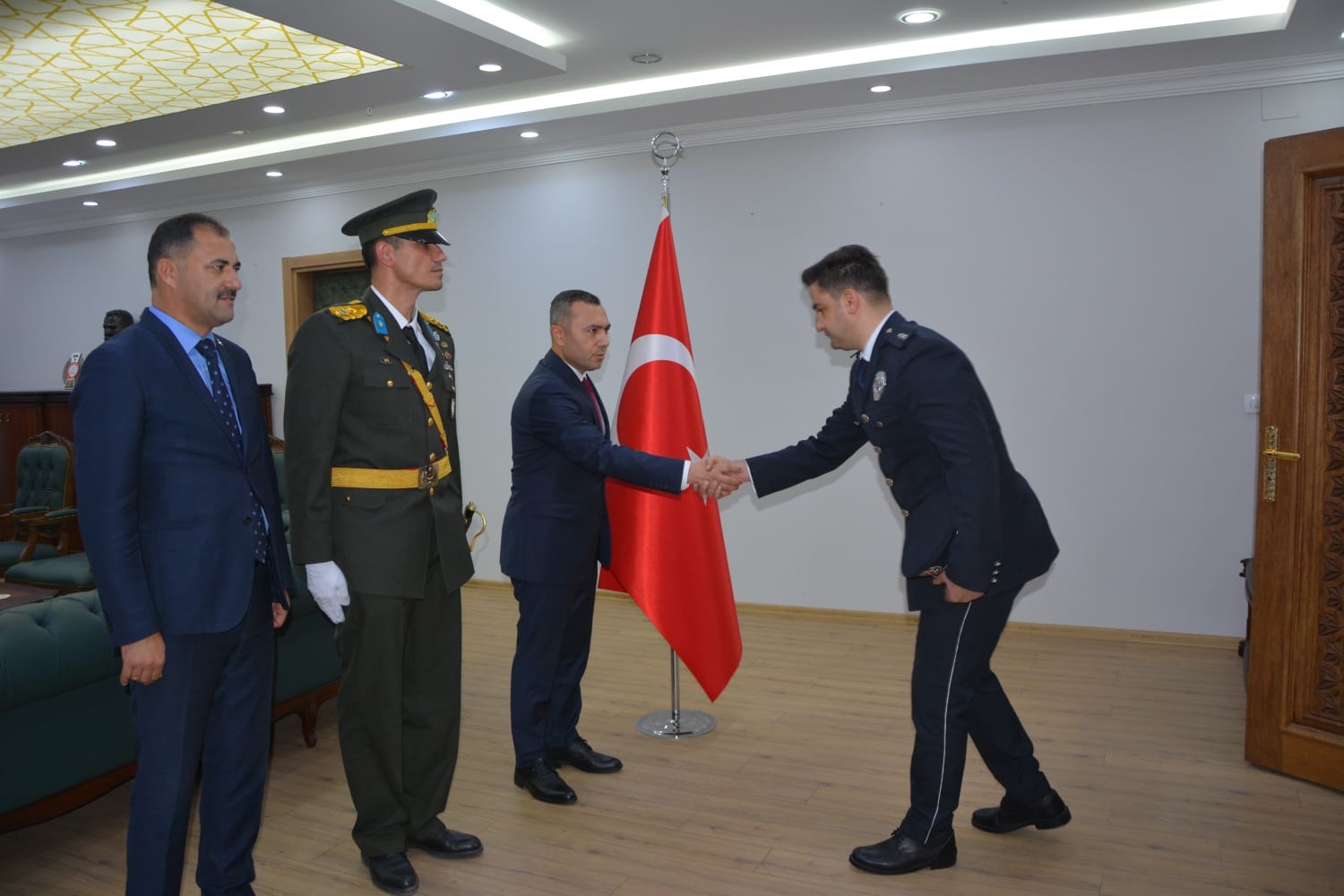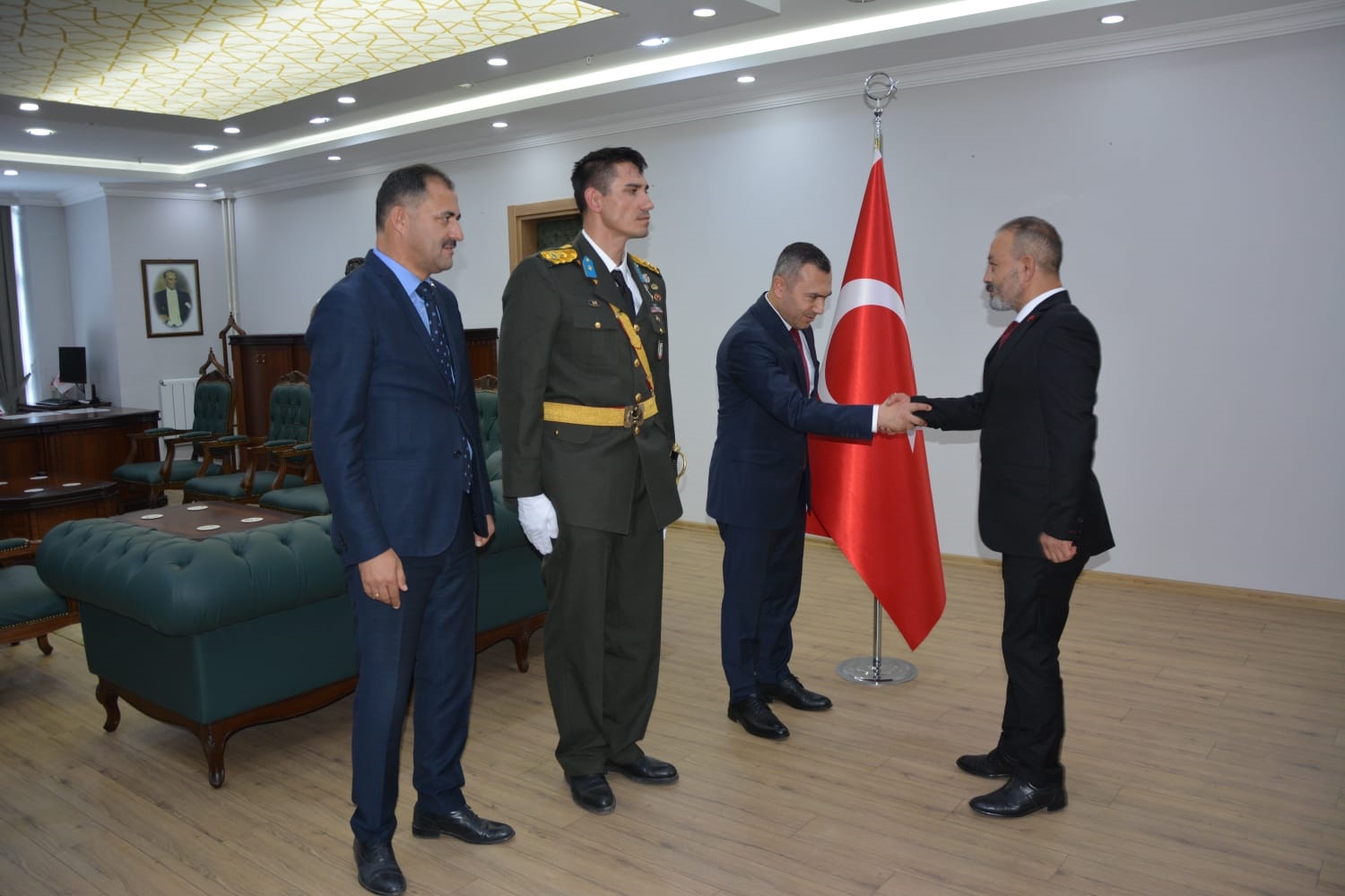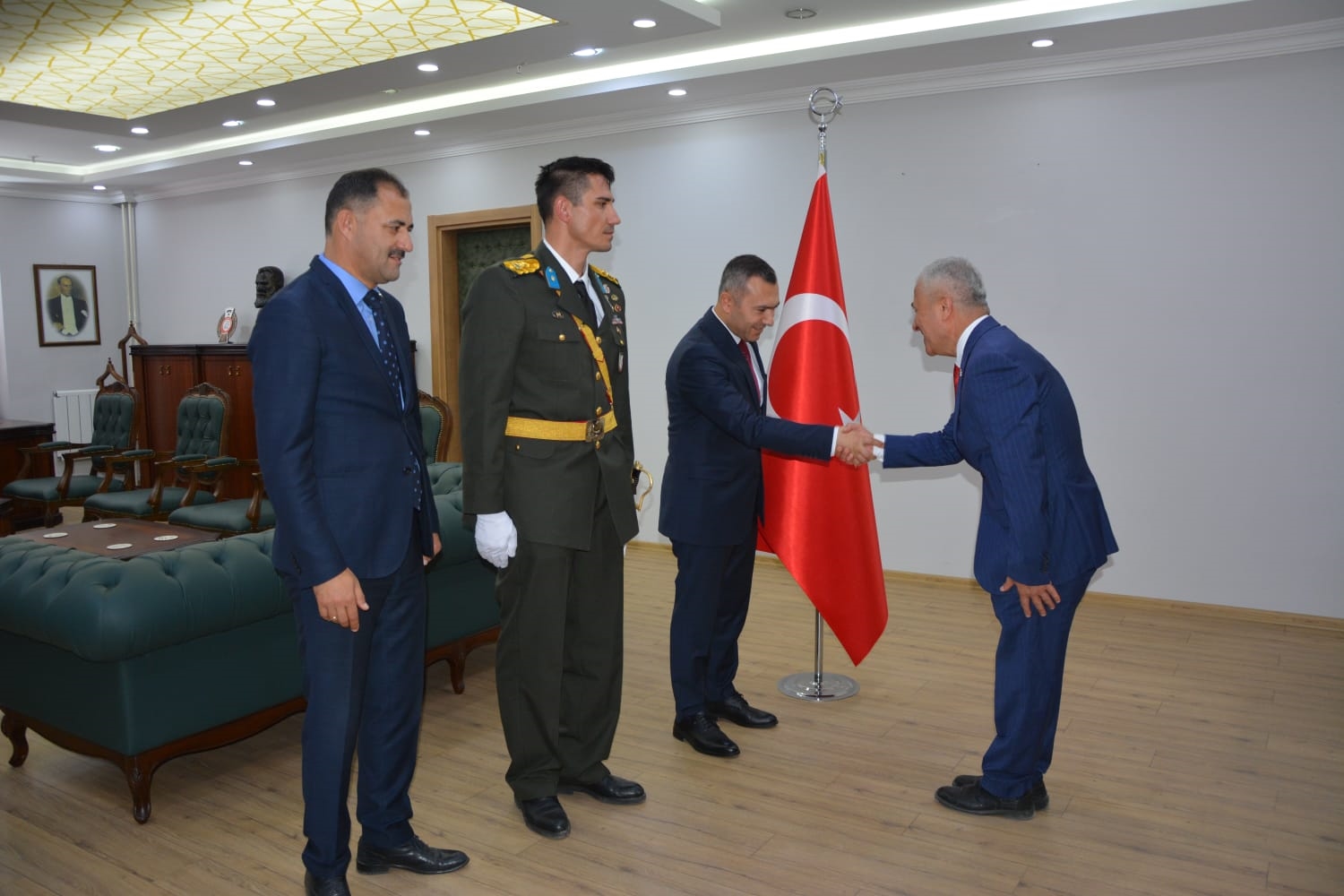 Öğrenciler tarafından okunan şiirlerin ardından Kaymakamımız Yavuz Arslan, Garnizon Komutanı Mly. Binbaşı Hüseyin Cihan Korkmaz ve Belediye Başkanımız Erkan Kara, Kaymakamlık makamında tebrikleri kabul ettiler.
