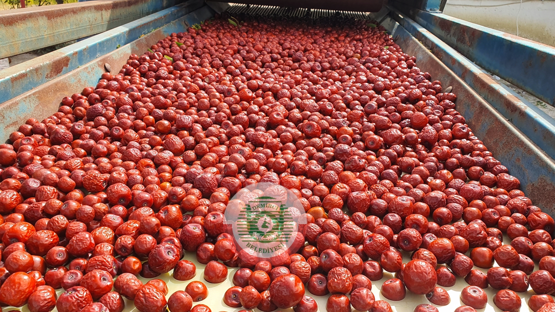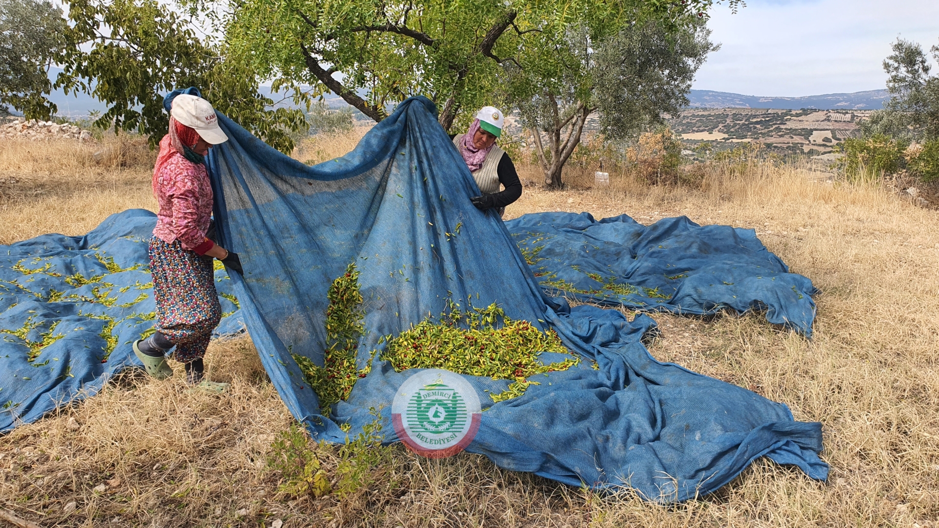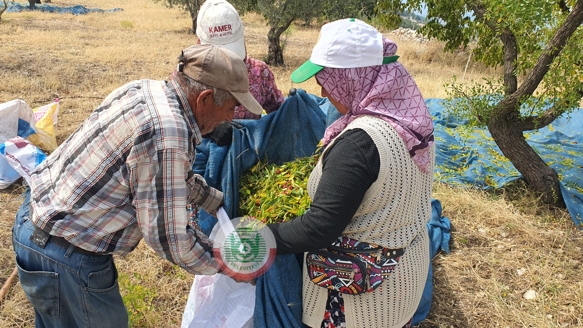 Türkiye'nin önde gelen hünnap üretim merkezlerinden Demirci’de üreticiler sabahın erken saatlerinde tarlalarına giderek silkme makinesi ve sırıklarla hünnaplarını ağaç diplerine serdikleri örtülere topluyorlar.
