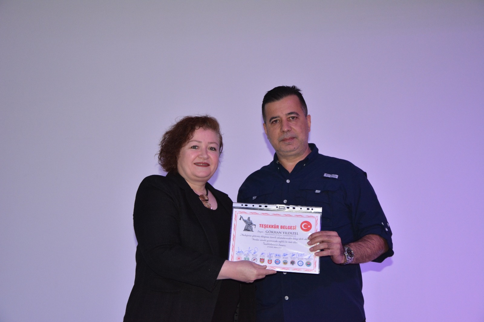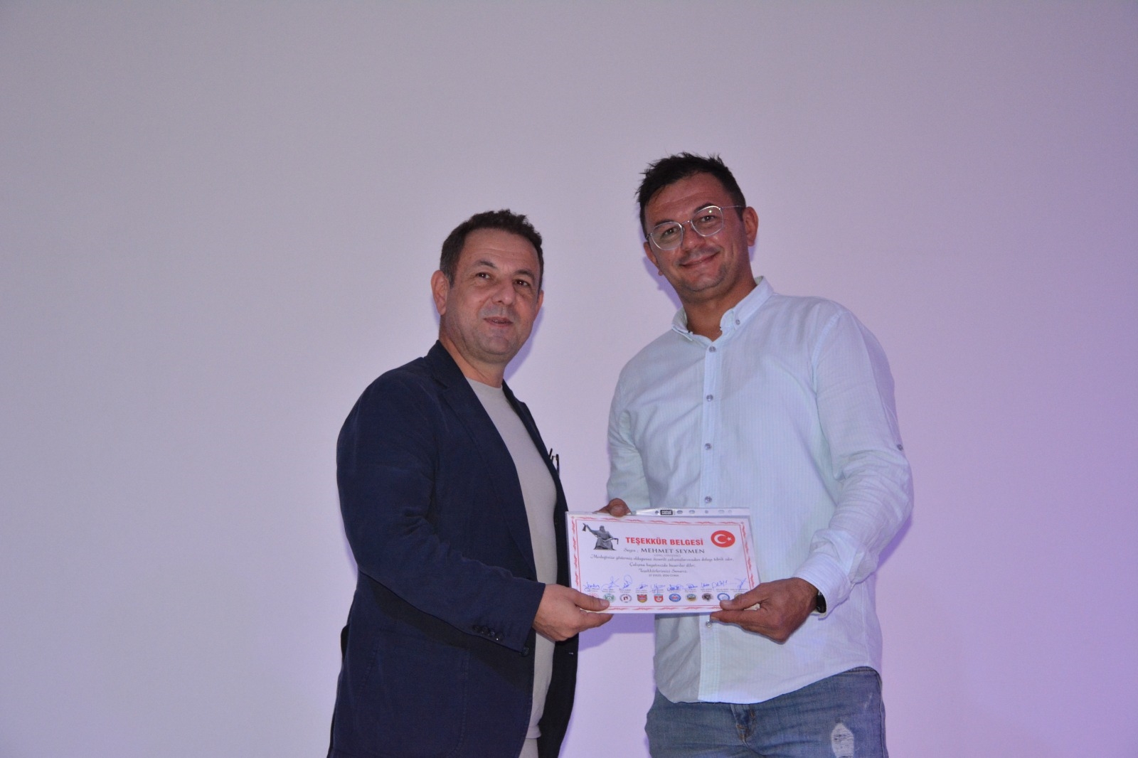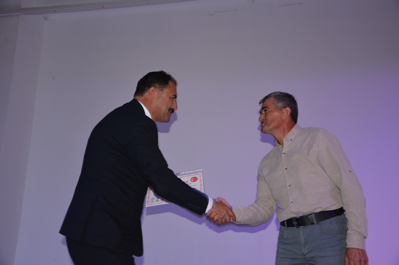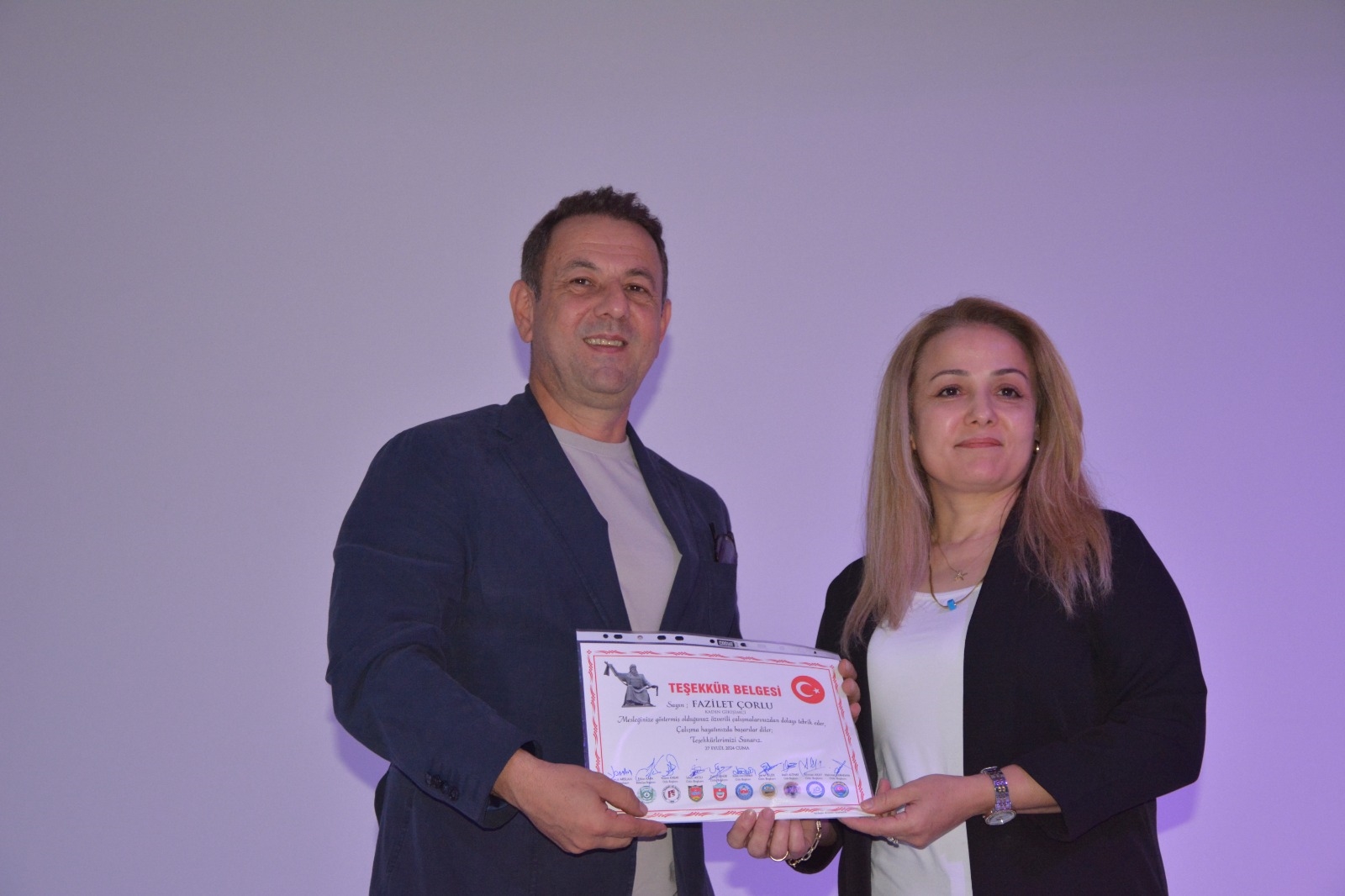 Tiyatro gösterisinin ardından Kaymakamımız Yavuz Arslan, Başkanımız Erkan Kara ve Oda Başkanları tarafından mesleğinde 25 yılını tamamlayanlara, kadın ve gen girişimcilere belgeleri takdim edildi.