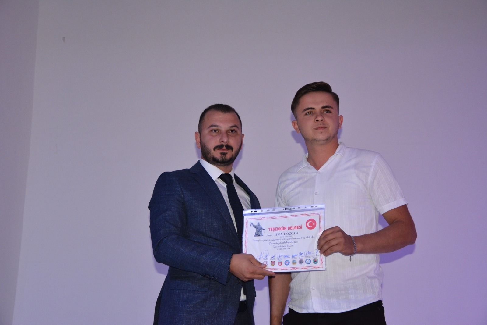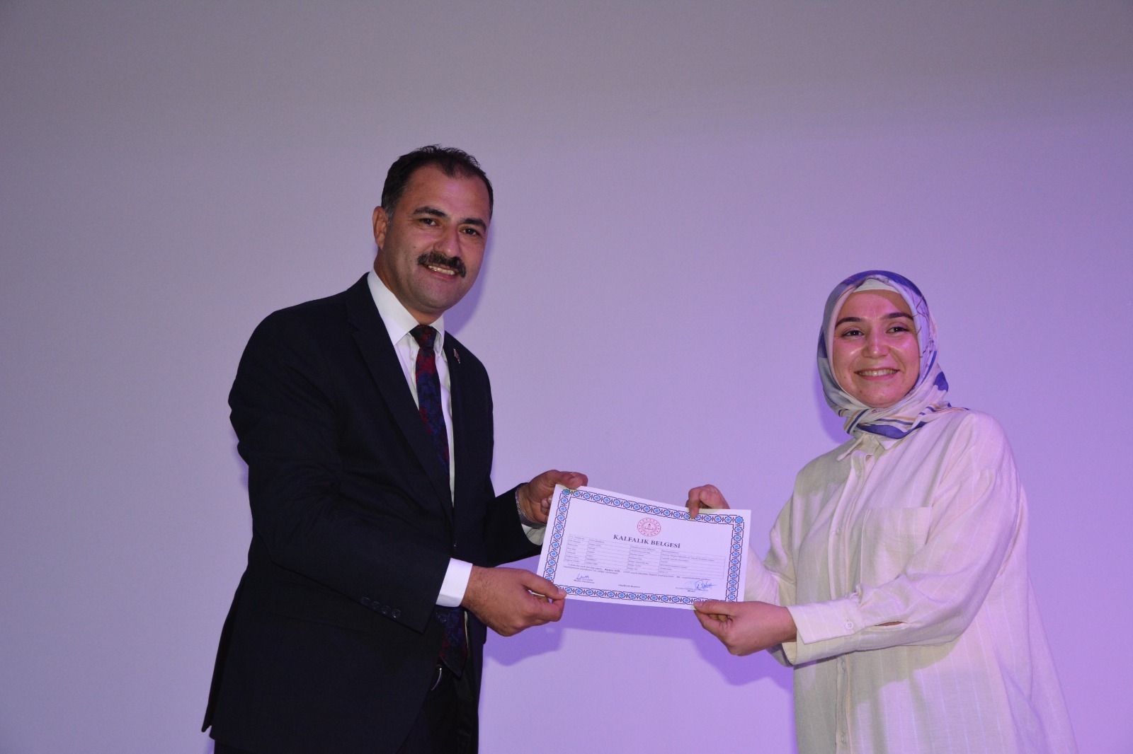 Ahi Evran Mesleki ve Teknik Anadolu Lisesi ve Gevher Nesibe Mesleki ve Teknik Anadolu Lisesinden kalfalık ve ustalık belgesi almayı hak kazananlara belgeleri Kaymakamımız Yavuz Arslan, Belediye Başkanımız Erkan Kara, İlçe Milli Eğitim Müdürü Bilal Çetinkaya ve Ahi Evran Mesleki ve Teknik Anadolu Lisesi Müdürü Ahmet Raşit Petekçi tarafından verildi.