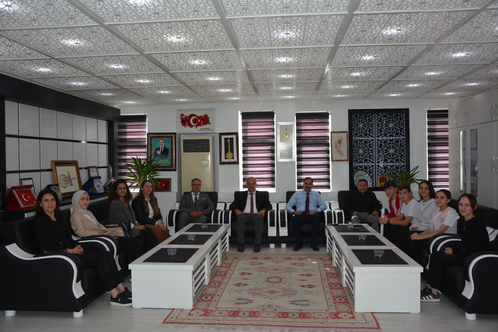 Öğretmen ve Öğrenciler İlçe Milli Eğitim Müdürü Bilal Çetinkaya ve Okul Müdürü Güngör Vurucu ile birlikte Belediye Başkanımız Erkan Kara’yı ziyaret ettiler.