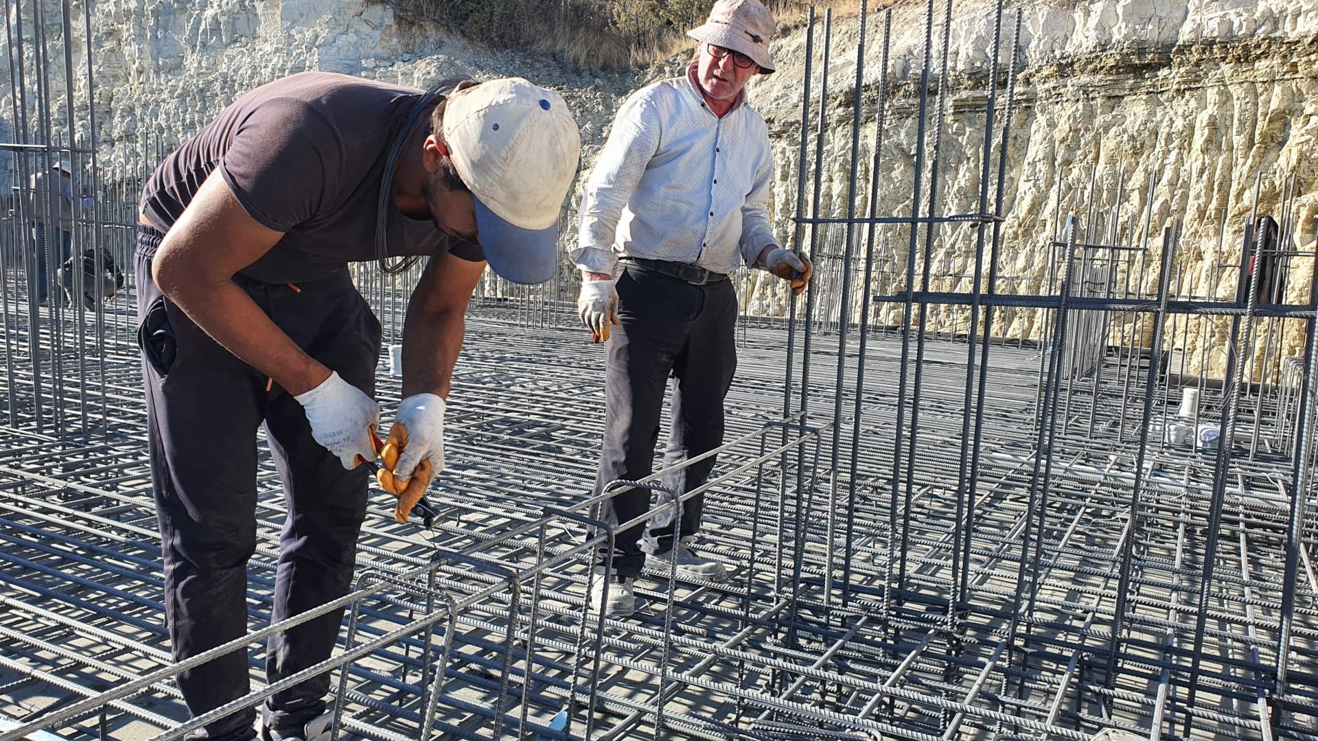 İlk bloğun bina temeli için demir bağlama çalışmaları tamamlanırken, 17 Ekim Perşembe günü temel betonu atılacak.