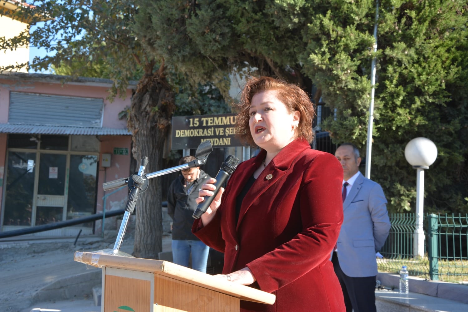 Saygı duruşu ve İstiklal marşının okunmasının ardından Muhtarlar Dernek Başkanı Fatma Gümüş tarafından günün anlam ve önemini belirten konuşma geçekleştirildi.