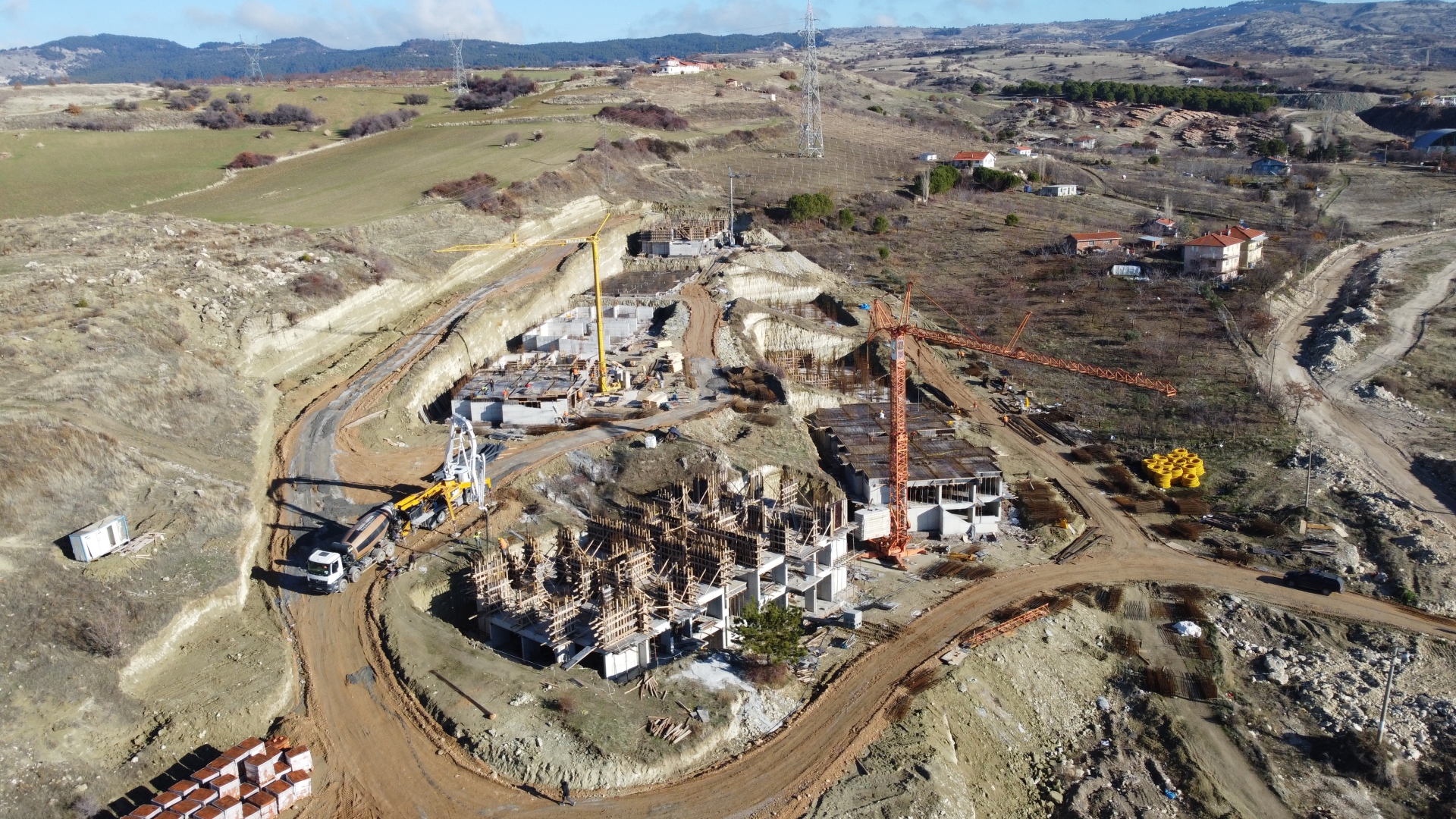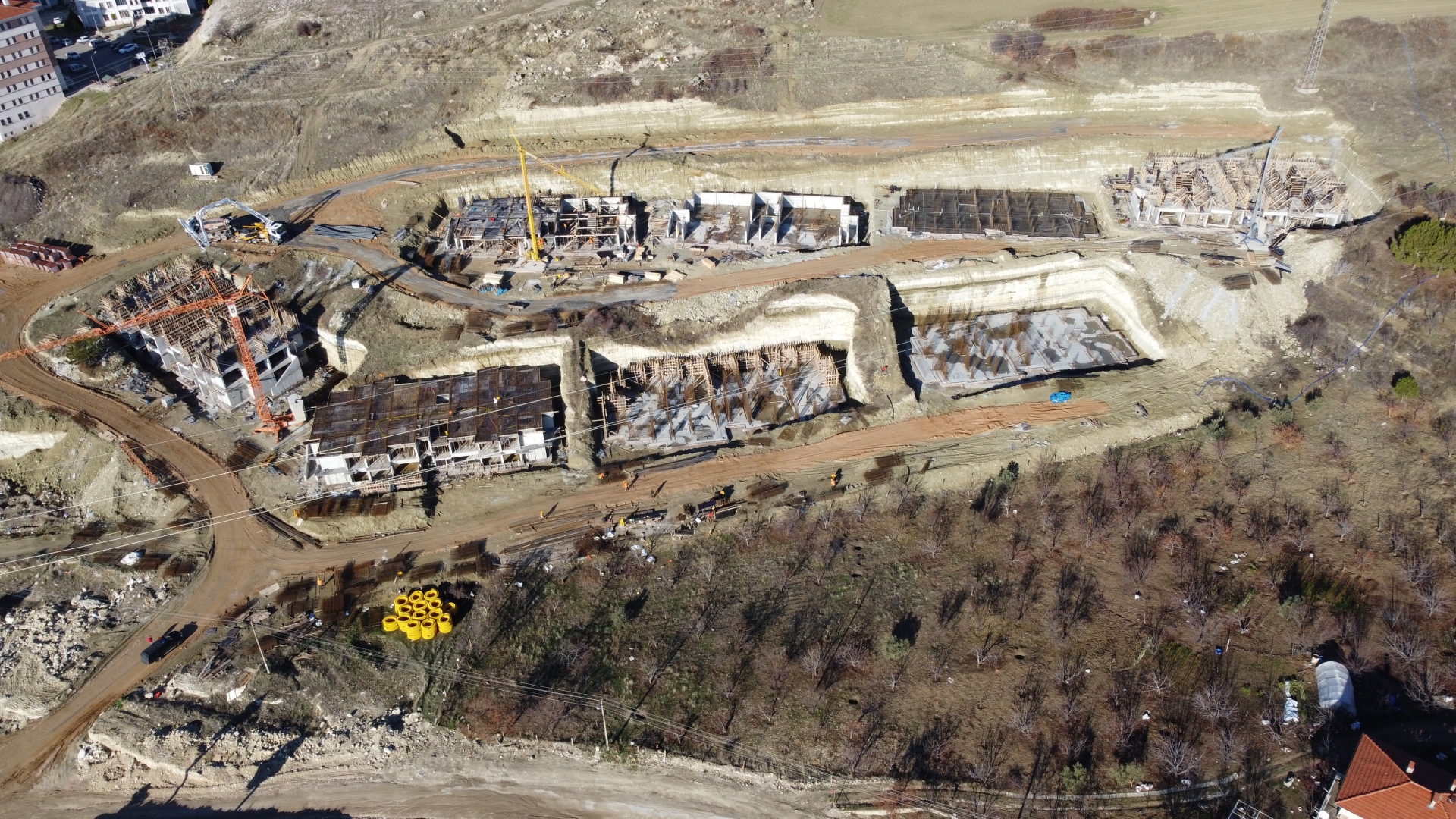 3 blokta 2. katlar ve 2 blokta 1. Katların yapımı tamamlanırken, diğer bloklarda ise 1. Kat inşaatları sürüyor.