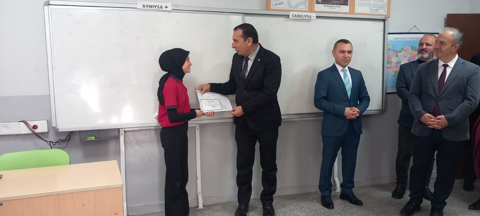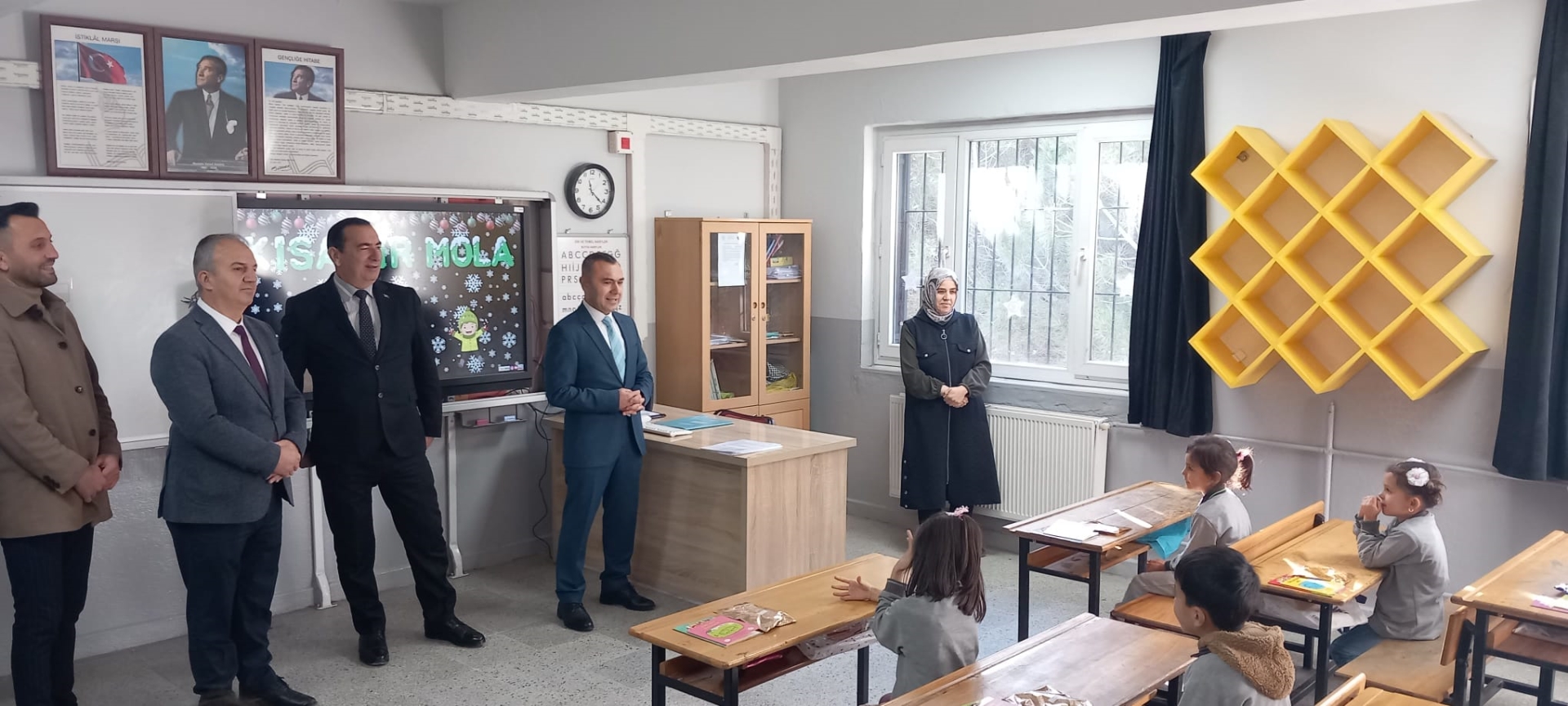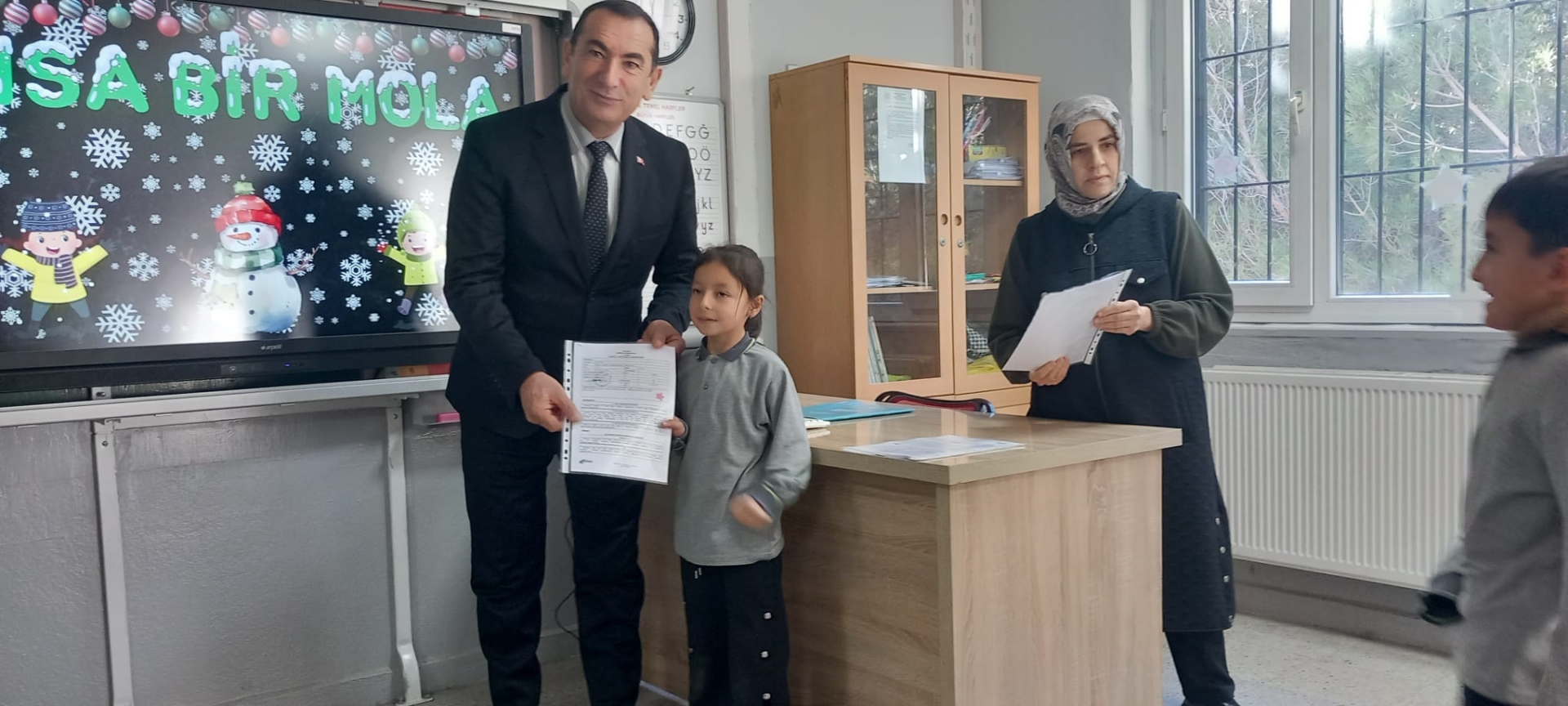 Sınıfları ziyaret eden Kaymakamımız Yavuz Arslan, Başkan Yardımcımız İsmail Hakkı Gül ve İlçe Milli Eğitim Müdürü Bilal Çetinkaya öğrencilere karnelerini takdim ettiler.