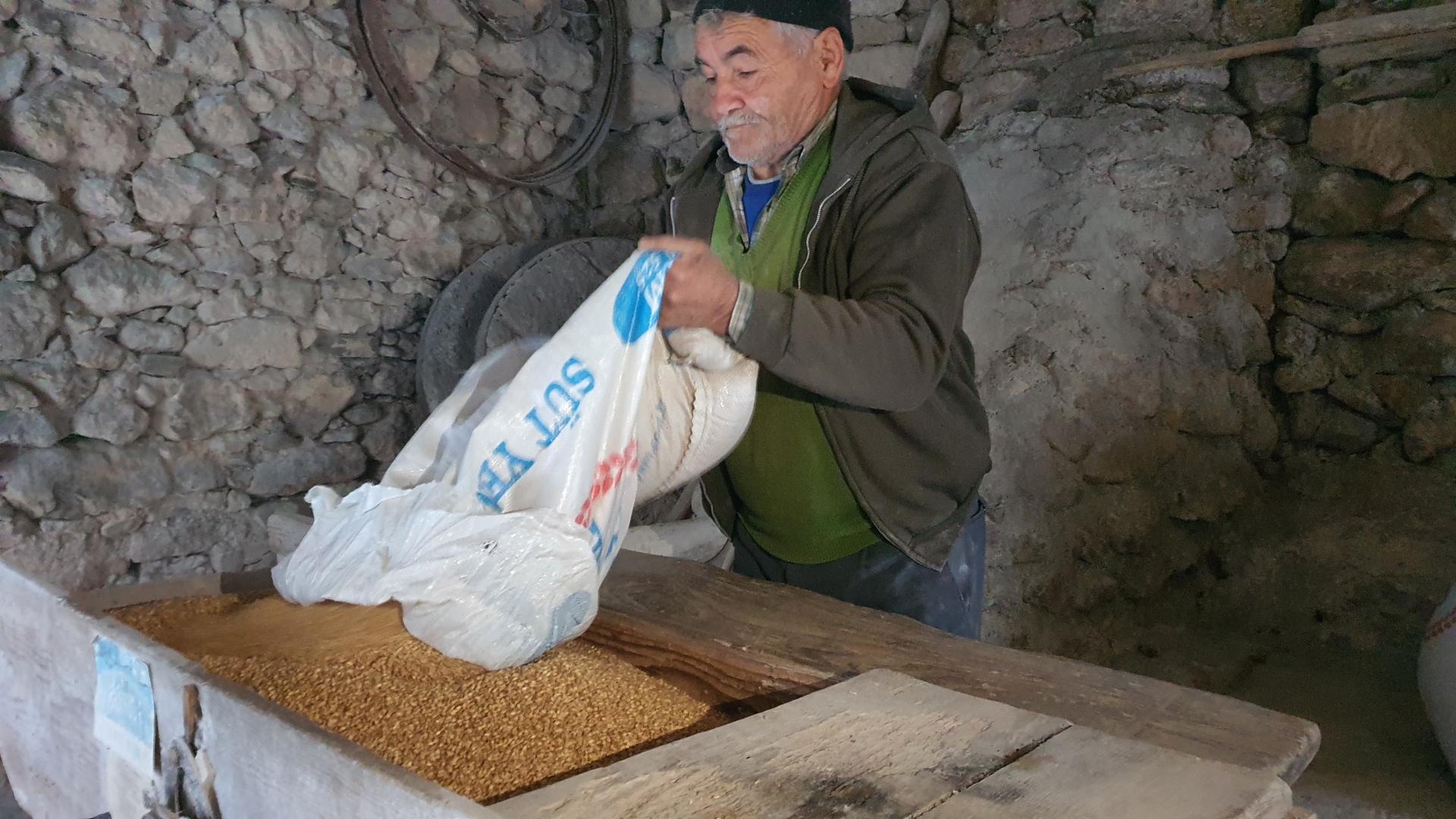 Değirmenci Mustafa Yetiş, dedesi Halil Yetiş’ten yadigâr kalan 210 yıllık değirmeni ve babası Mehmet Yetiş’ten miras kalan 2 değirmen taşı ile 50 yıldır çalıştırıyor.