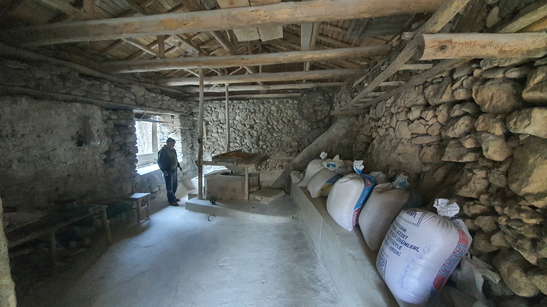 Sevinçler mahallesine 3 kilometre mesafede bulunan ve 210 yıldır ayakta duran tarihi su değirmeni kış mevsiminde buğdayları öğüterek un haline getiriyor.