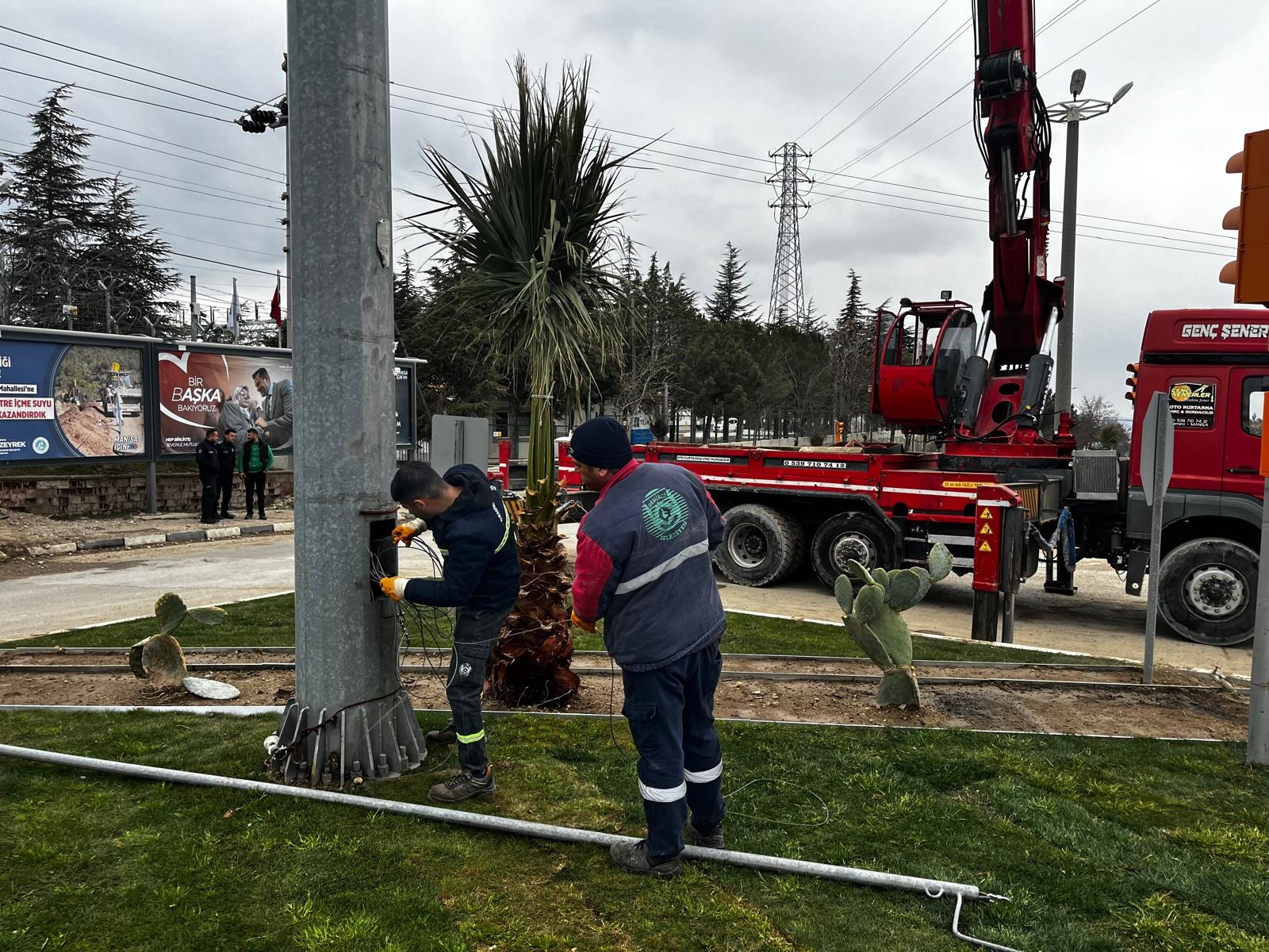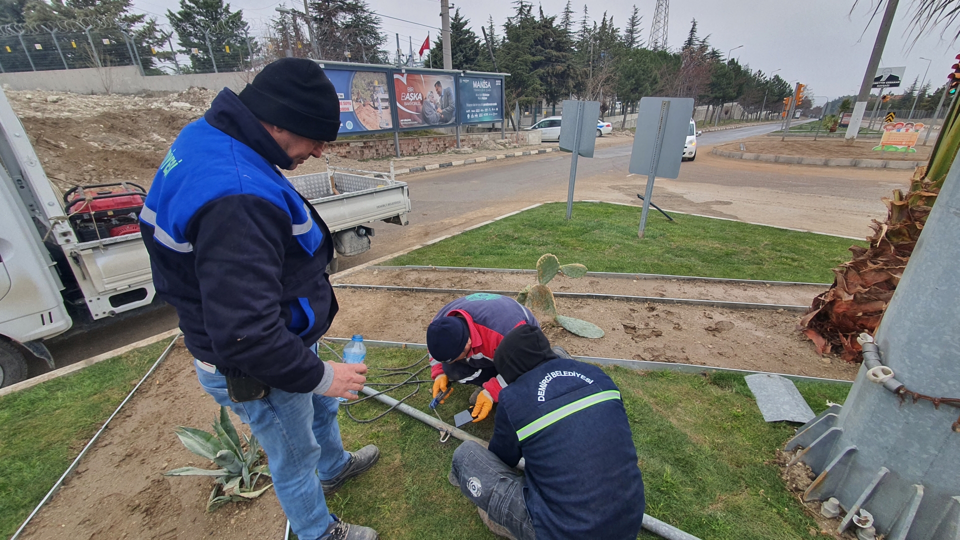 İlçemiz Simav yolu çıkışında bulunan Necmettin Erbakan Kavşağı ve Salihli yolu çıkışında bulunan Alparslan Türkeş kavşaklarında peyzaj ve çevre düzenlemeleri hızla sürüyor.