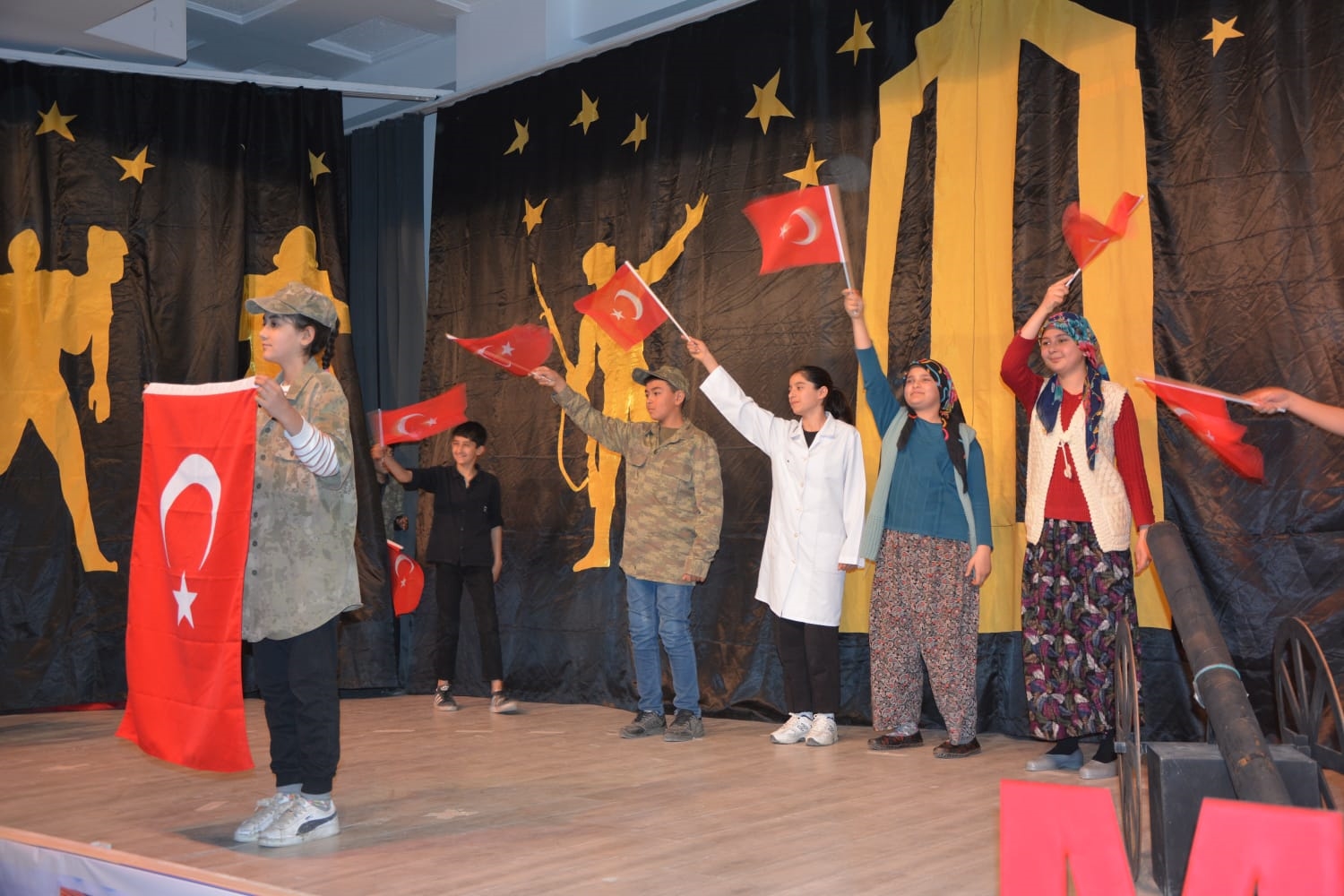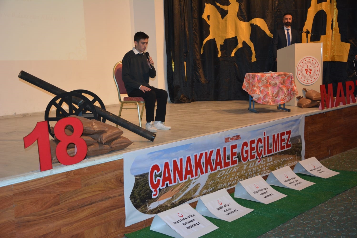 Demirci İmam Hatip Ortaokulu ve 75. Yıl Alime Paşa Ortaokulu tarafından düzenlenen programda 18 Mart Çanakkale Zaferi ve Şehitleri anma gününü belirten şiirler, video sunumları ve gösteriler yapıldı.