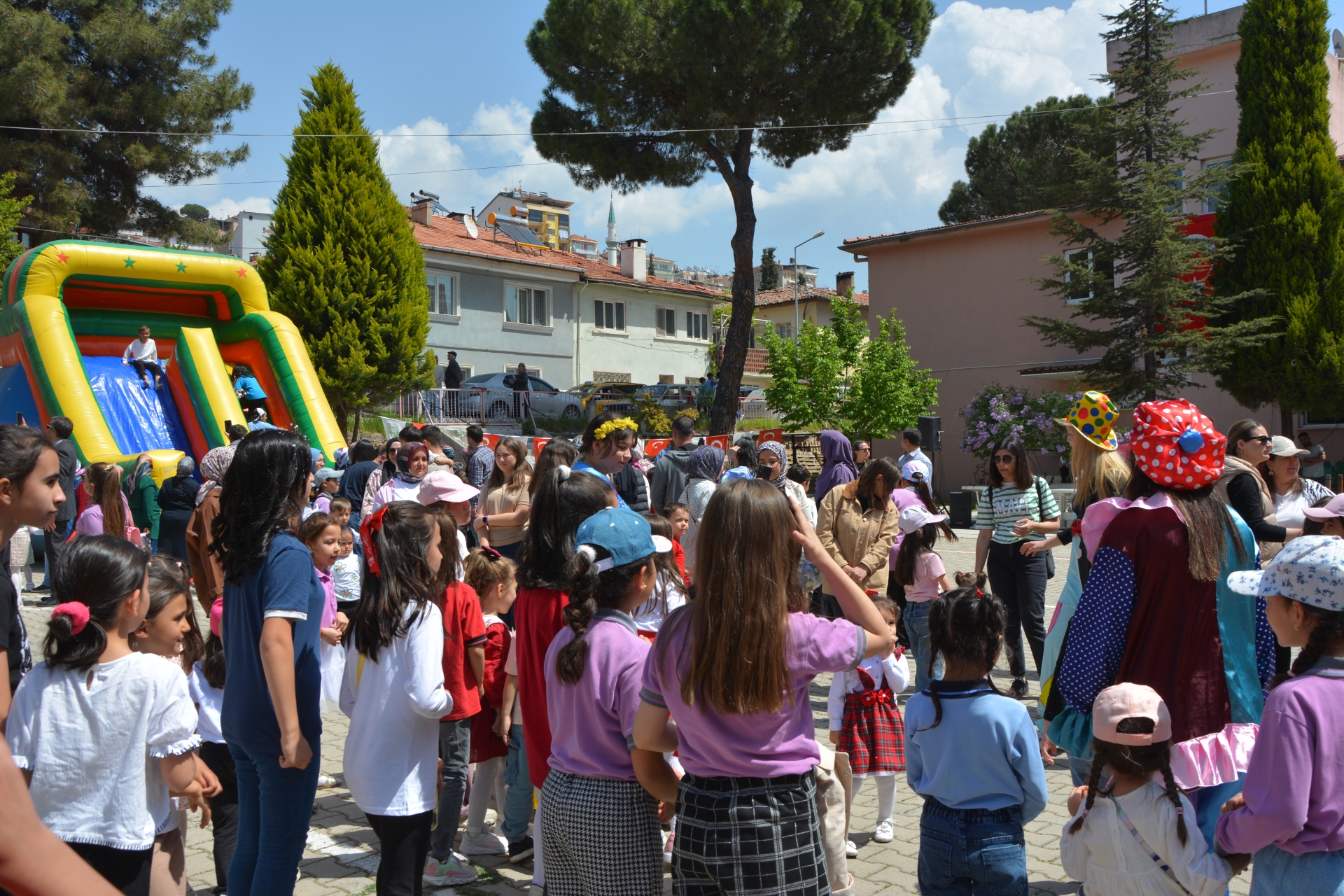 Çocuklar şişme kaydırak, akıl zeka oyunları, müzikli oyuncaklarla doyasıya eğlenen çocuklar, palyaço gösterileri ile de unutulmaz bir bayram yaşadılar.