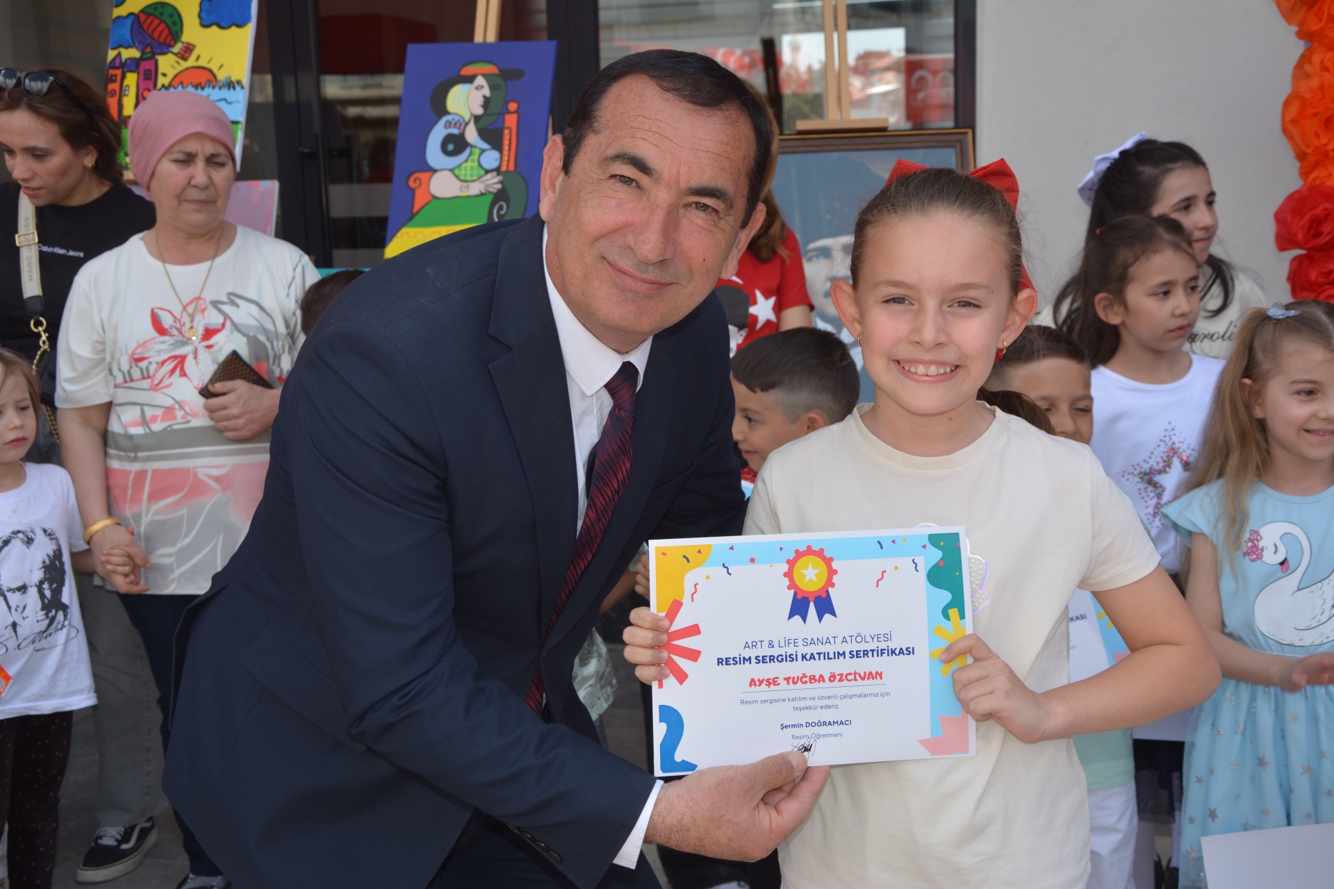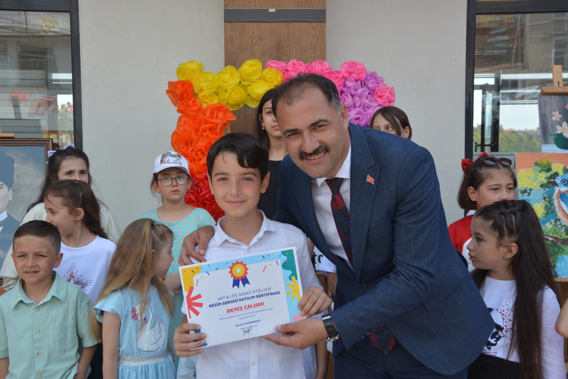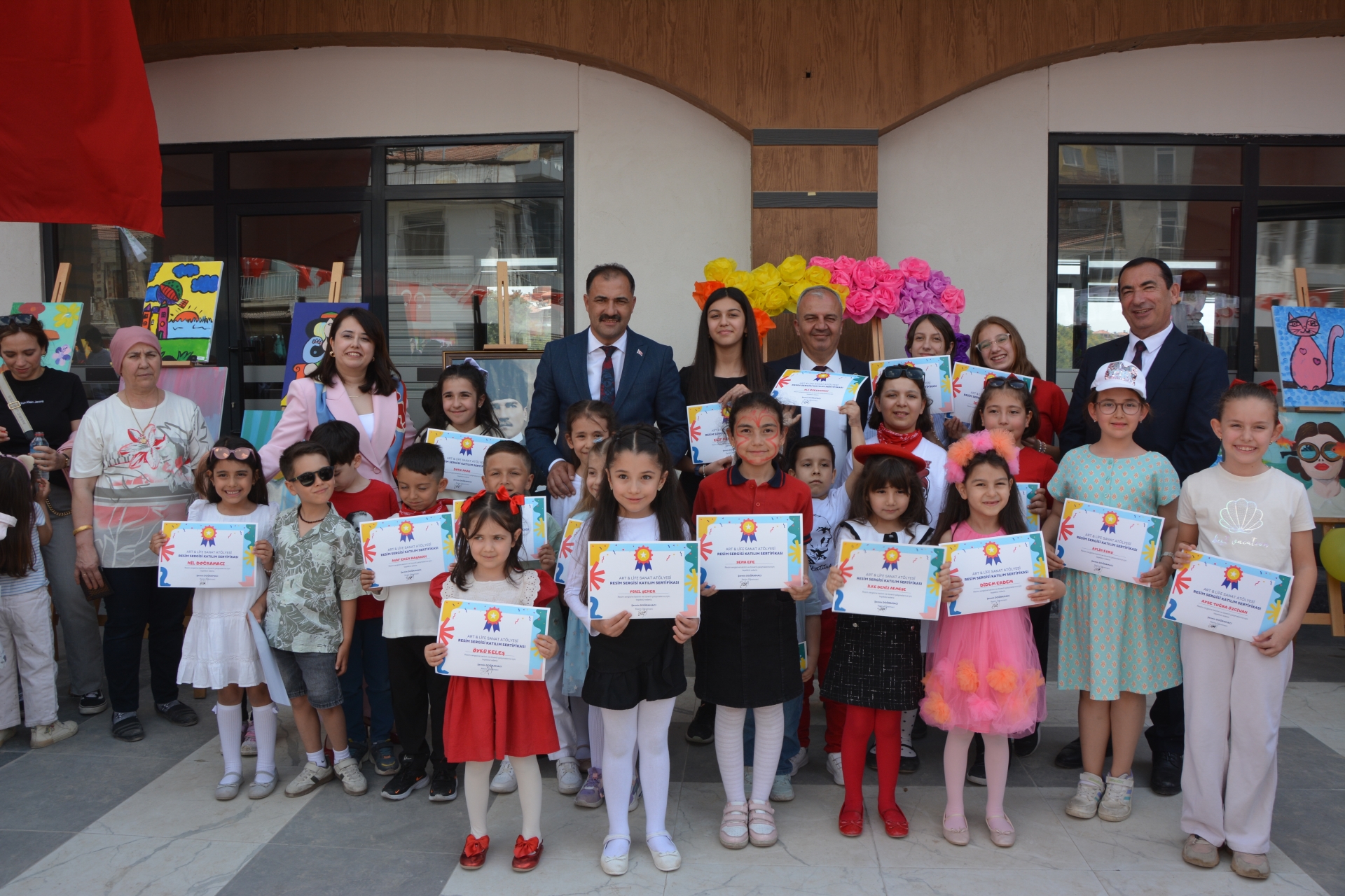 Başkanımız Erkan Kara, İlçe Milli Eğitim Müdürü Bilal Çetinkaya ve Başkan Yardımcımız İsmail Hakkı Gül, resimleri hazırlayan öğrencilere başarı belgelerini takdim ettiler.
