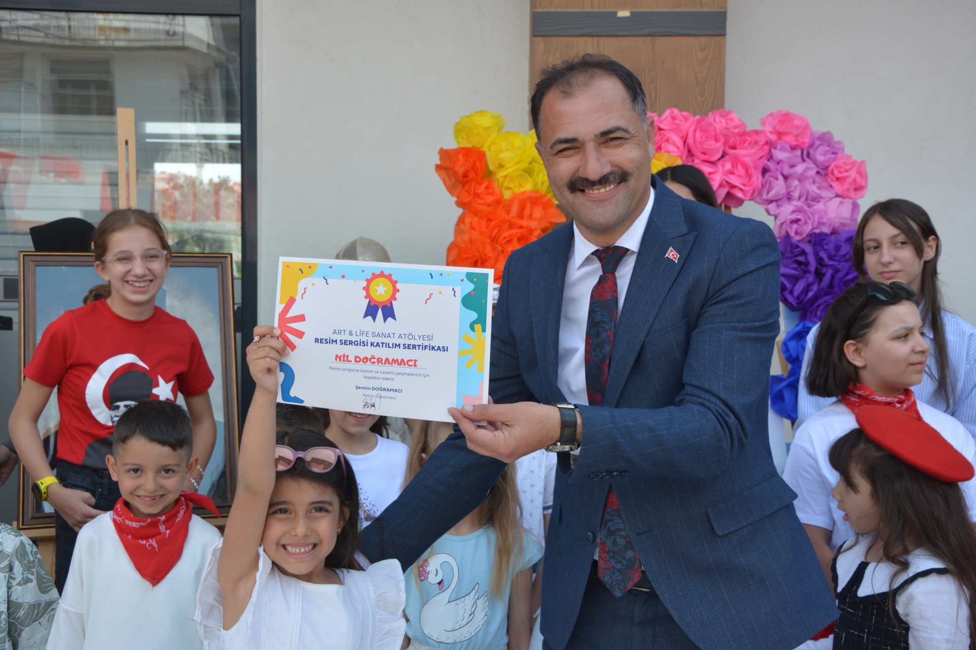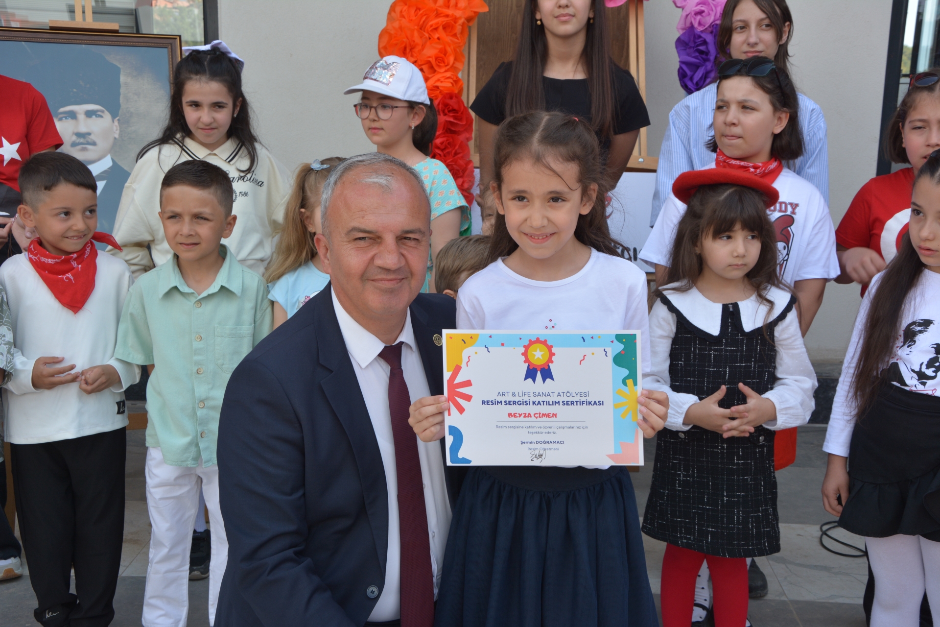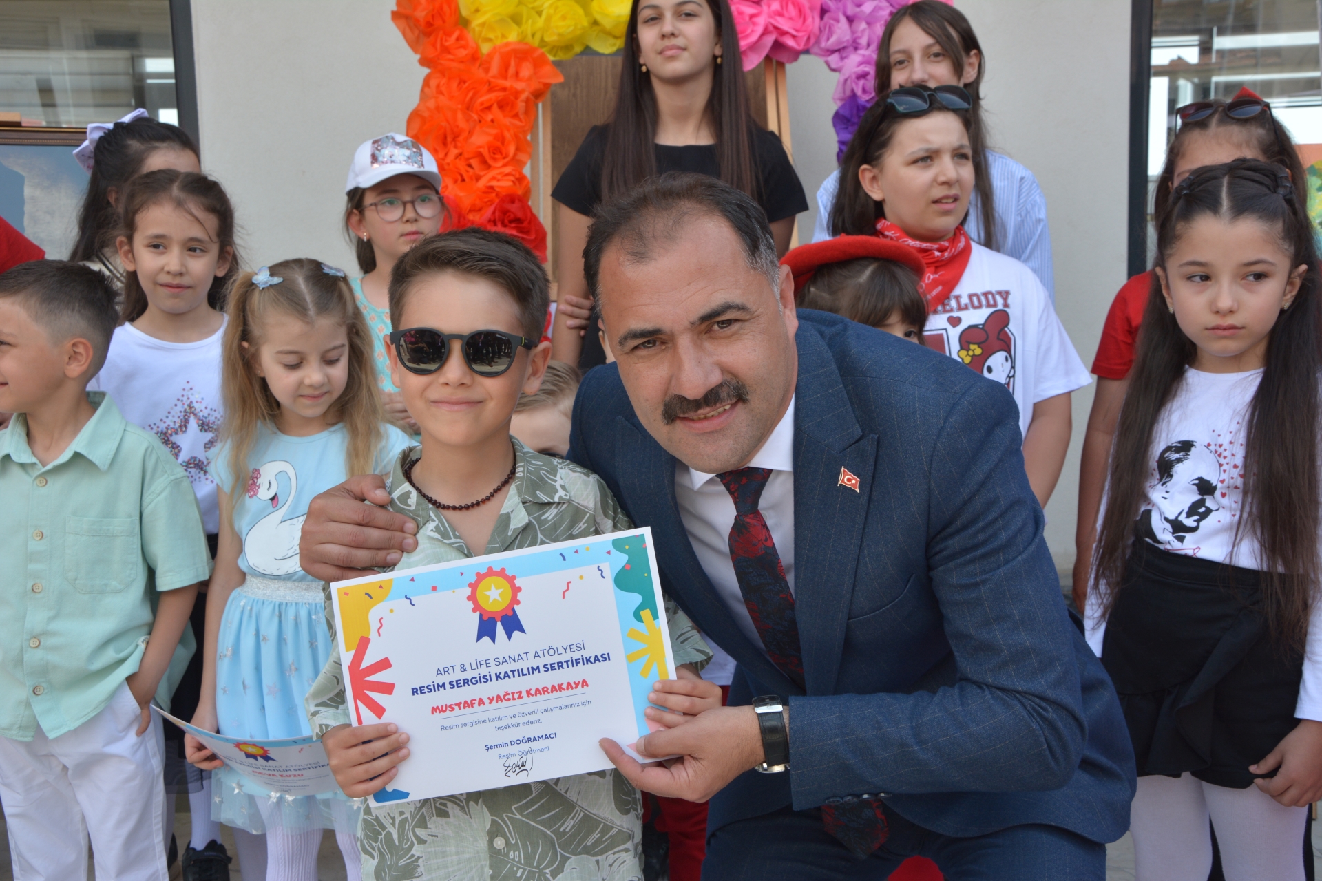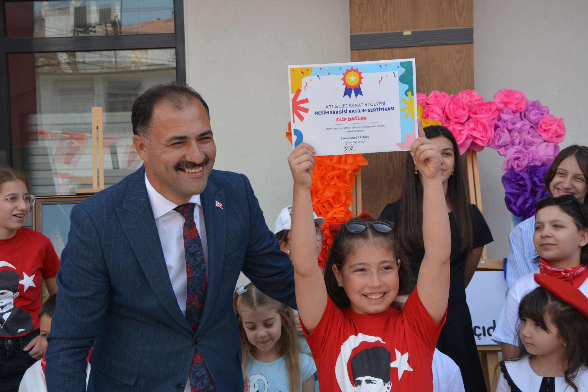 Başkanımız Erkan Kara, İlçe Milli Eğitim Müdürü Bilal Çetinkaya ve Başkan Yardımcımız İsmail Hakkı Gül, resimleri hazırlayan öğrencilere başarı belgelerini takdim ettiler.