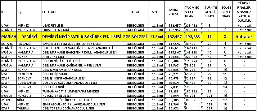 Türkiye Zeka Oyunları şampiyonasına katılan Necip Fazıl Kısakürek Fen Lisesi, bölge üçüncülüğünü el ederek Türkiye Finallerinde Manisa’yı ve Demirci’mizi temsil edecekler.
