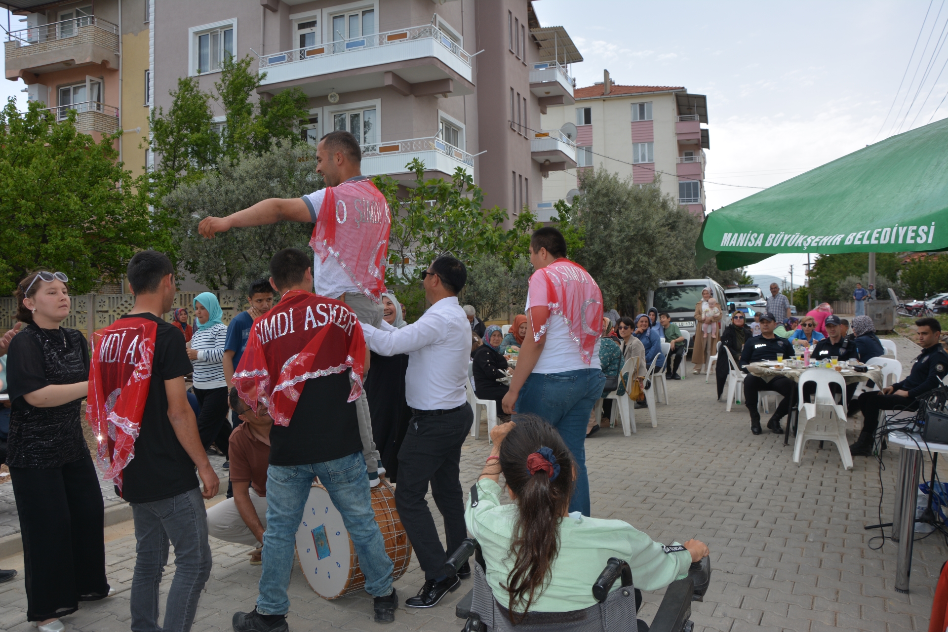 Rehabilitasyon merkezi bahçesinde düzenlenen askere uğurlama eğlencesine Demirci Kaymakamımız Yavuz Arslan, Belediye Başkanımız Erkan Kara, AK Parti İlçe Başkanı Nurullah Akgün, Manisa Büyükşehir Belediyesi Demirci İlçe Koordinatörü- CHP İlçe Başkanı Melih Kuru, MHP İlçe Başkanı Ümit Kanyılmaz, Belediye Başkan Yardımcımız İsmail Hakkı Gül, İlçe Emniyet Müdürü Barış Kayar ve İlçe Jandarma Karakol Komutanı Kıdemli Başçavuş Nedim Perk, aileler ve vatandaşlar katıldı.