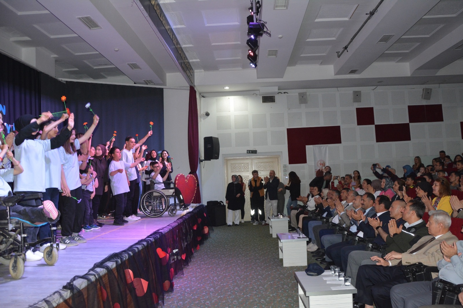 “Sevgi Varsa Engel Yoktur” mottosu ile hazırlanan programda saygı duruşu ve İstiklal Marşı’nın ardından öğrenciler tarafından gösteriler sahnelendi.