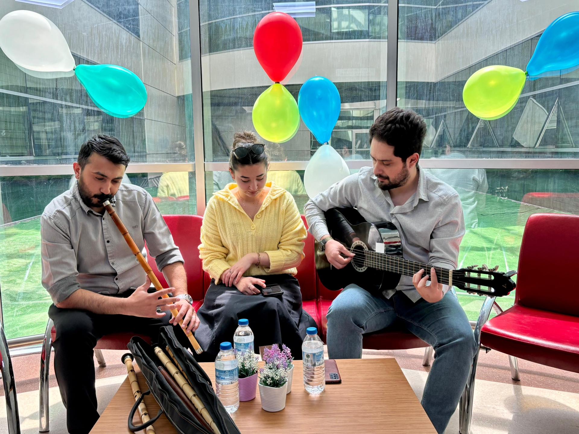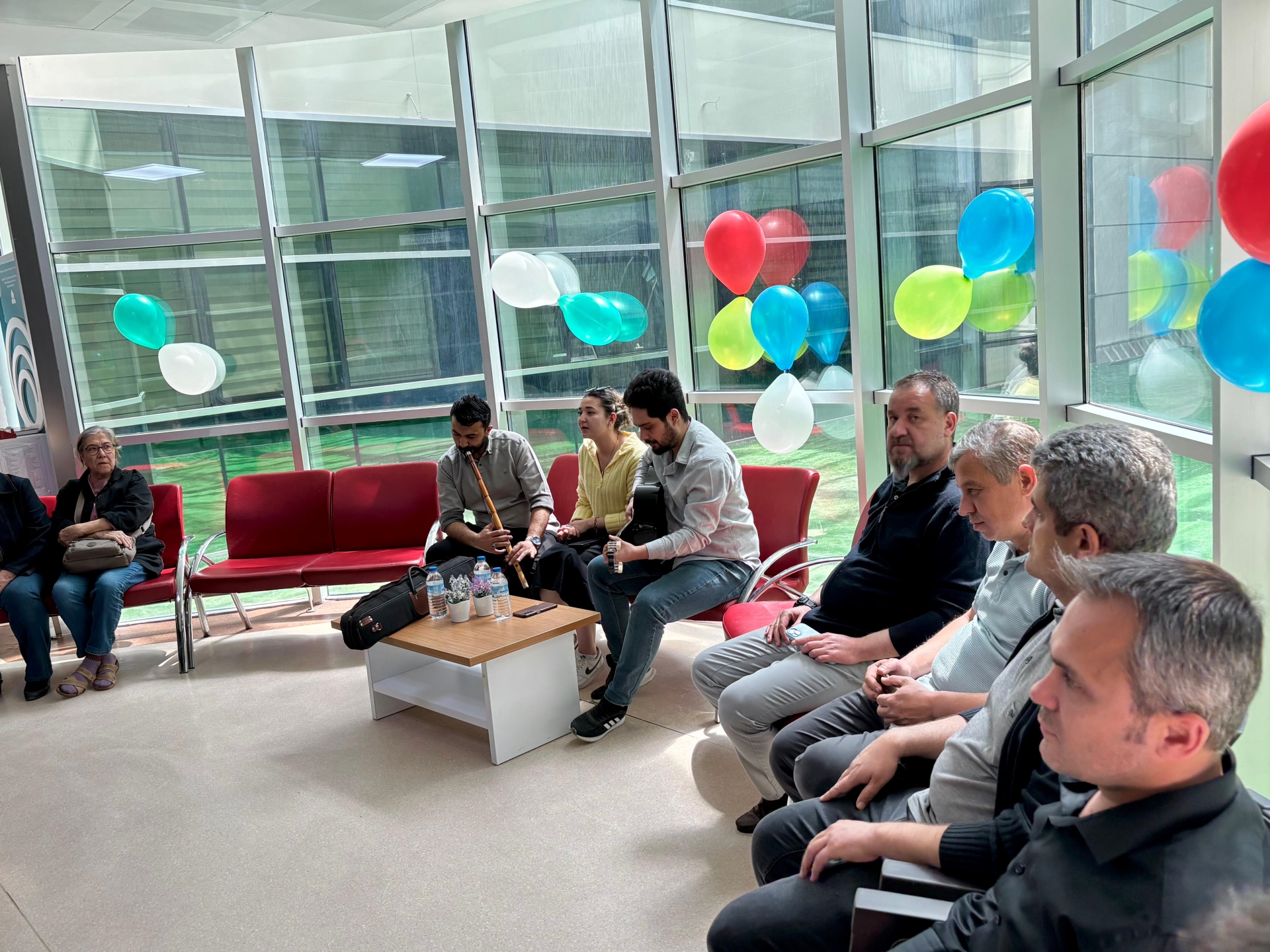Hasta ve hasta yakınları seslendirilen türkülere ve şarkılara da zaman zaman eşlik ettiler.