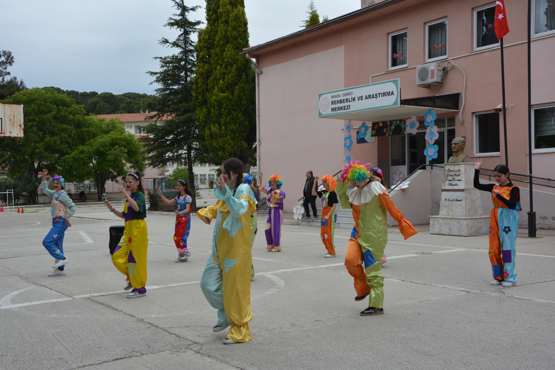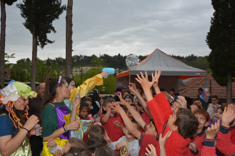 Okul bahçesine kurulan istasyonlarda kitap ayracı tasarımı, ritim çalışmaları, parmak boyama, şekilli balonlar, çiçek yapma, yüz boyama, şeker hamurundan kurabiye tasarlama etkinlikleri yapıldı.
