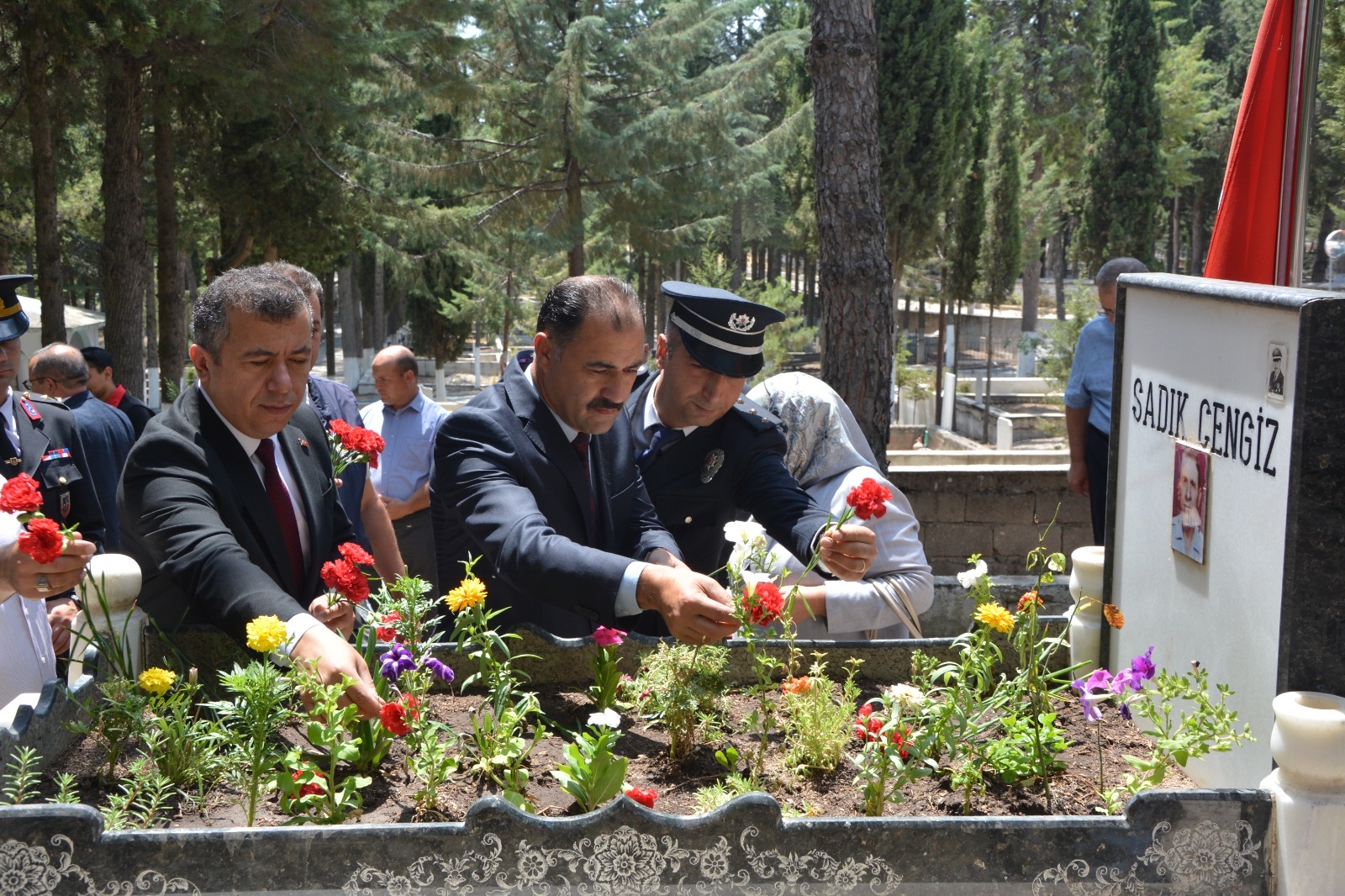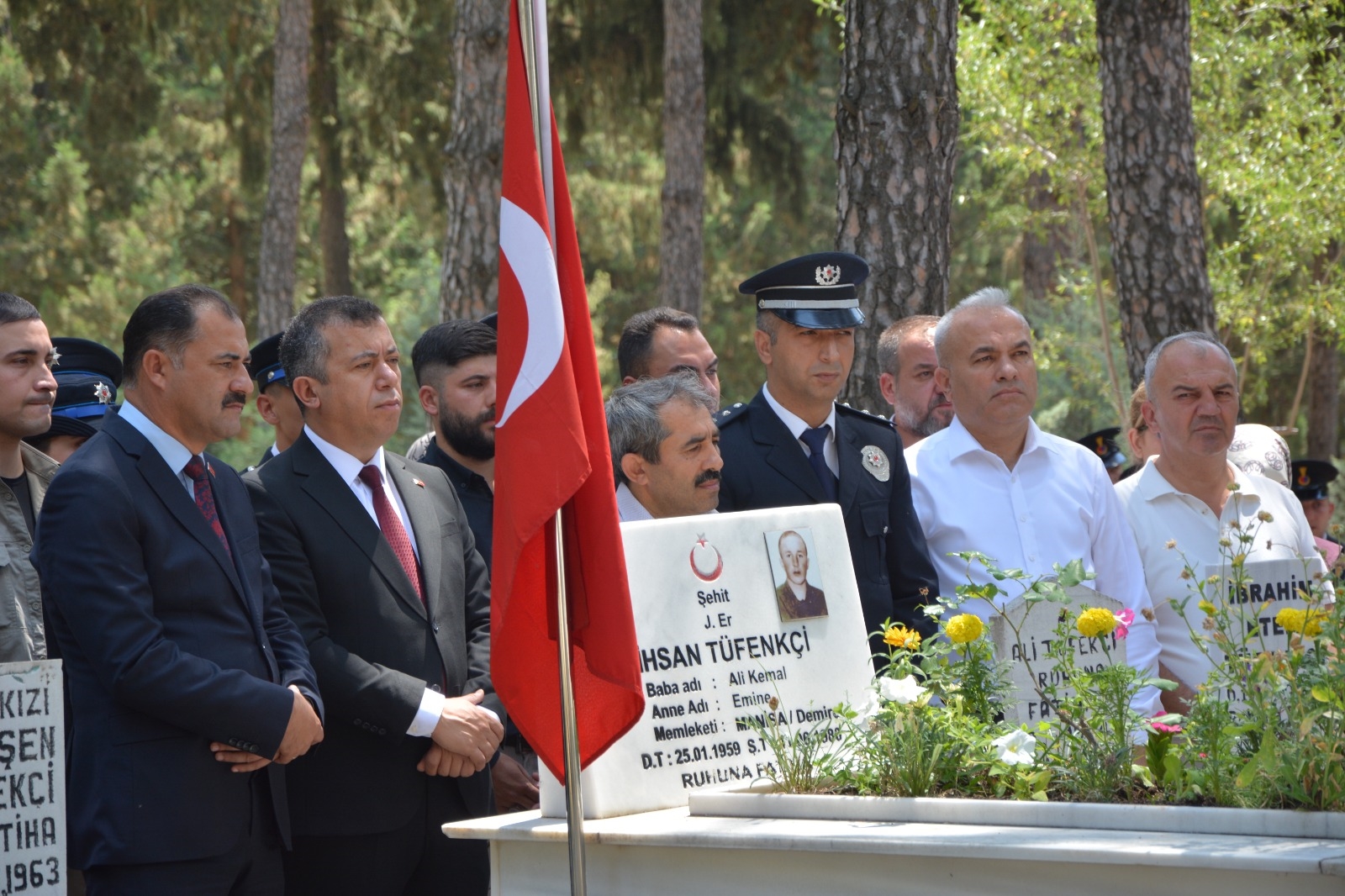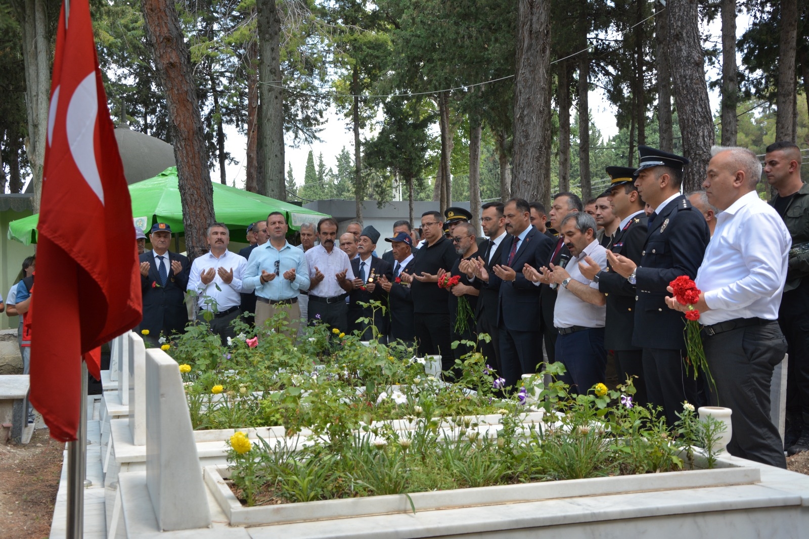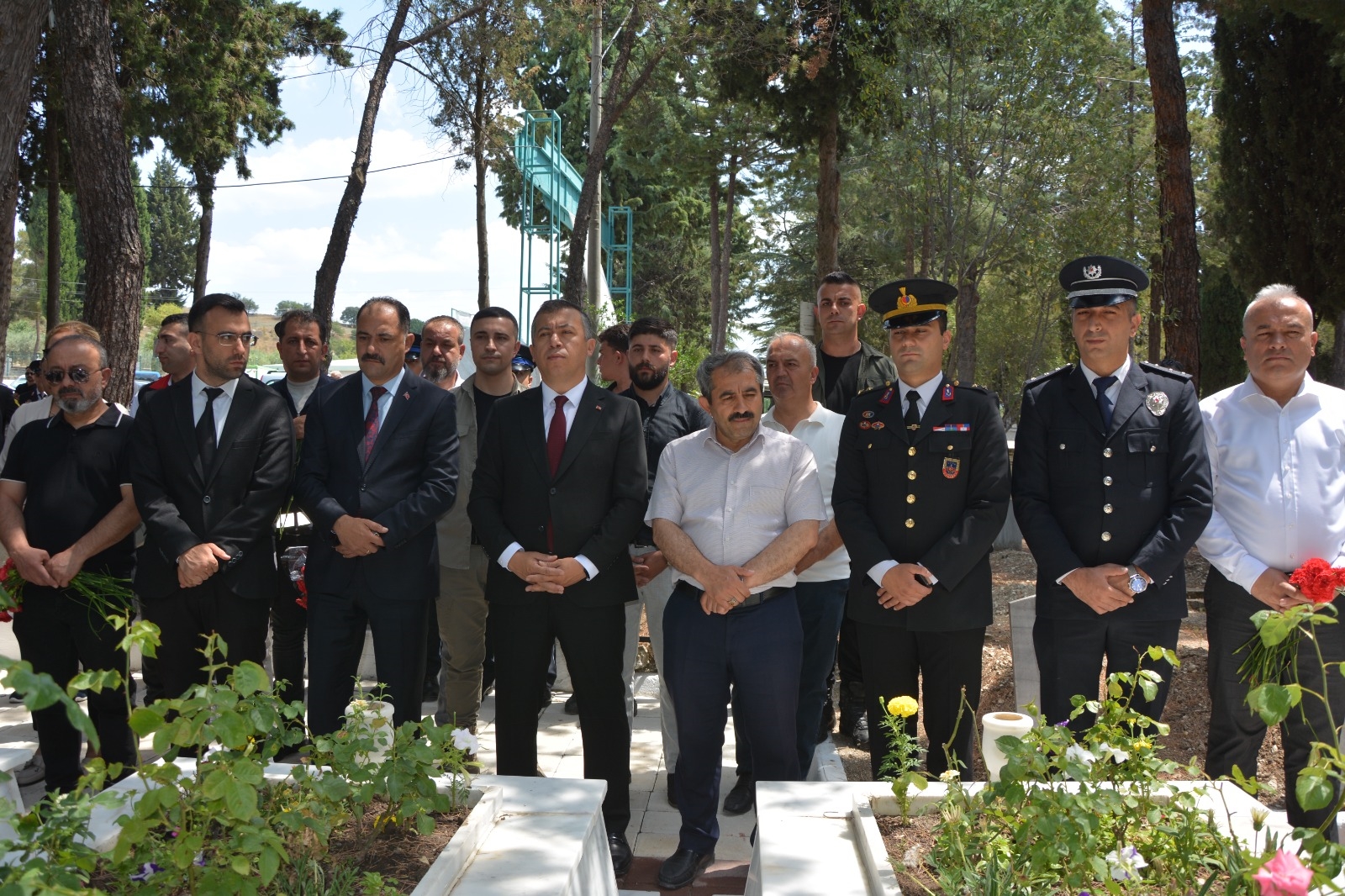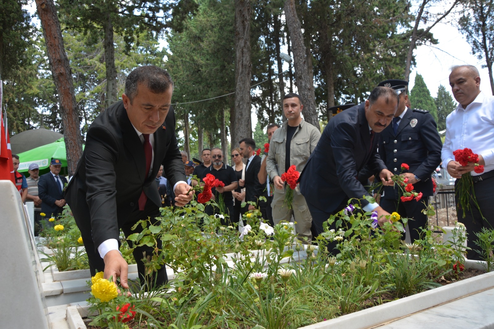 Demirci'de programlar çerçevesinde ilk olarak Kaymakamımız Fatih Bayram, Belediye Başkanımız Erkan Kara, İlçe Protokolü, Şehit Yakınları ve Gaziler Şehit kabirlerini ziyaret ettiler.
