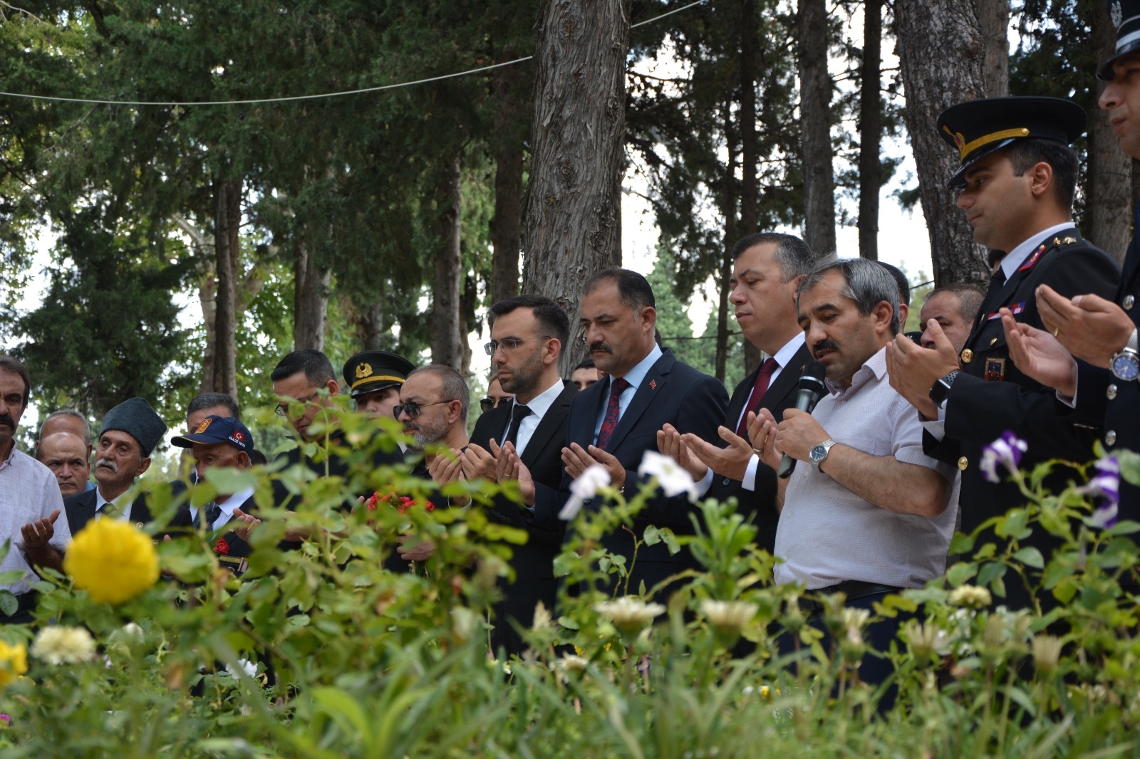 Şehit kabirleri ziyaretinin ardından İlçe Alaca Caminde mevlid-i şerif ve okunan hatmi şeriflerin duaları yapıldı.