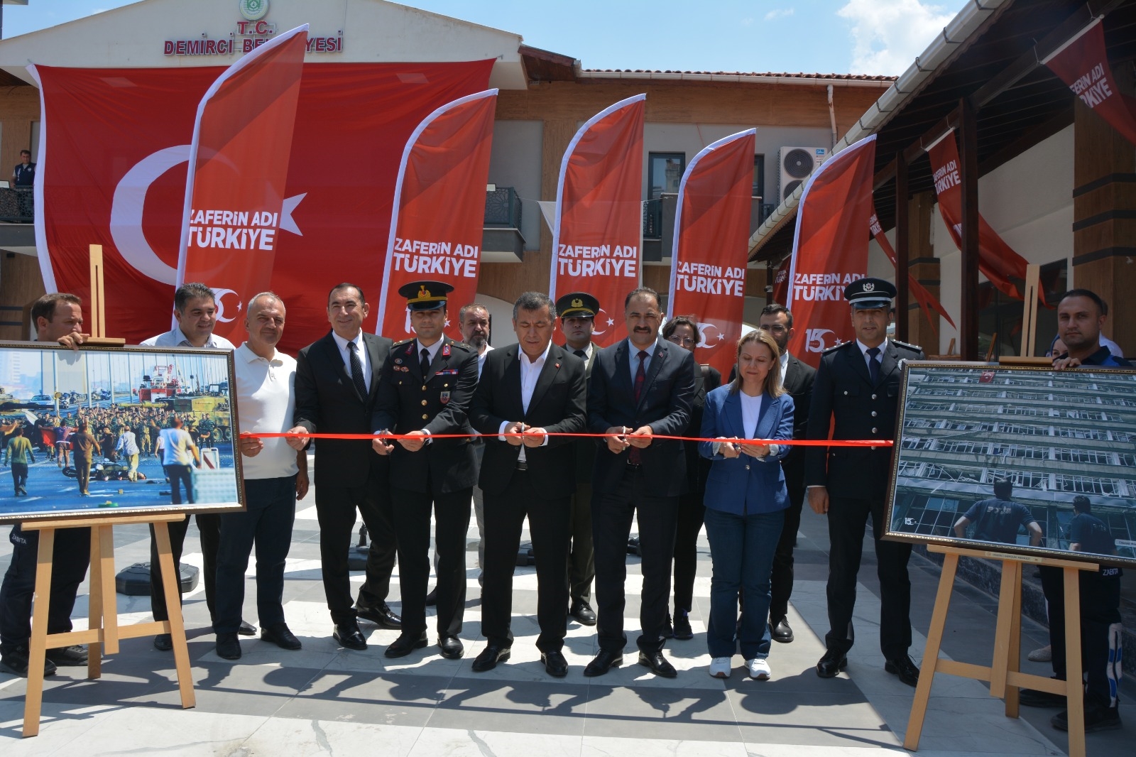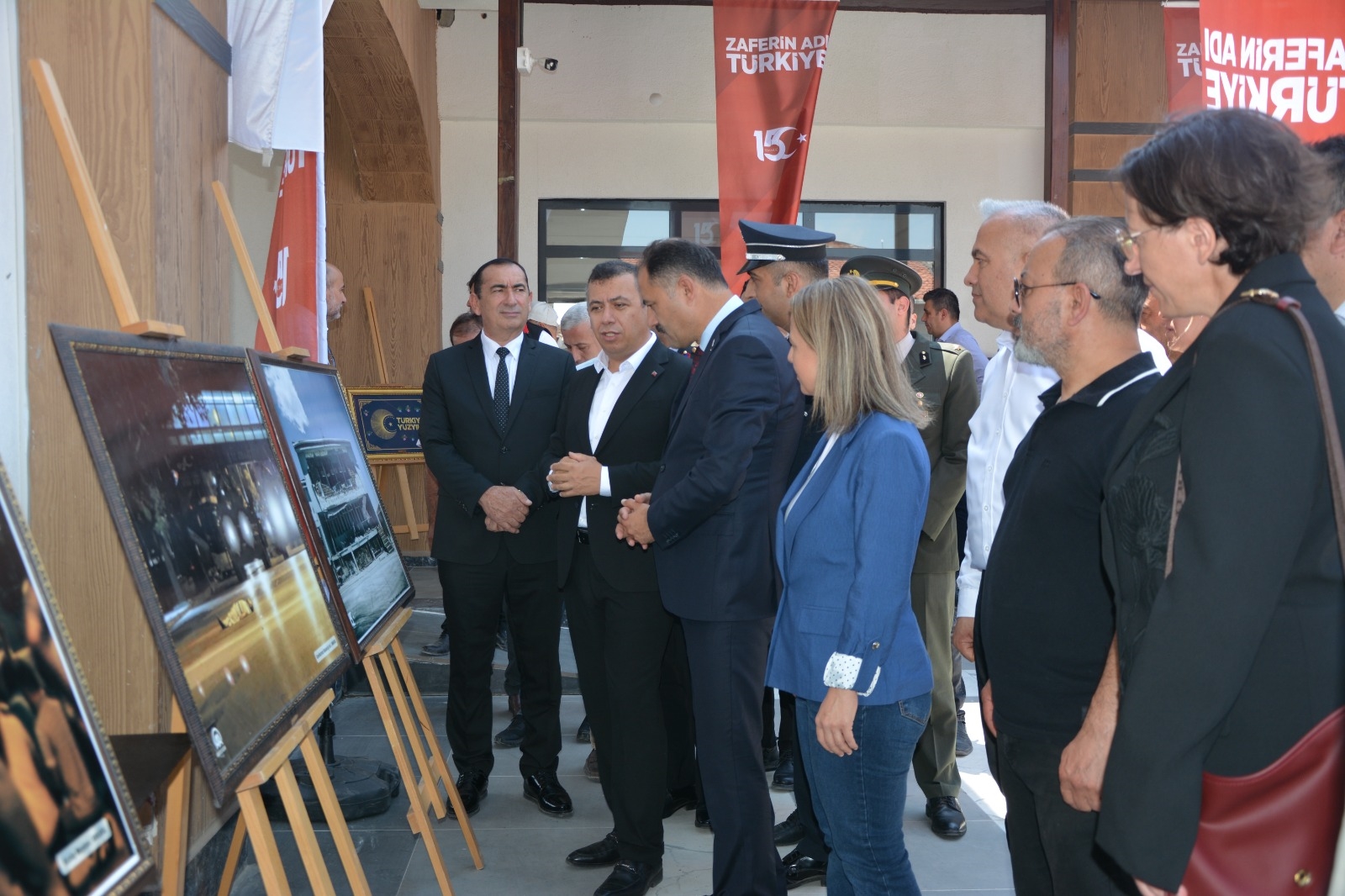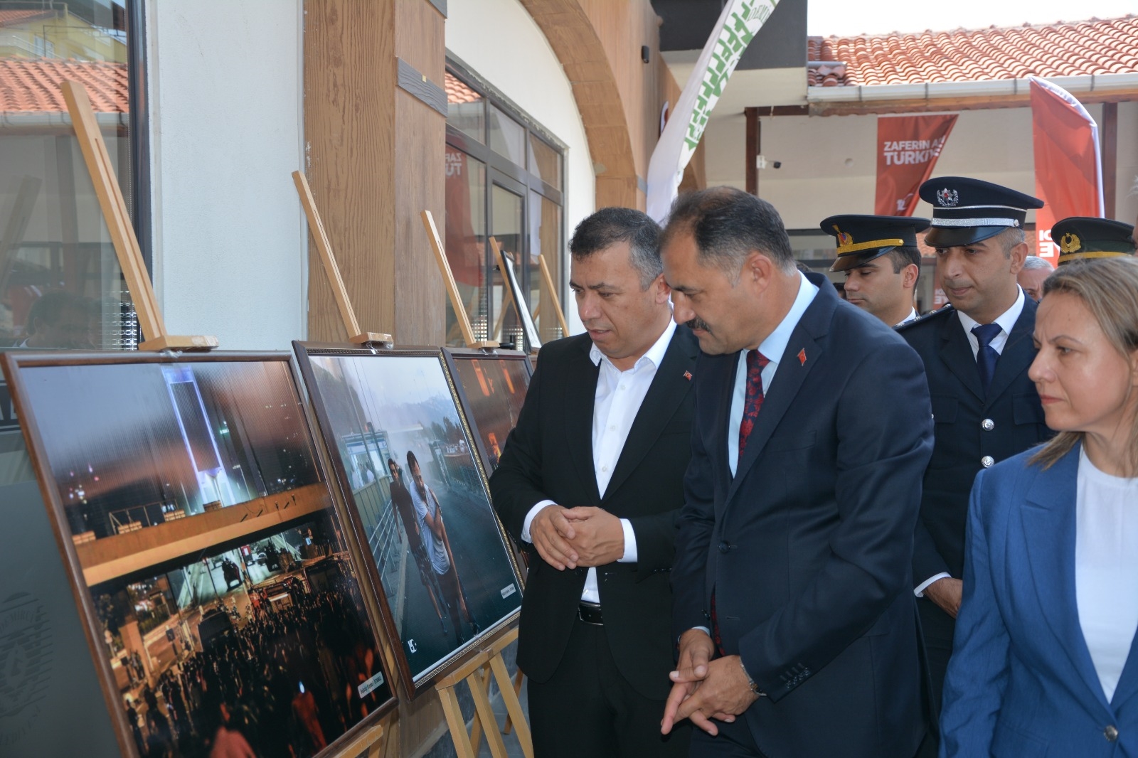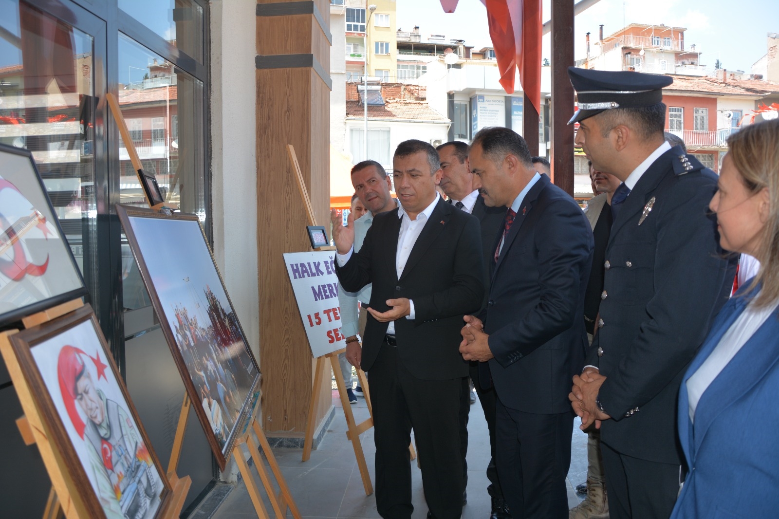 Namazın ardından belediye yeni hizmet binası bahçesinde 15 Temmuz Demokrasi ve Milli Birlik Günü Fotoğraf Sergisi ve Halk Eğitimi Merkezi tarafından hazırlanan resim sergisinin açılışı yapıldı.